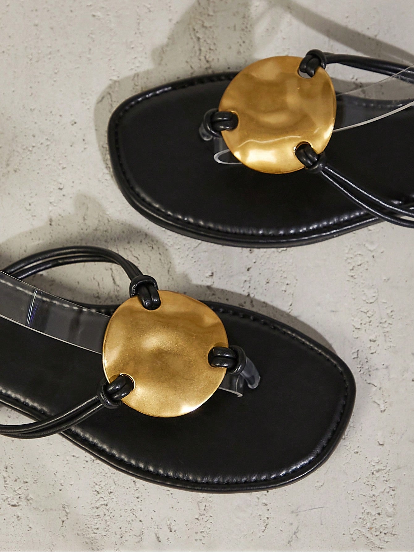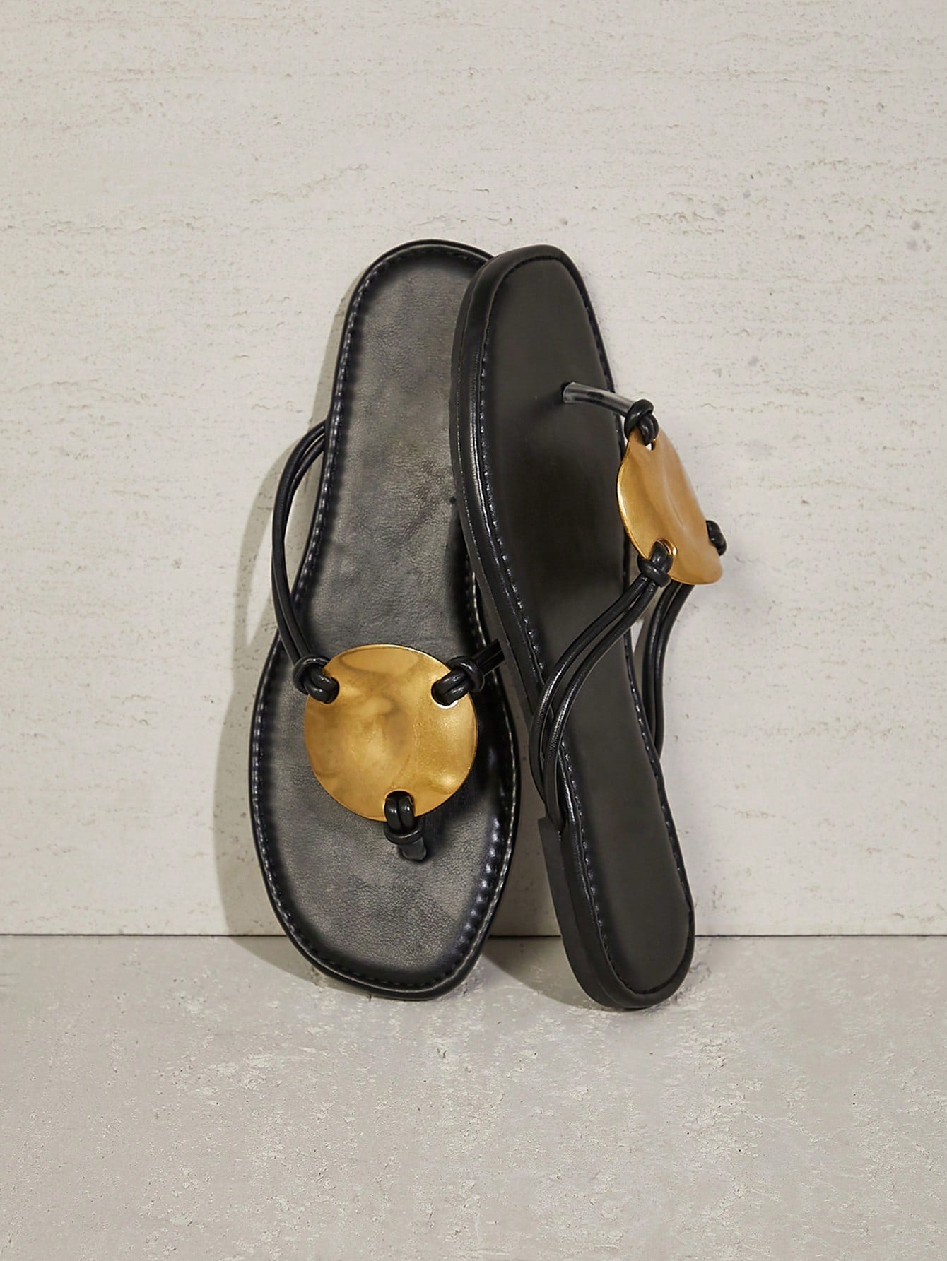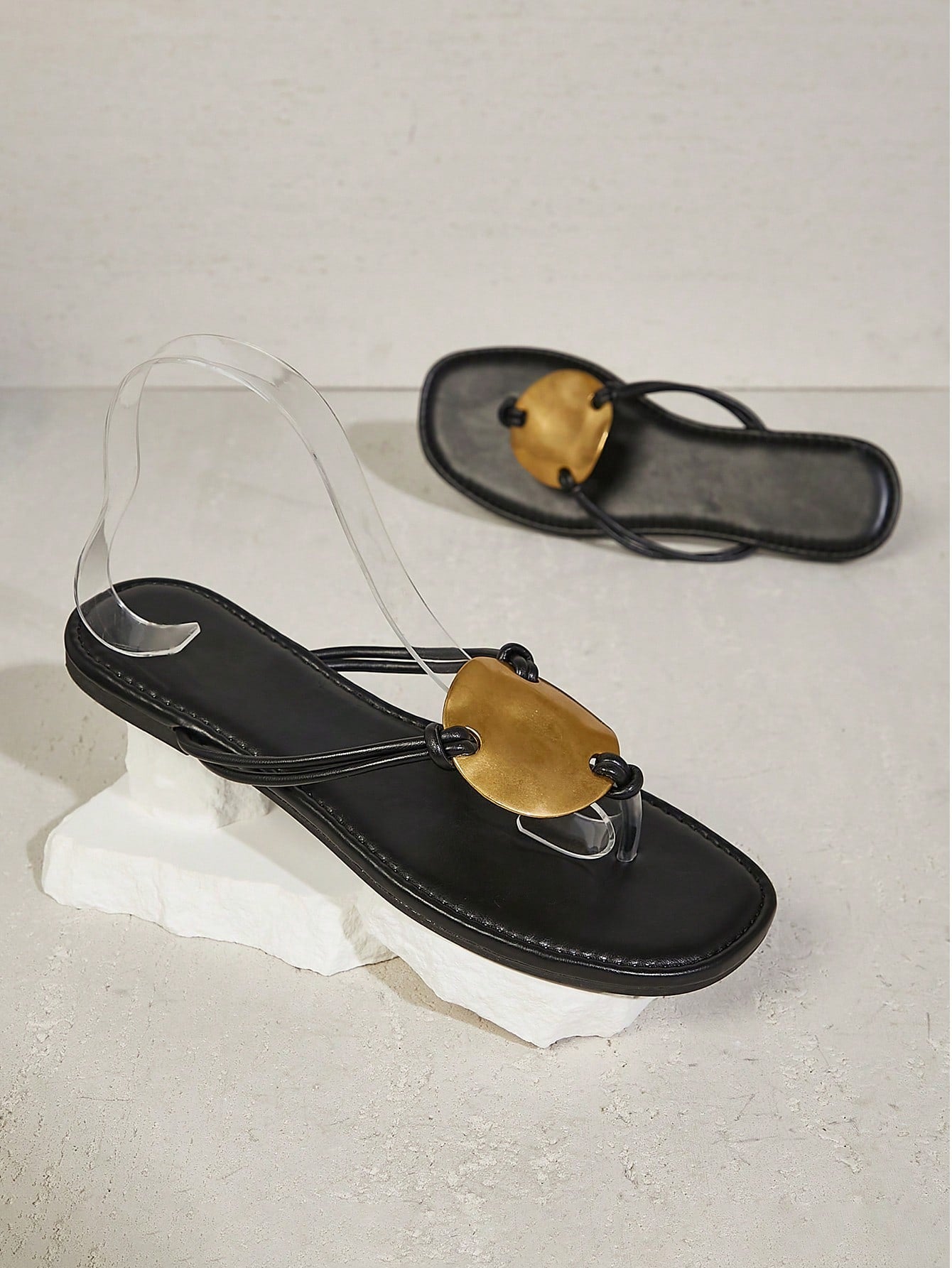 women SHUZIA Women's Casual Slip-On Comfort Metal Embellish Thong Flat Sandals Vacation Shoes Casual Shoes Beach Shoes