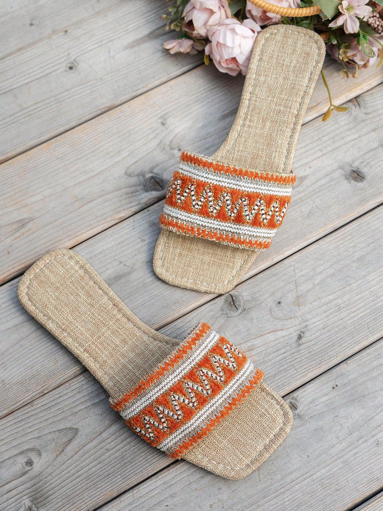 نعال مسطحة منسوجة مطرزة للنساء من WRCVS