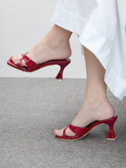 صندل نسائي جديد بكعب عالٍ ومقدمة مربعة وكعب رفيع من CUCCOO BIZCHIC