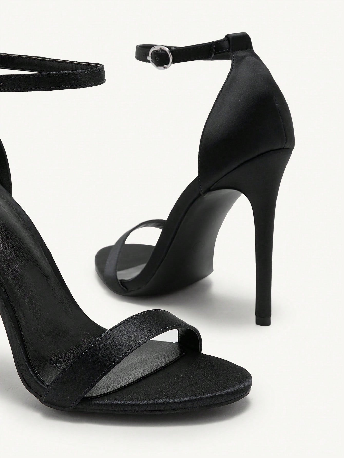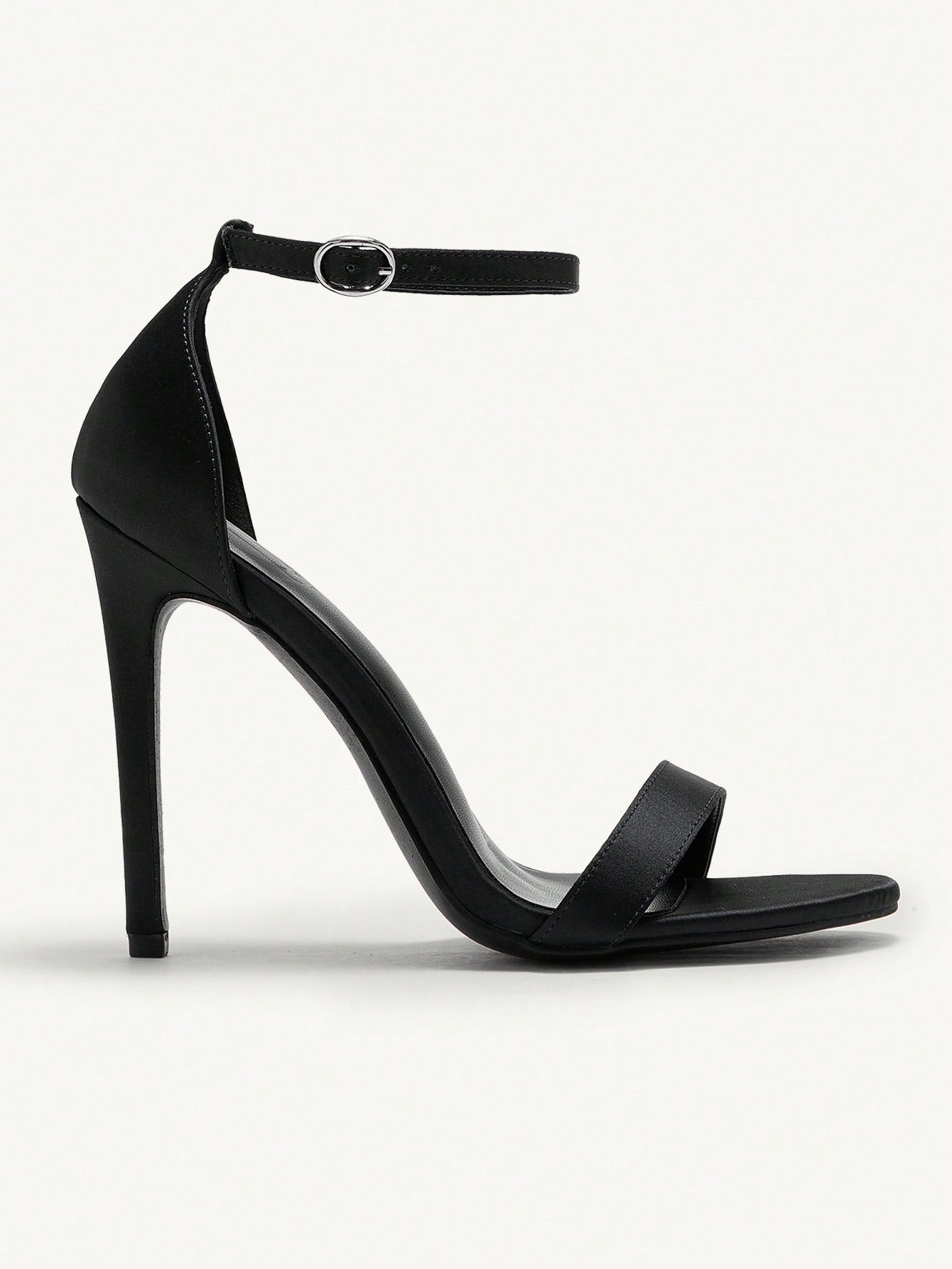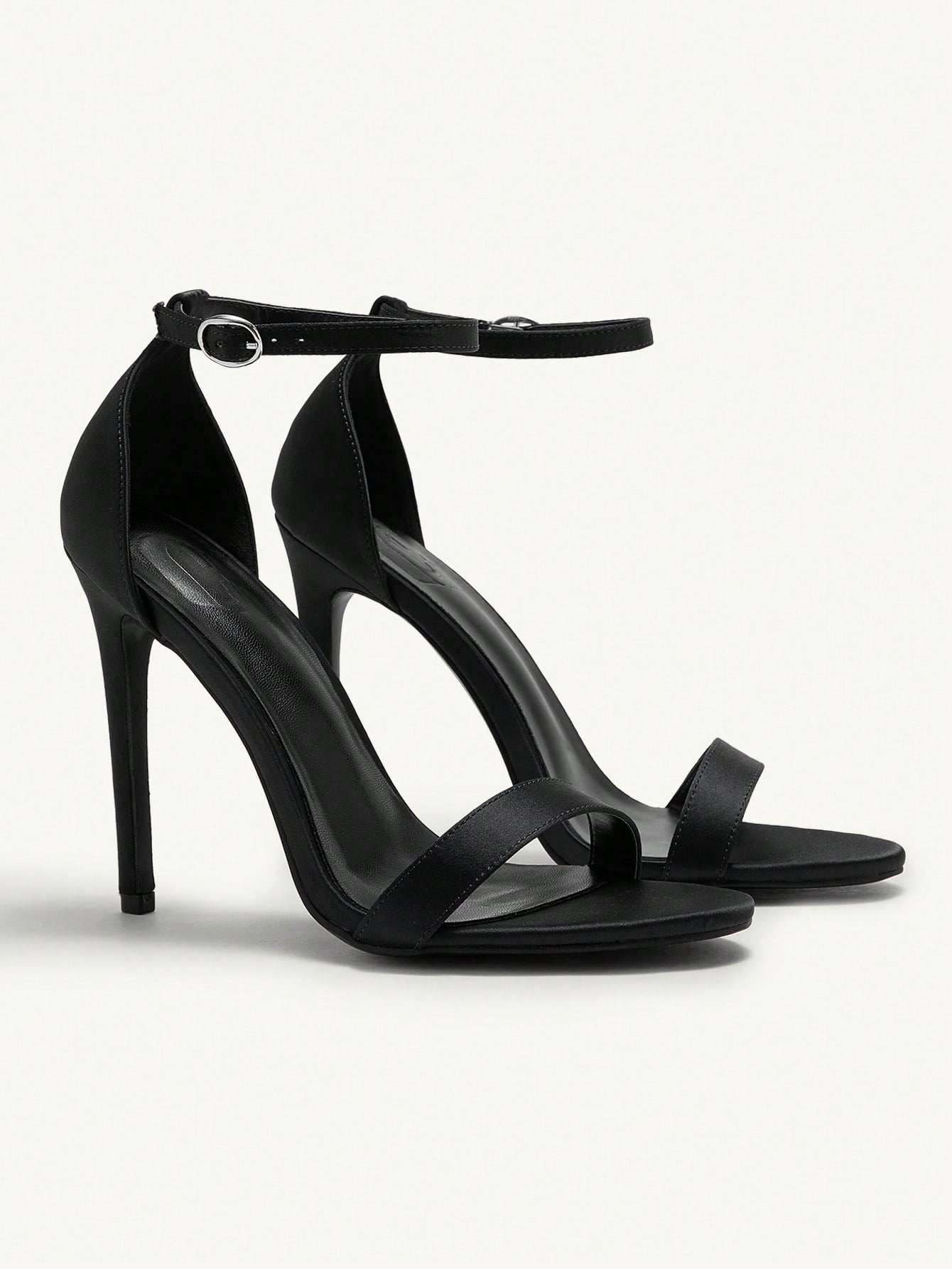 صندل CUCCOO SZL الأساسي للمناسبات/الحفلات باللون الأسود من الساتان بحزام للكاحل ومقدمة مستديرة وكعب رفيع رفيع