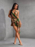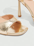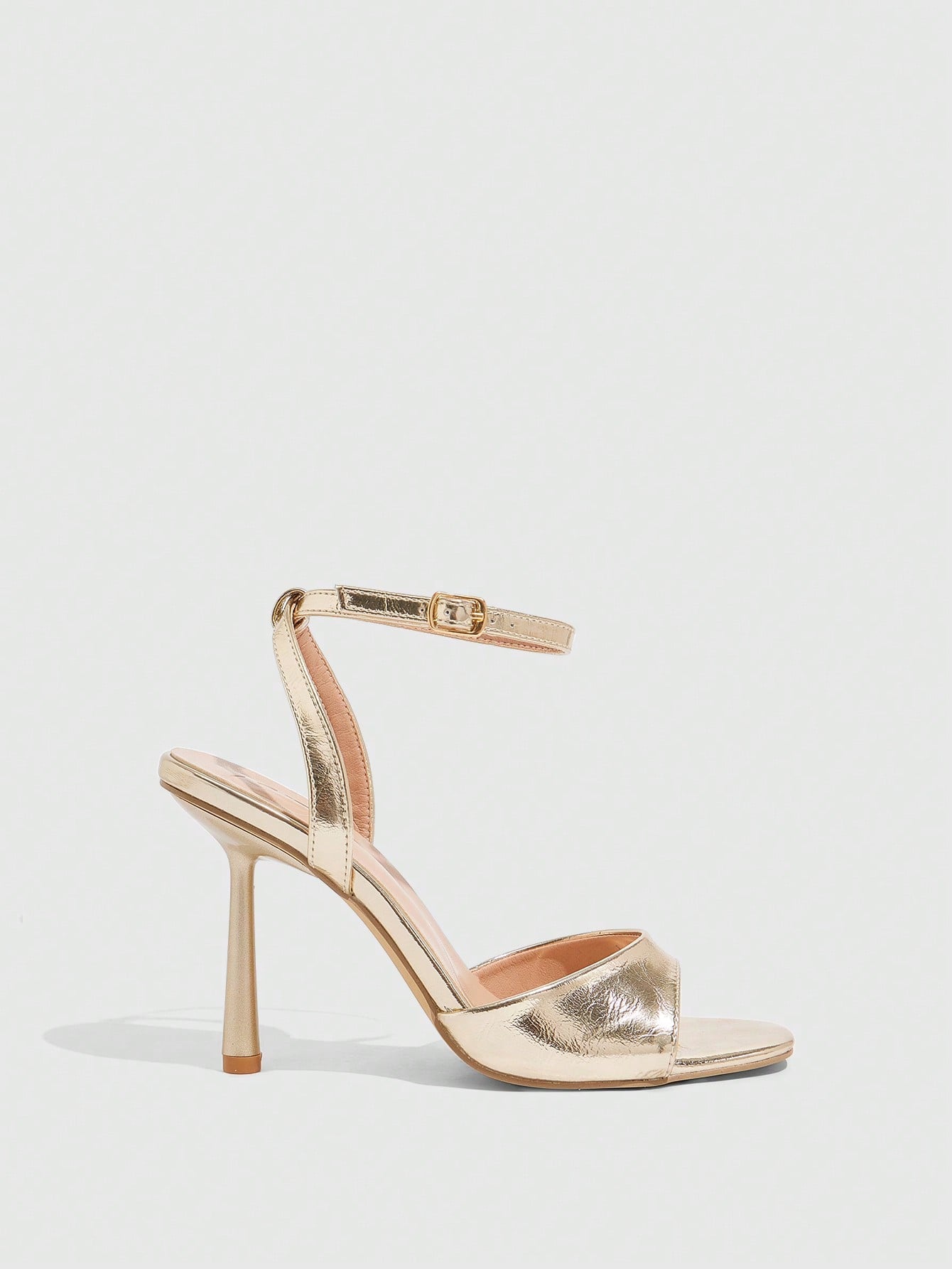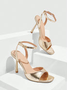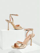 صندل CUCCOO SZL نسائي أنيق باللون الذهبي بحزام للكاحل ومقدمة مفتوحة وكعب عالٍ