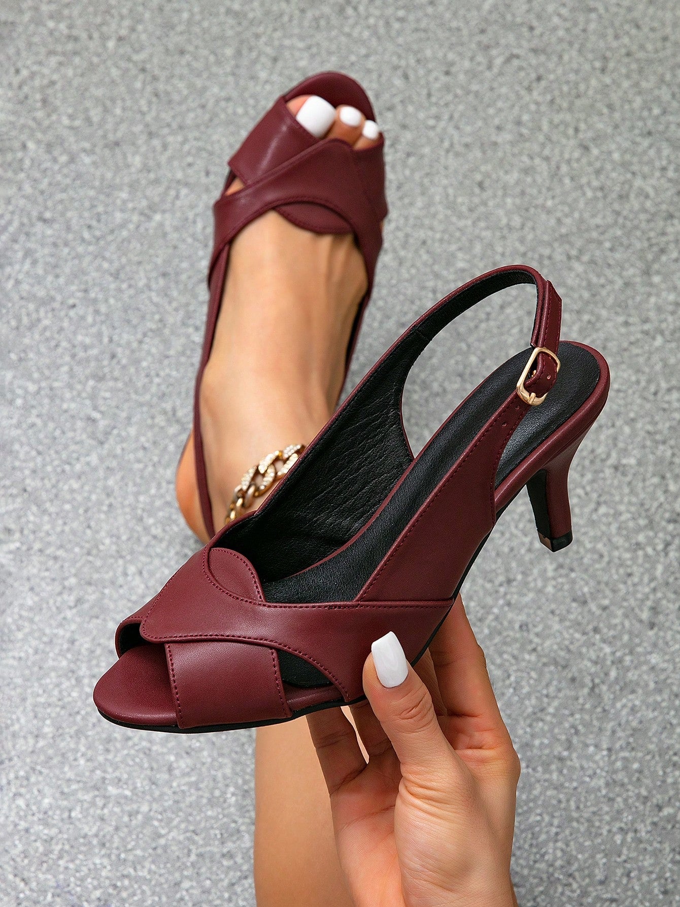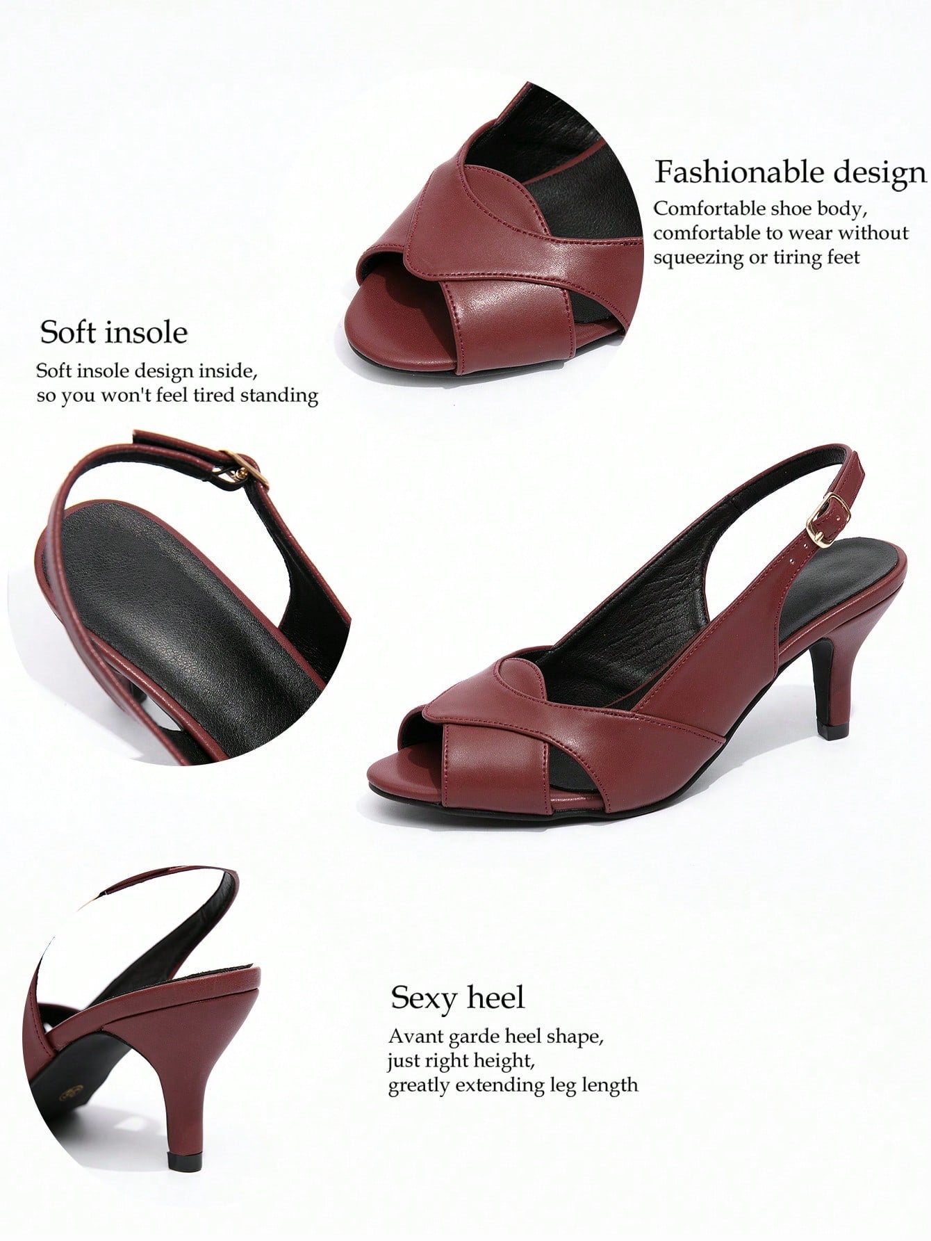 صنادل كعب ستيليتو فرنسية أنيقة وعصرية، حزام مفتوح من الأمام، كعب عالٍ، مناسبة للحفلات/المضيفات.