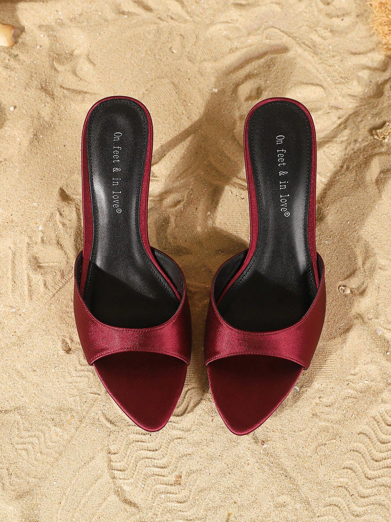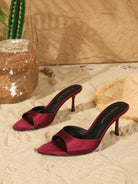 women On feet& in love Women Strap Satin Peep Toe High Heel Slide Sandals