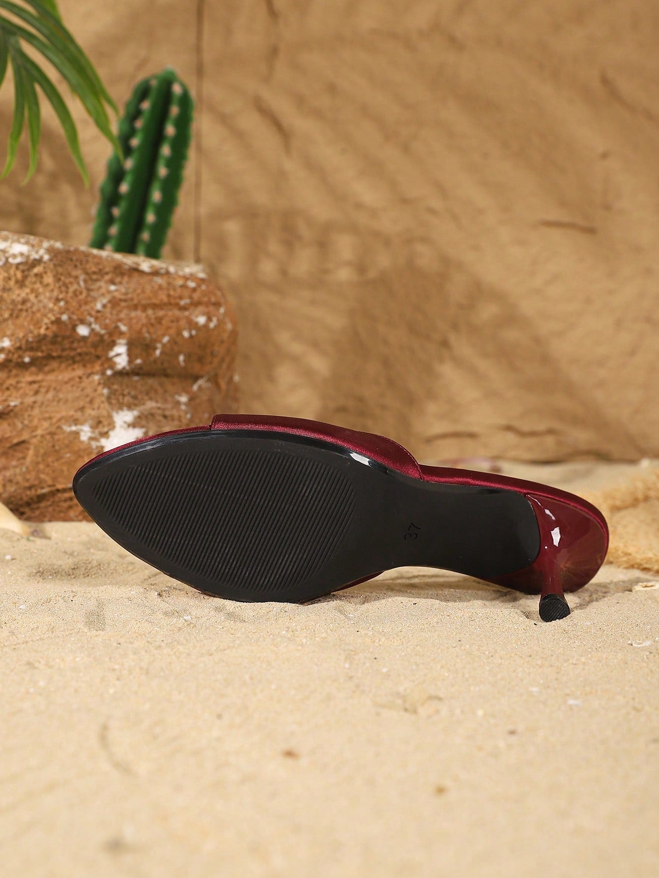 صنادل نسائية بكعب عالٍ وأشرطة من الساتان مفتوحة من الأمام على القدمين وفي الحب