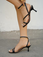 صندل نسائي أنيق أسود بكعب عالٍ وكعب قطة مع حزام كاحل قابل للتعديل من planare