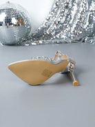 صندل معدني لامع من الكريستال بمقدمة مدببة وكعب عالٍ