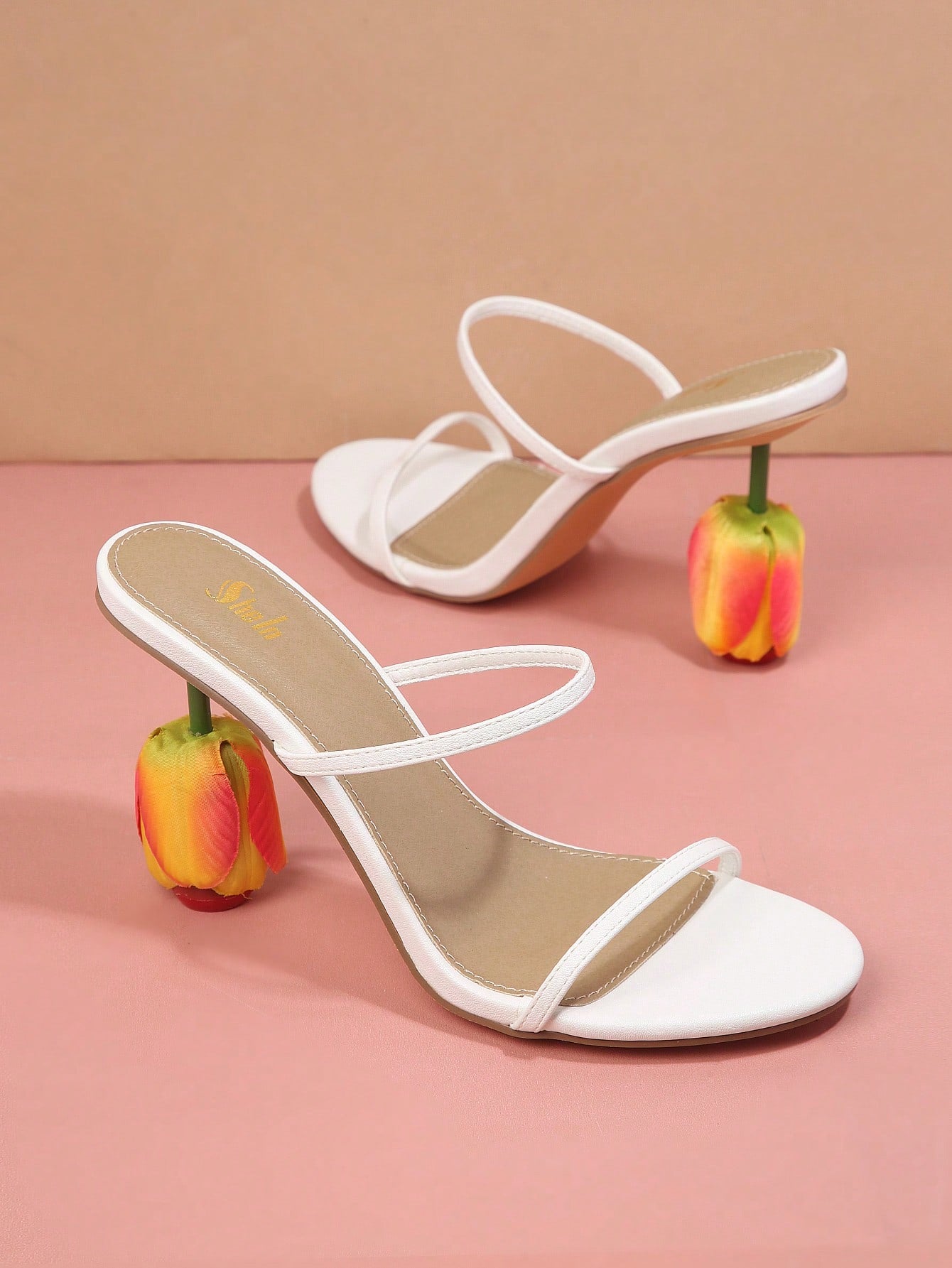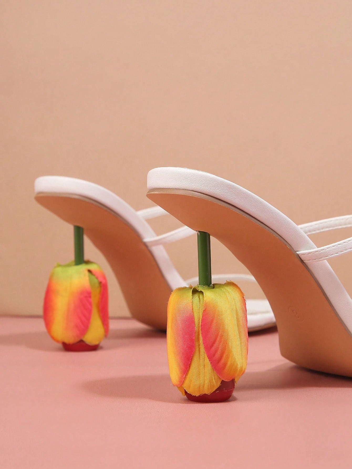 حذاء بكعب عالٍ مزهر برأس مستدير