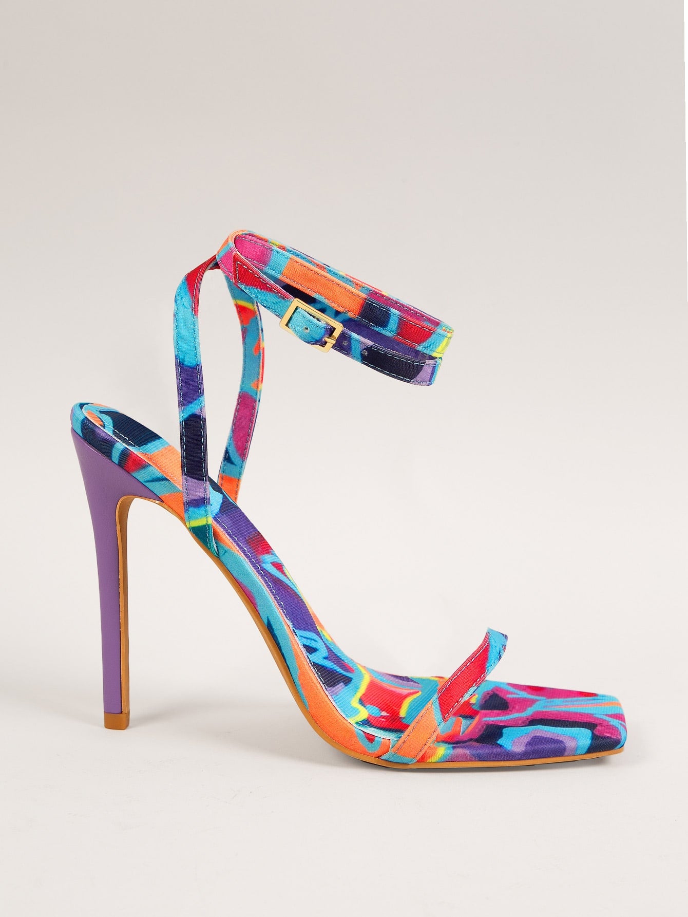 women SHUZIA Ankle Strap Square Toe Stiletto Heeled Sandals