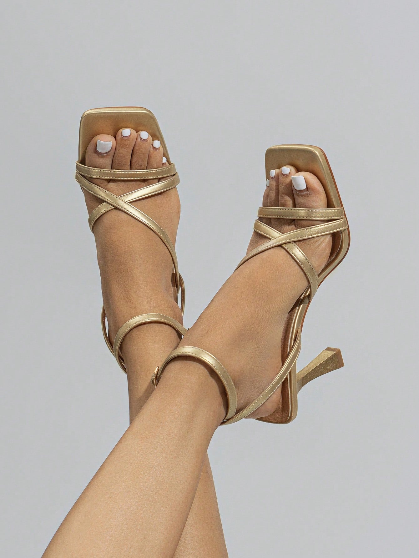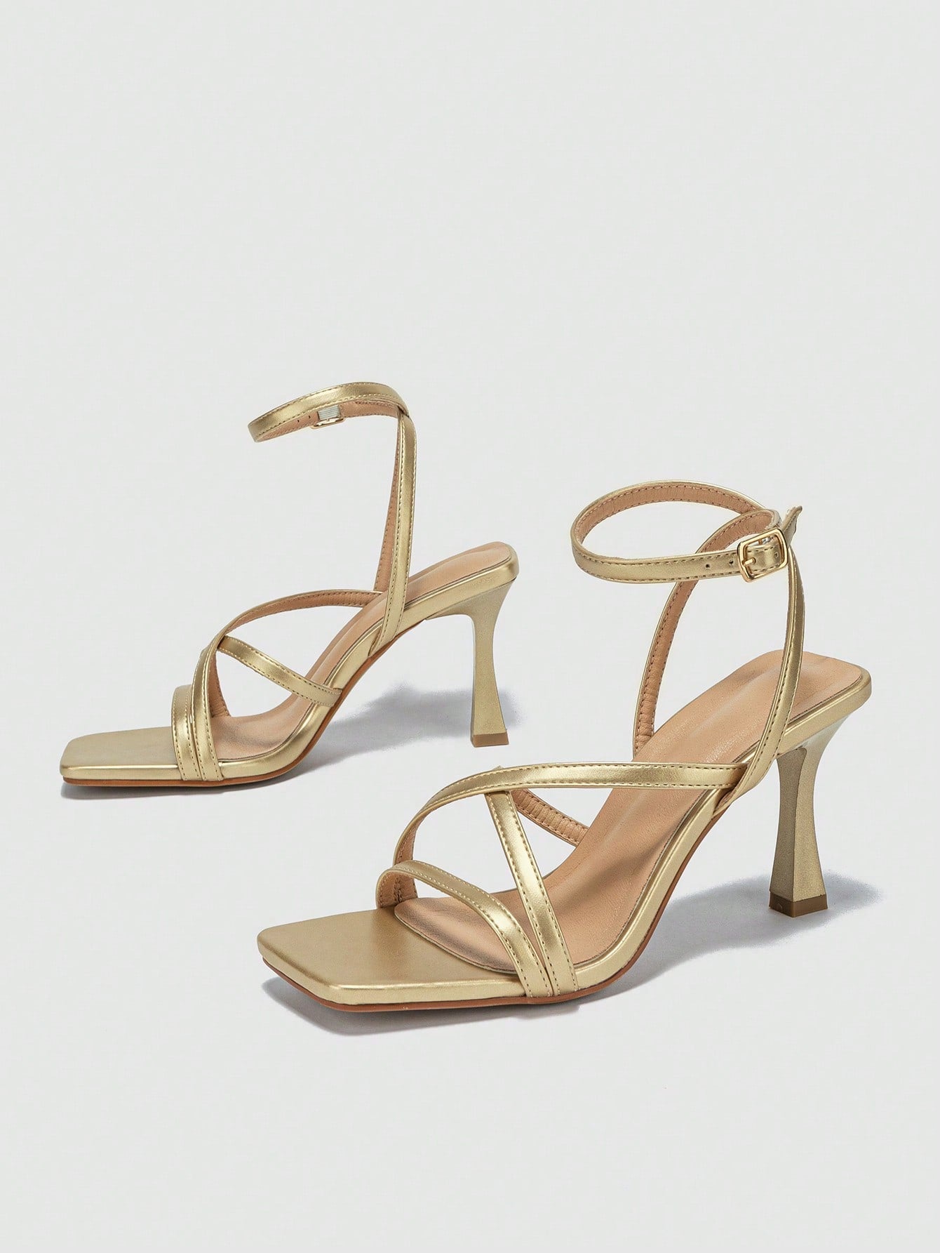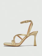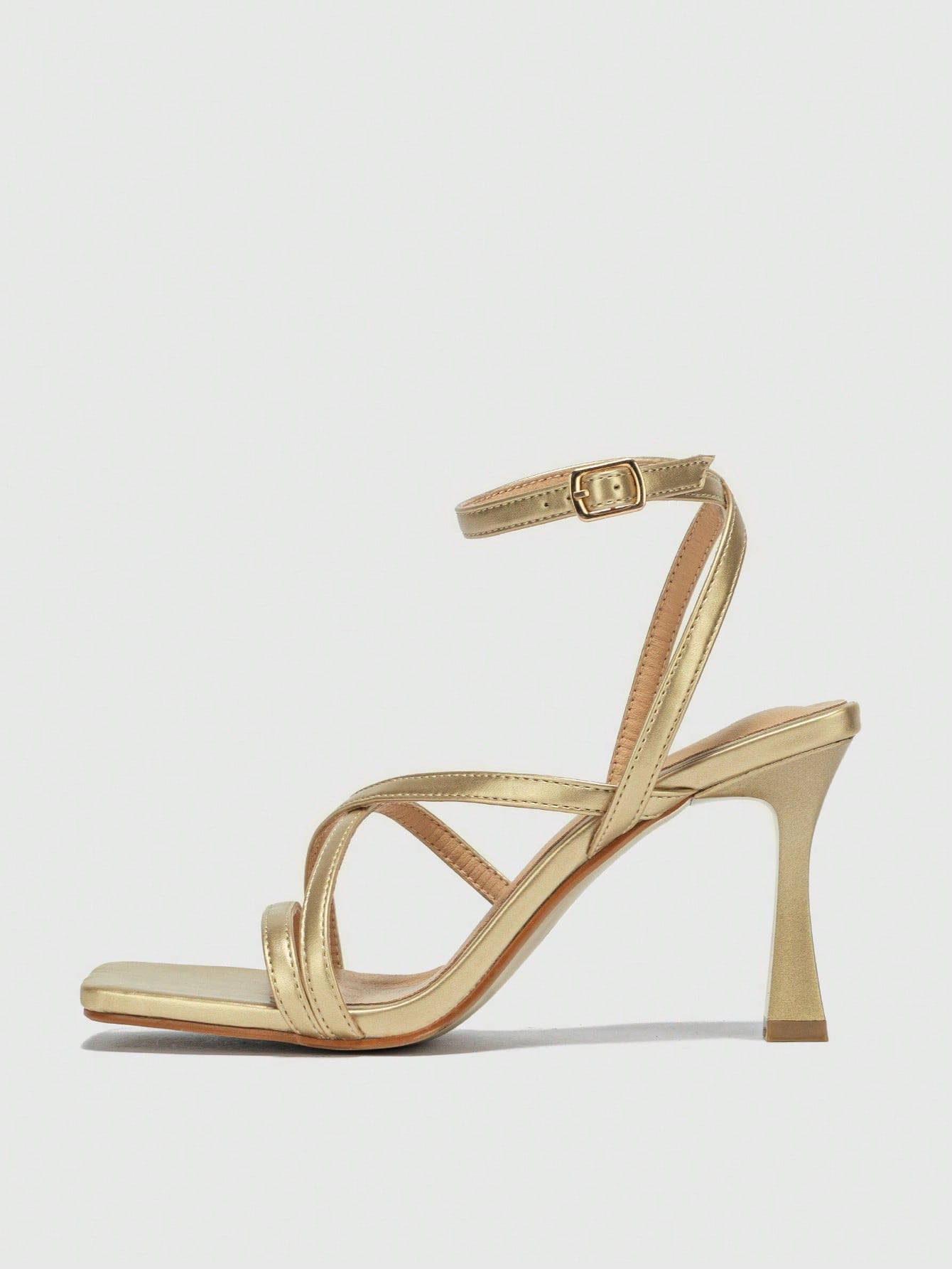 صندل نسائي بكعب هرمي معدني وحزام للكاحل