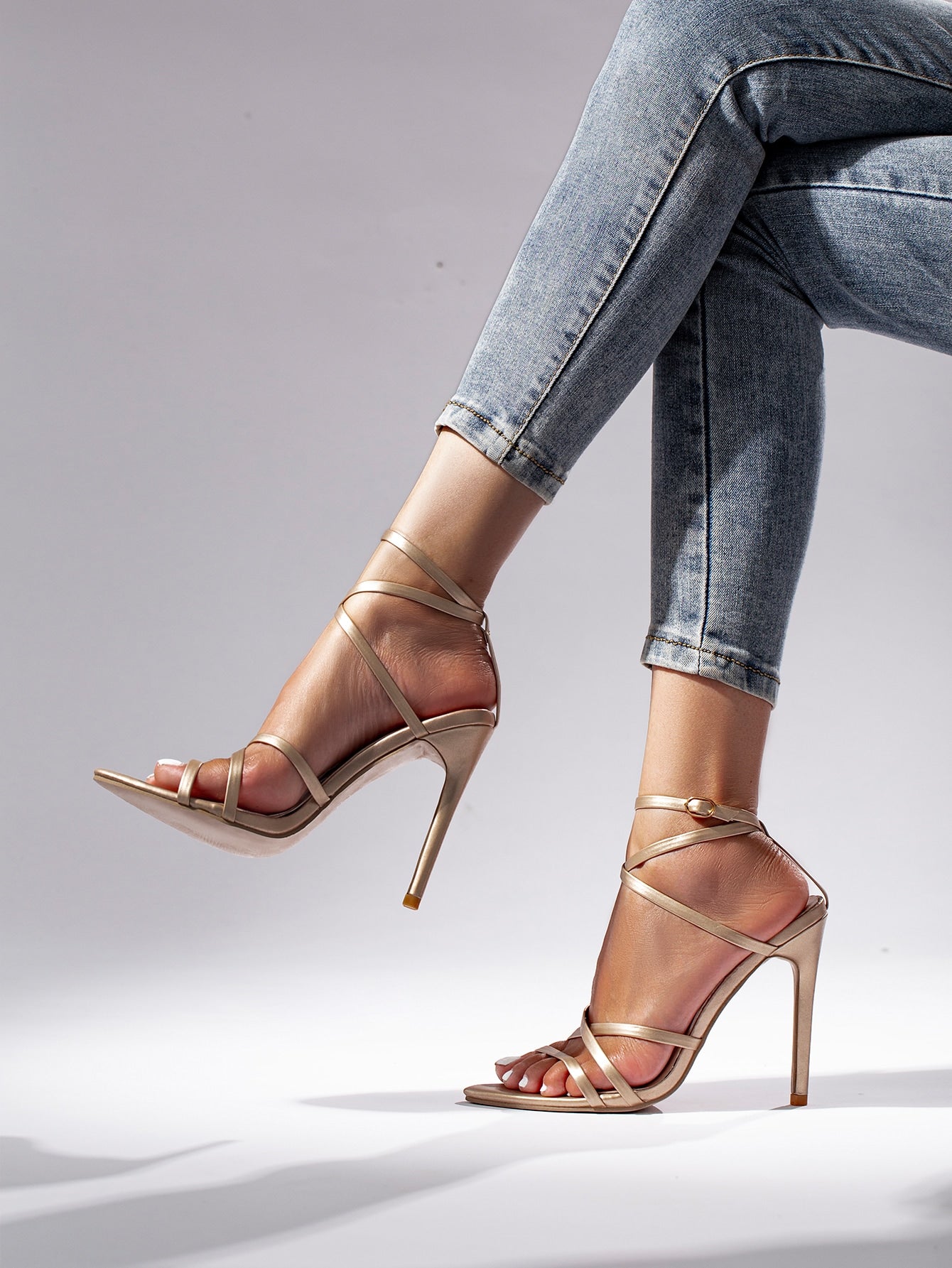 women Women Metallic Stiletto Heeled Ankle Strap Sandals