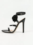 women Women's 3D Floral Criss-Cross Strap Buckle Open Toe Sexy Glamorous Romantic Wedding Party Fashion Black High Heel Sandals