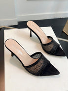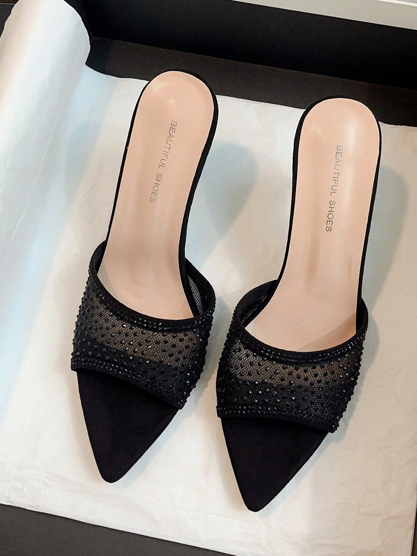 women Women's Rhinestone Embellished Pointed Toe Pyramid High Heel Sandals - Sexy Party Black See-Through Mesh Stiletto Heels For Summer