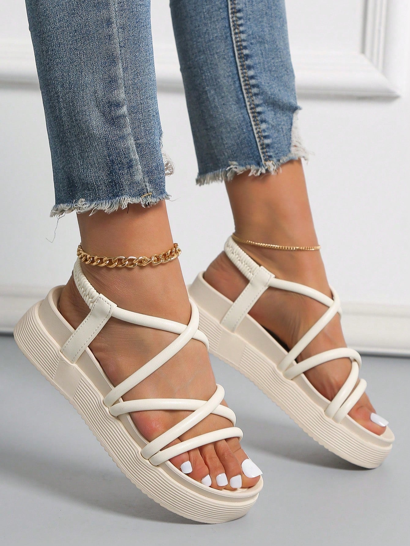 صندل أنيق بكعب إسفيني مفتوح من الخلف للنساء