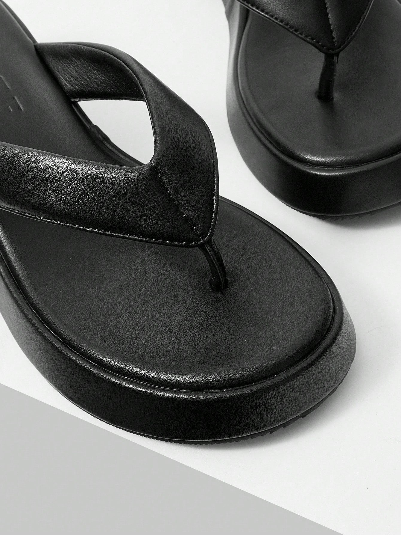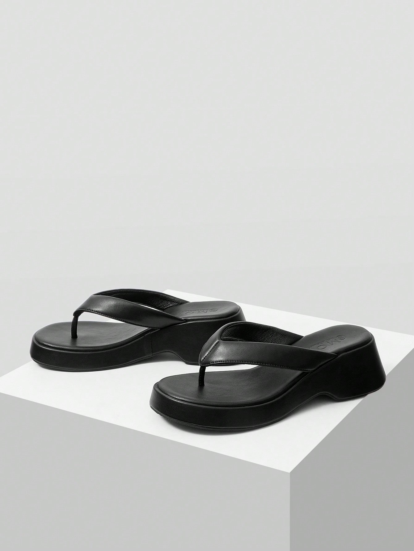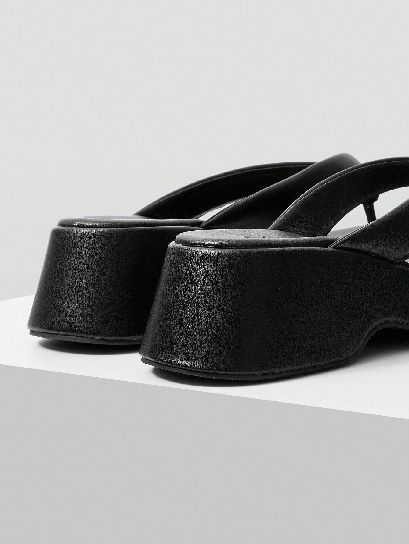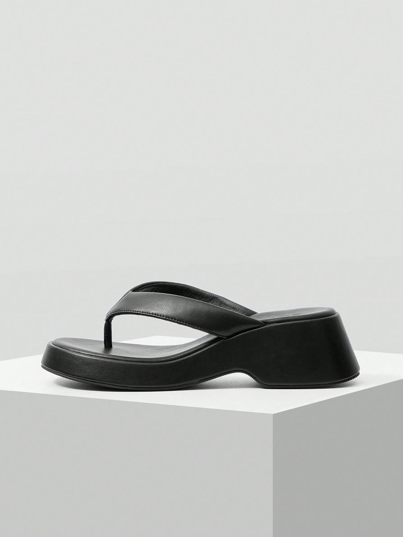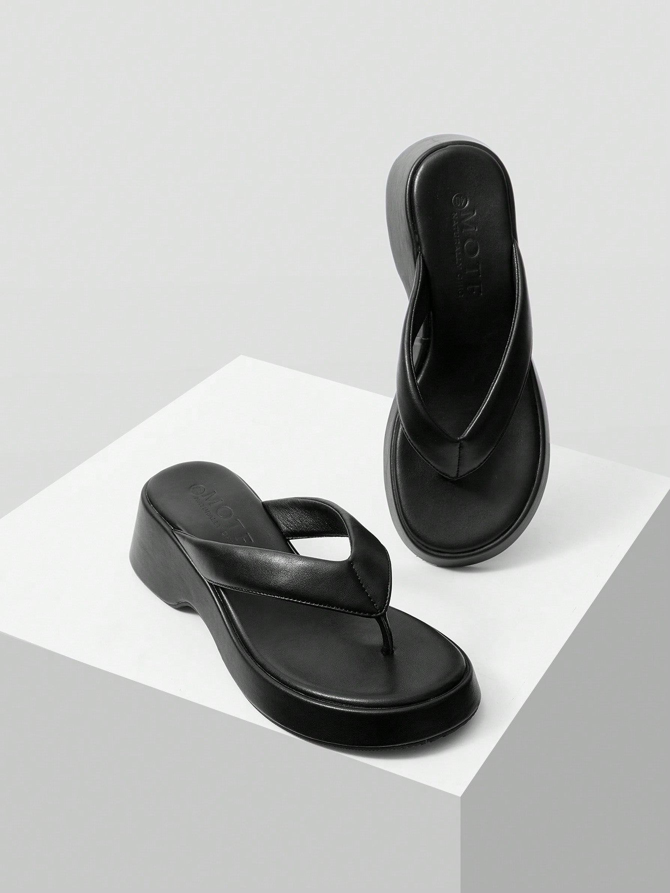 صنادل MOTF PREMIUM النسائية السوداء ذات الكعب الإسفيني والمنصة، أحذية العطلات الصيفية والخريفية