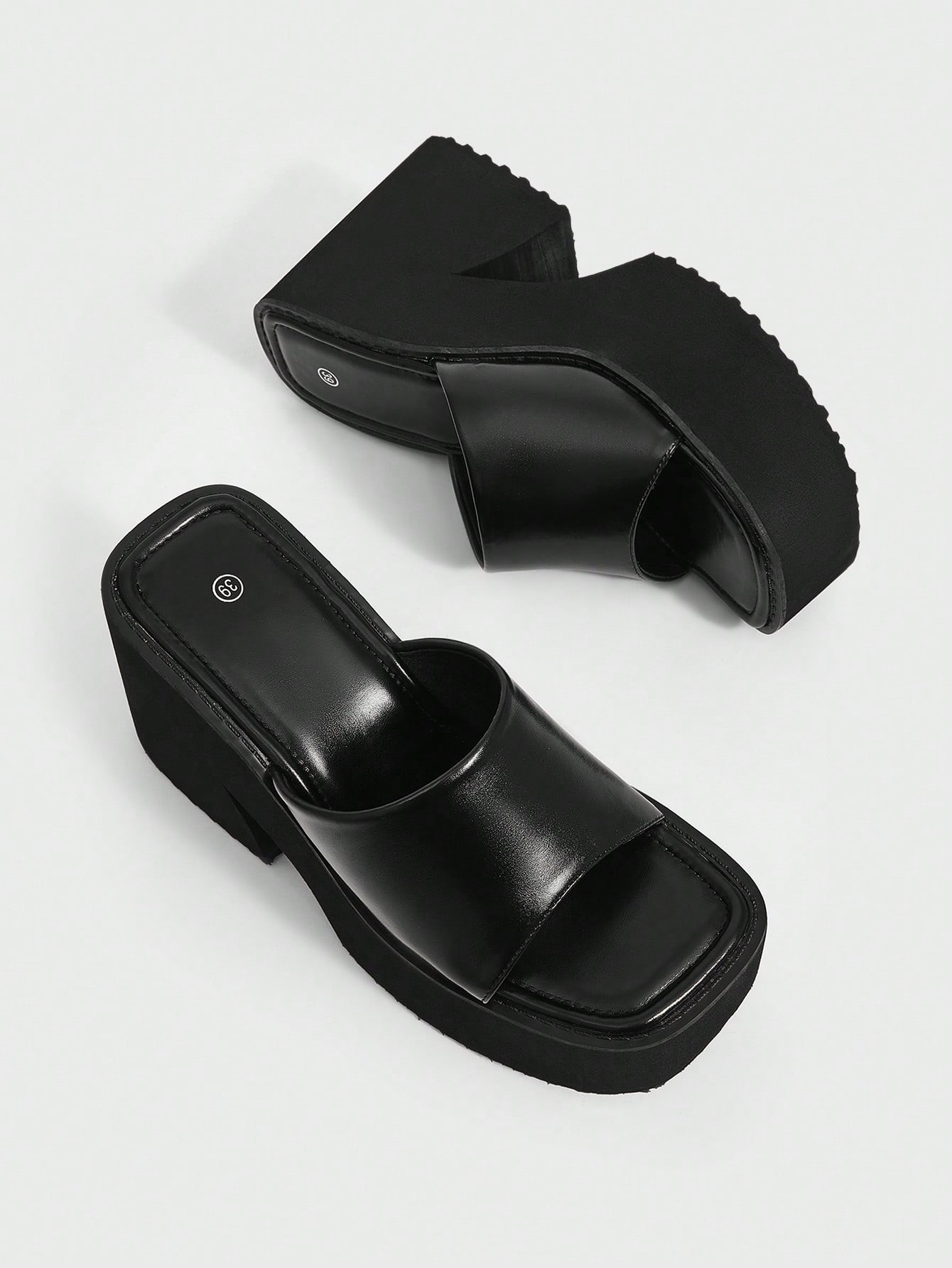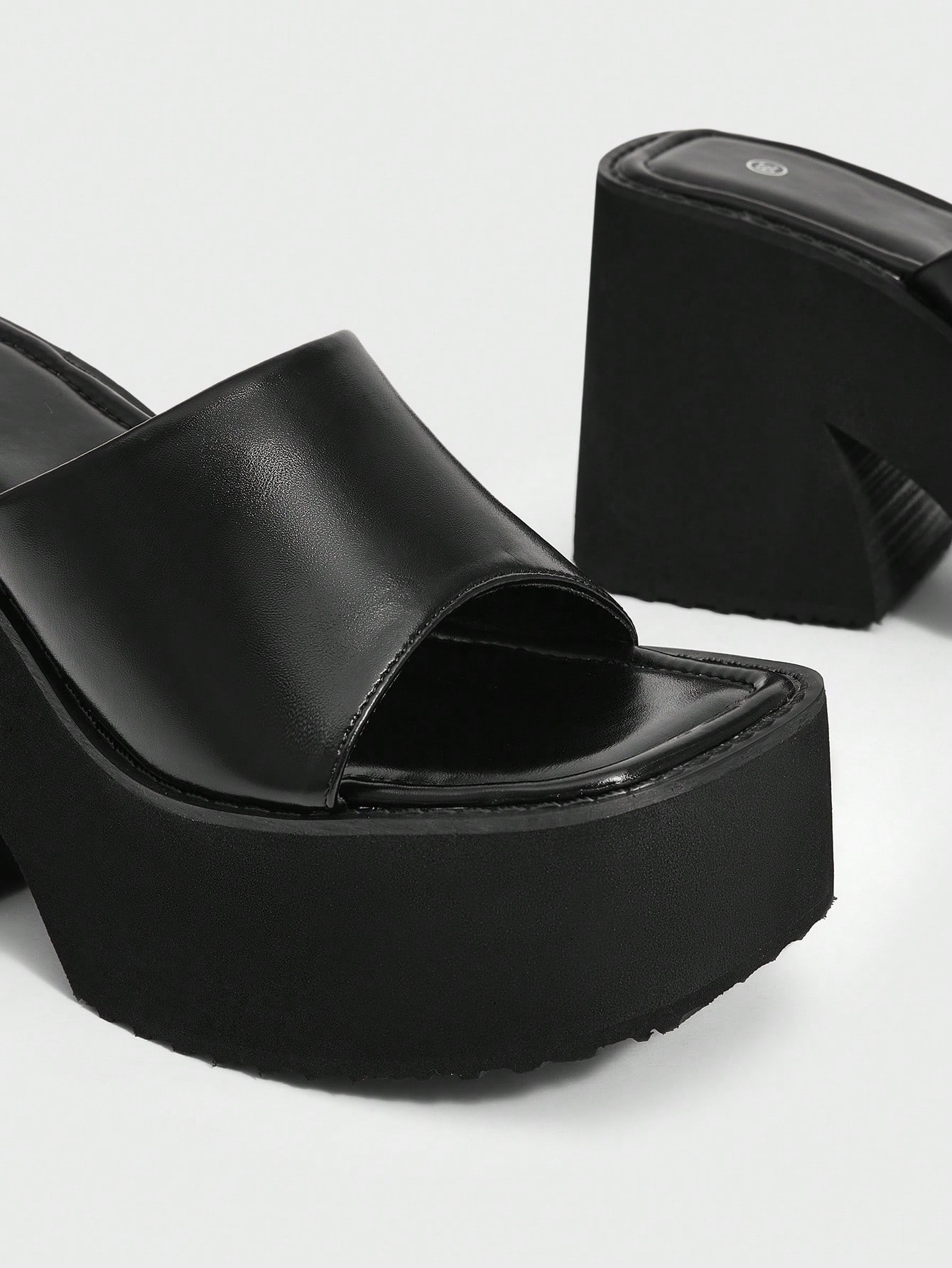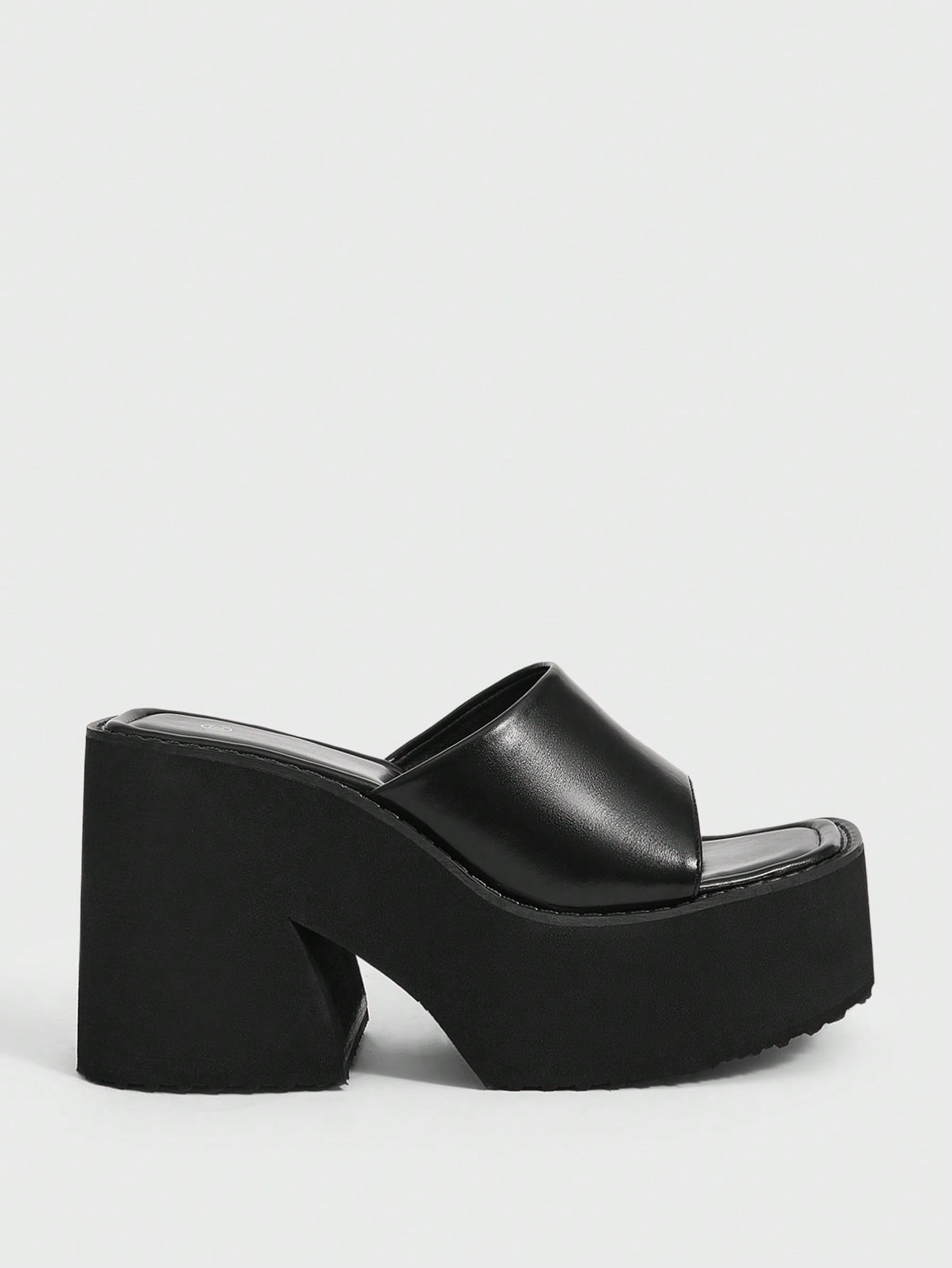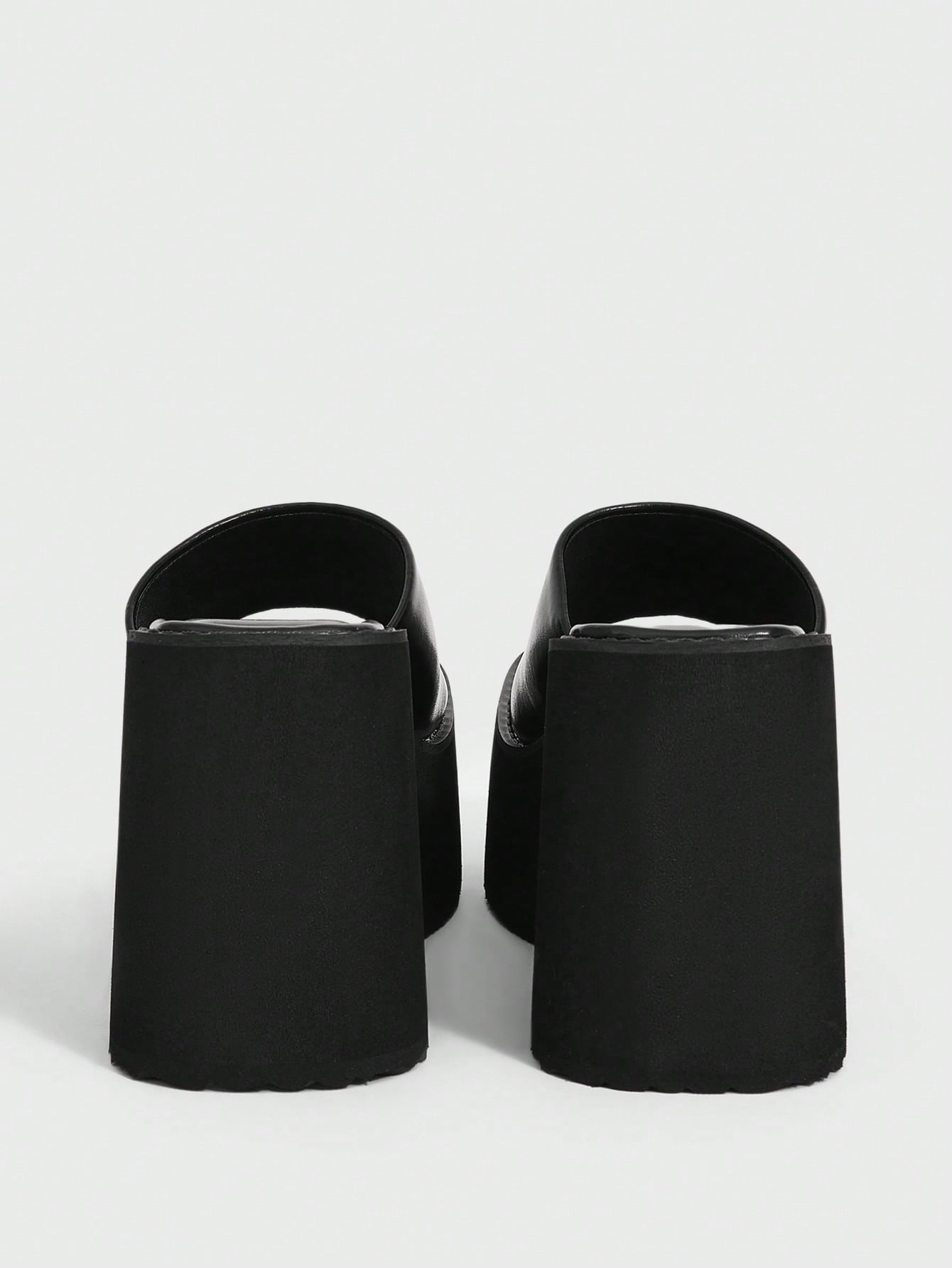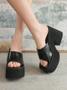 women Sugerpunk Women Square Toe Platform Wedge Slide Sandals