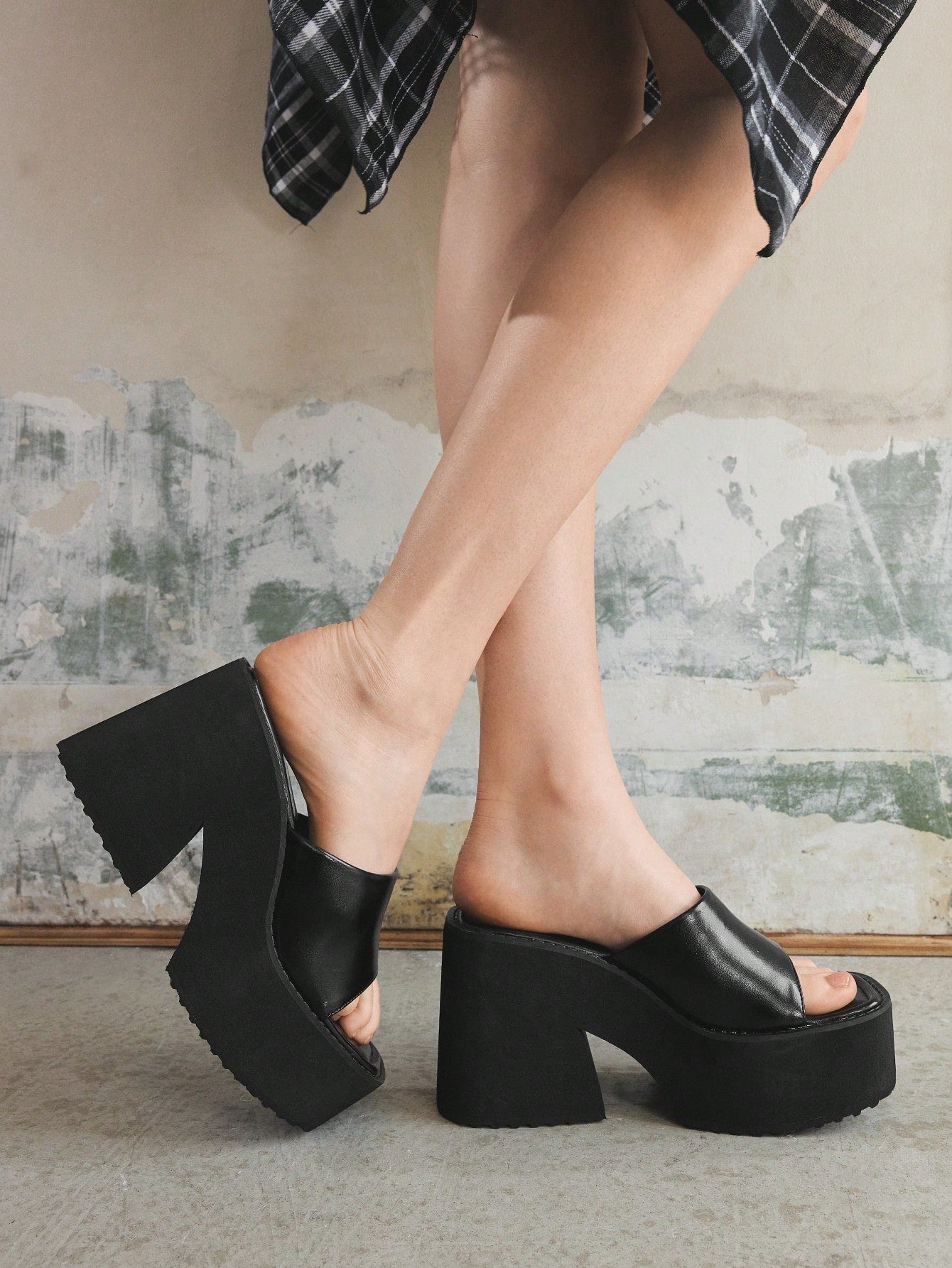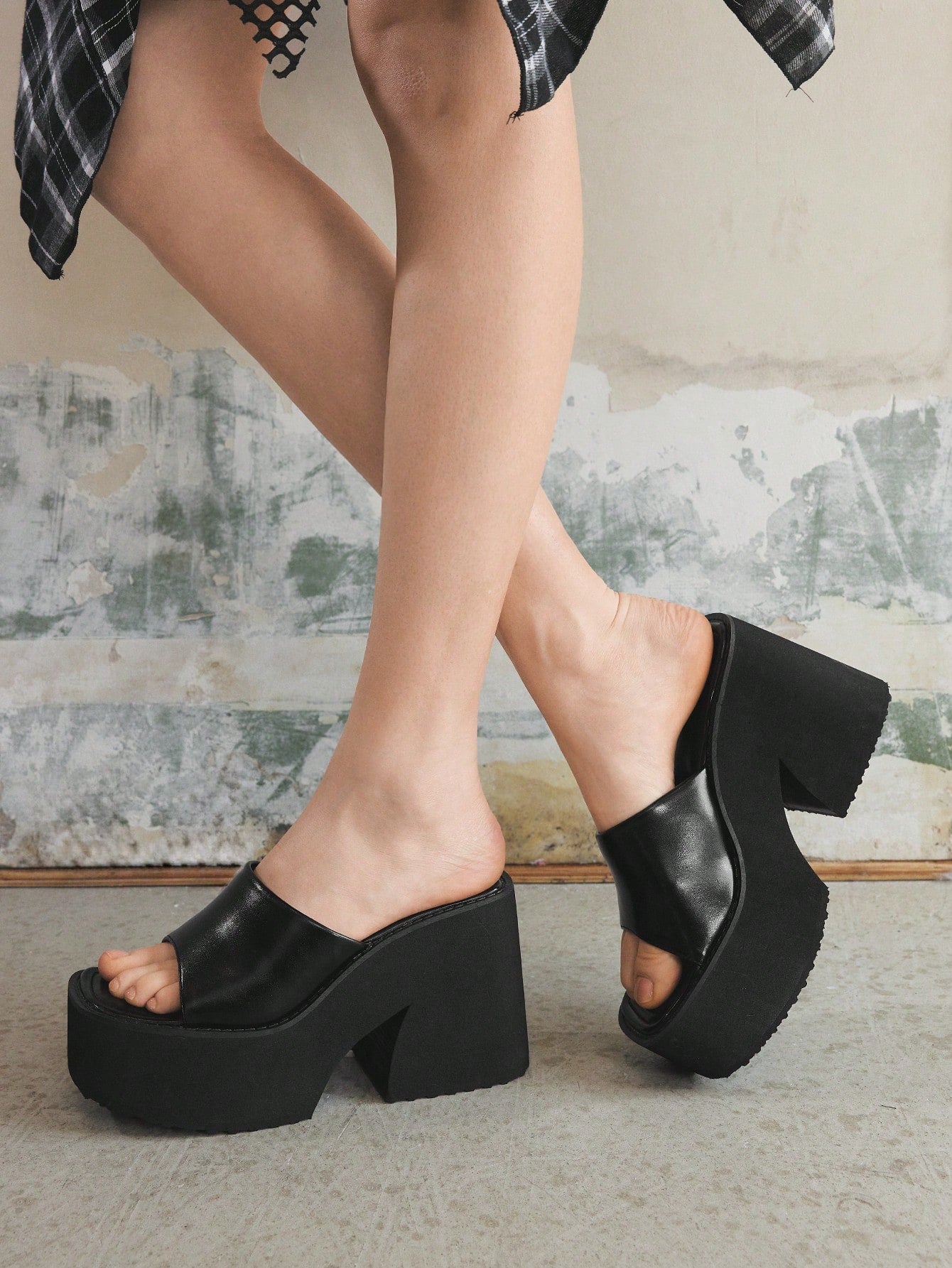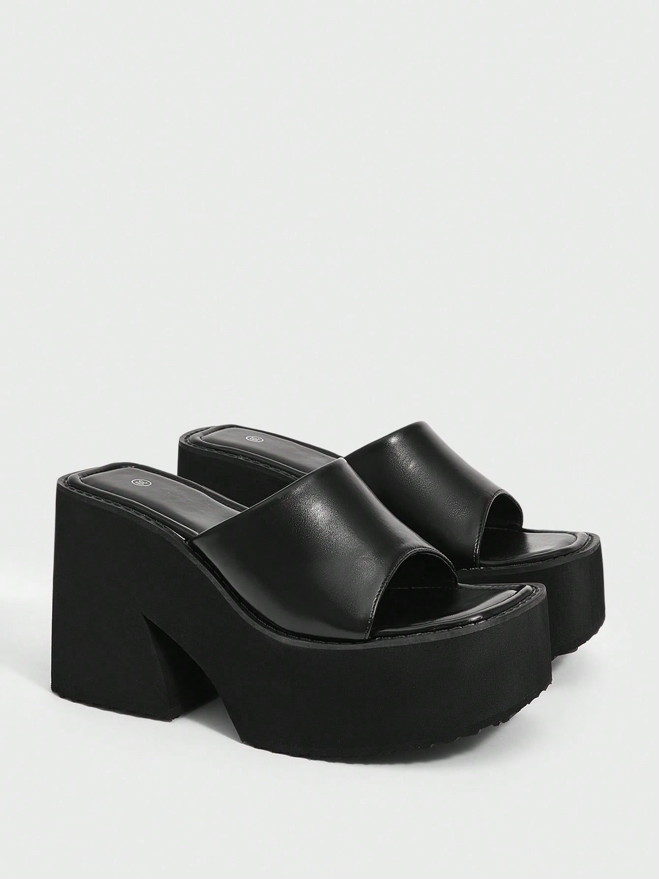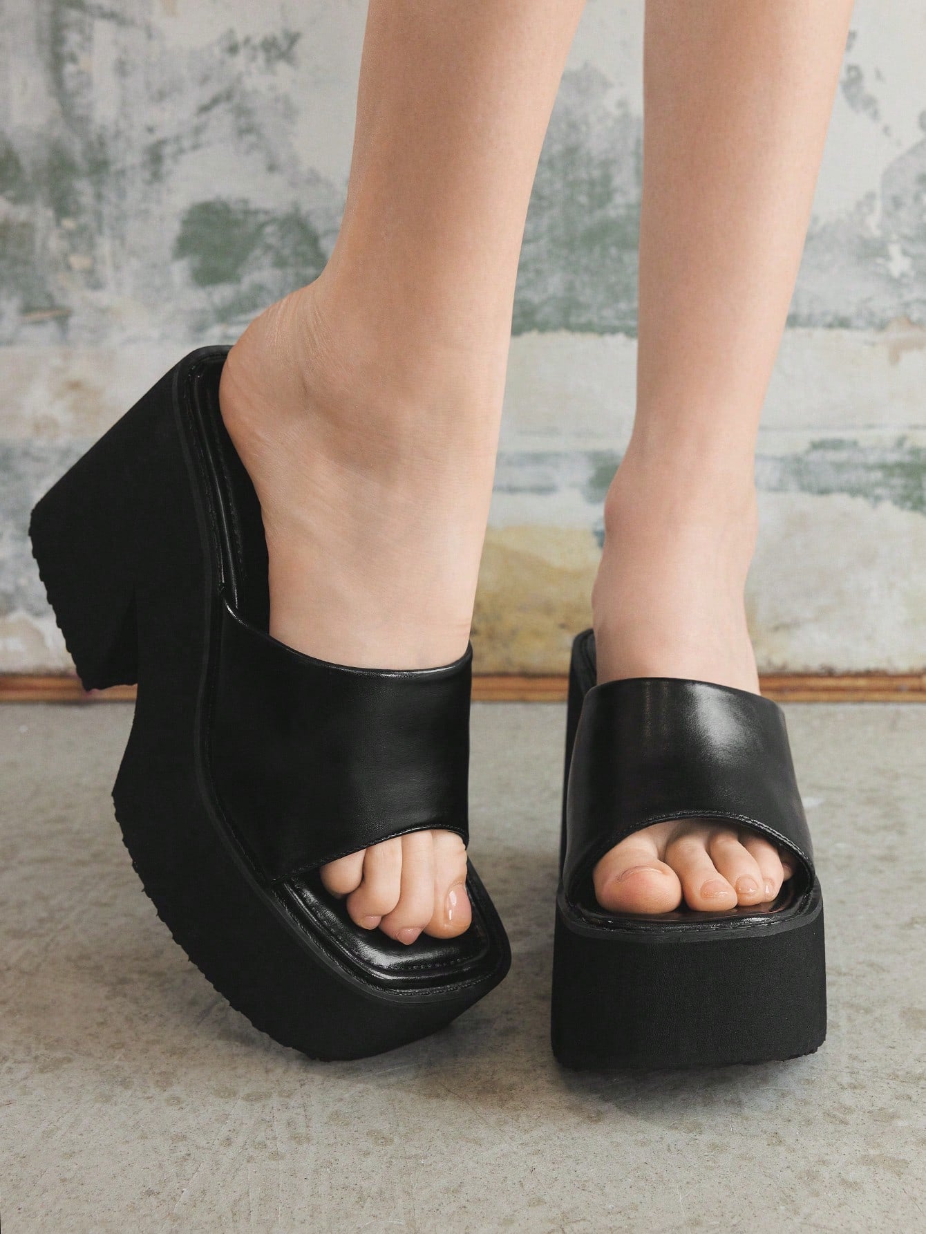 women Sugerpunk Women Square Toe Platform Wedge Slide Sandals