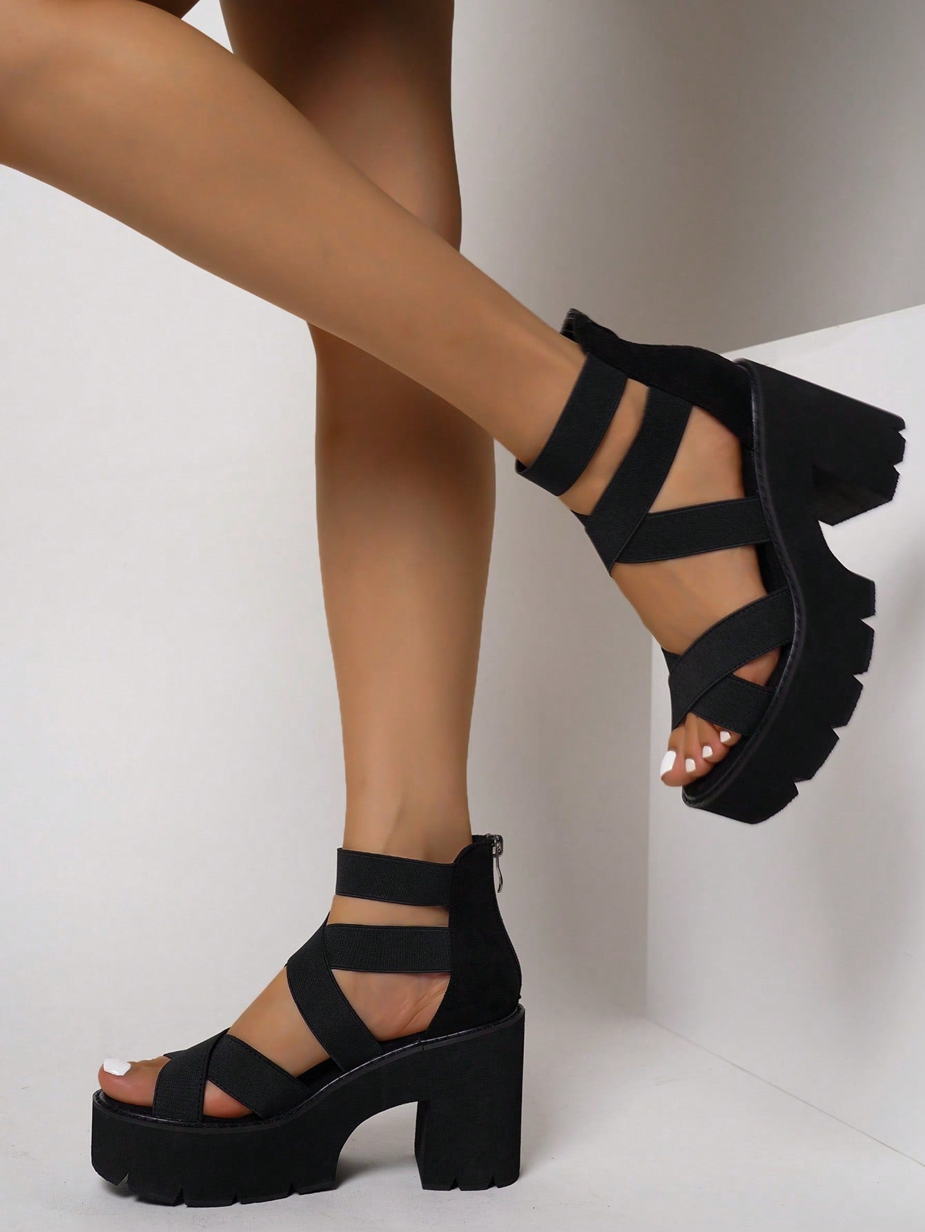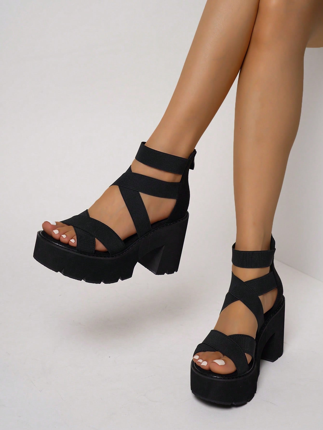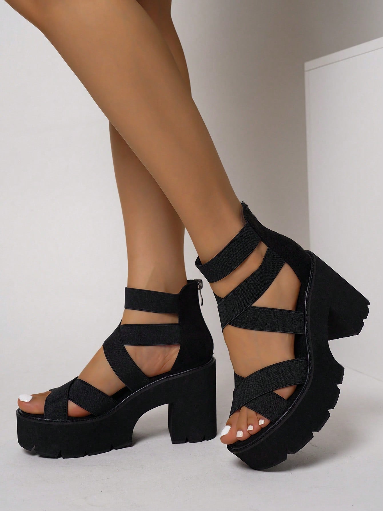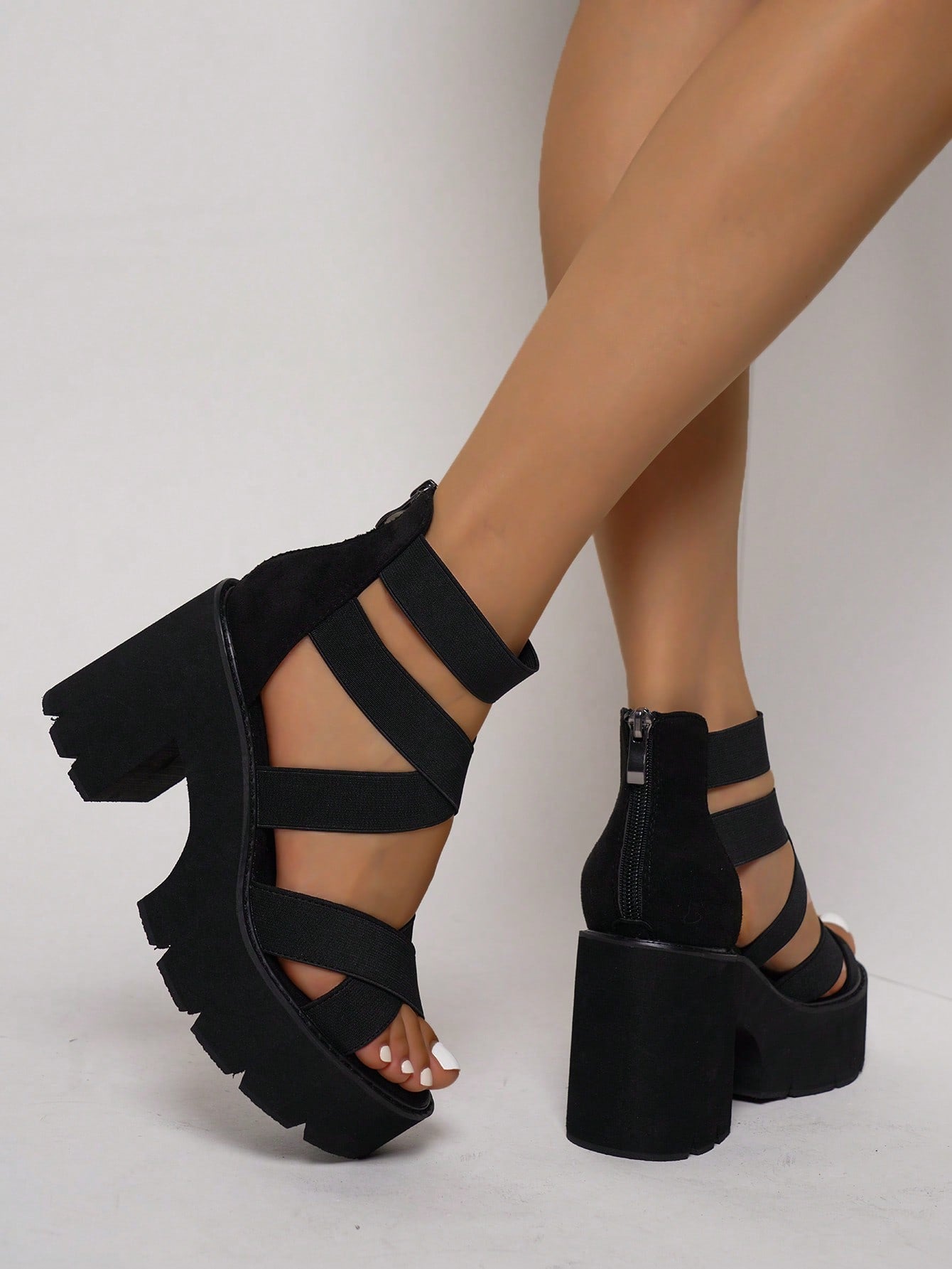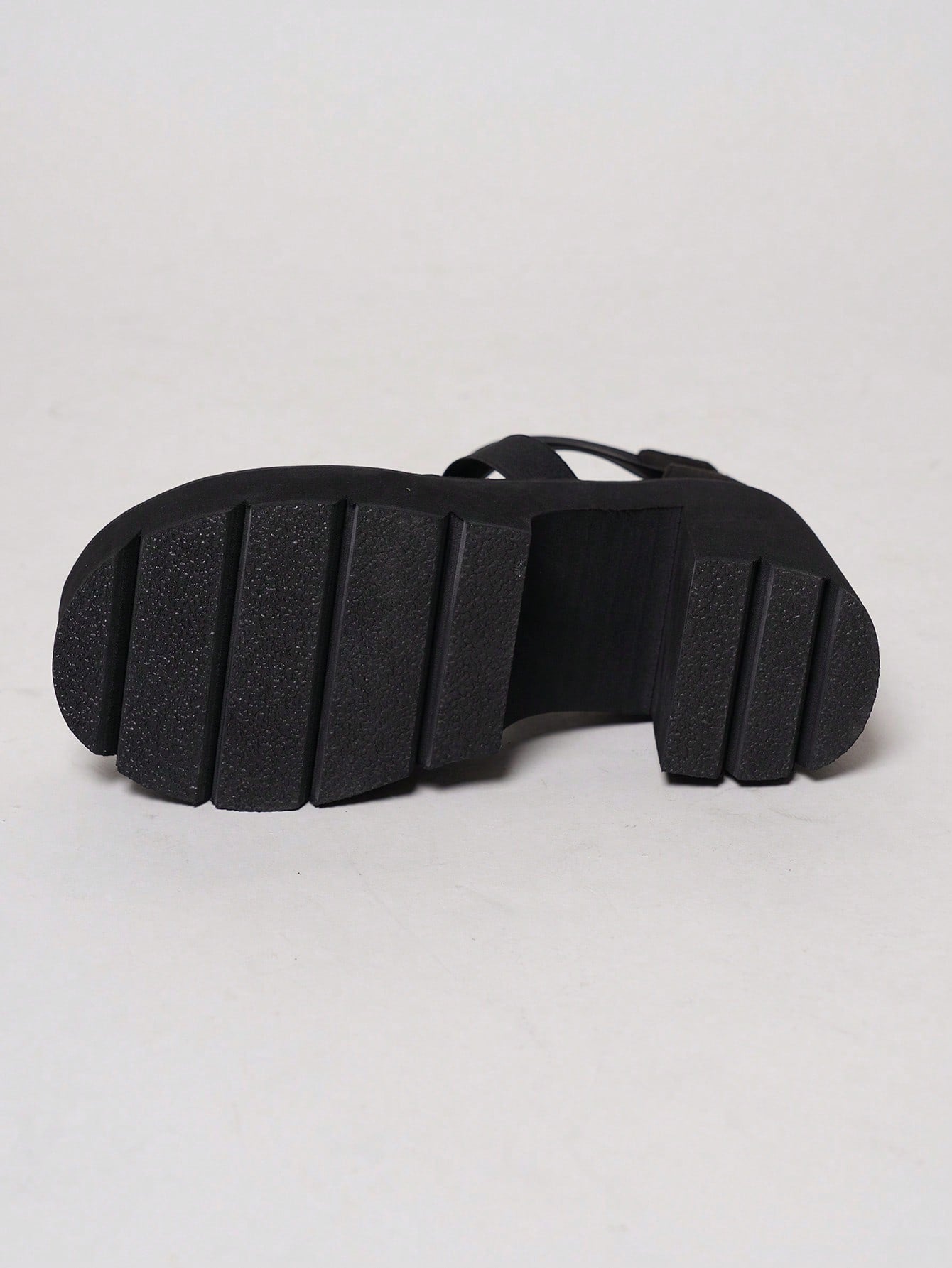 women Women's Fashionable Black Retro Roman Chunky Heel Casual Vacation Thick Sole Sandals