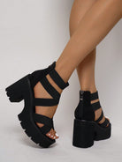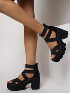 صندل نسائي أنيق أسود روماني بكعب سميك مناسب للعطلات الكاجوال والنعل السميك