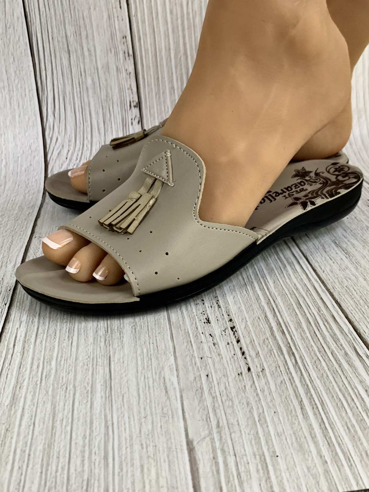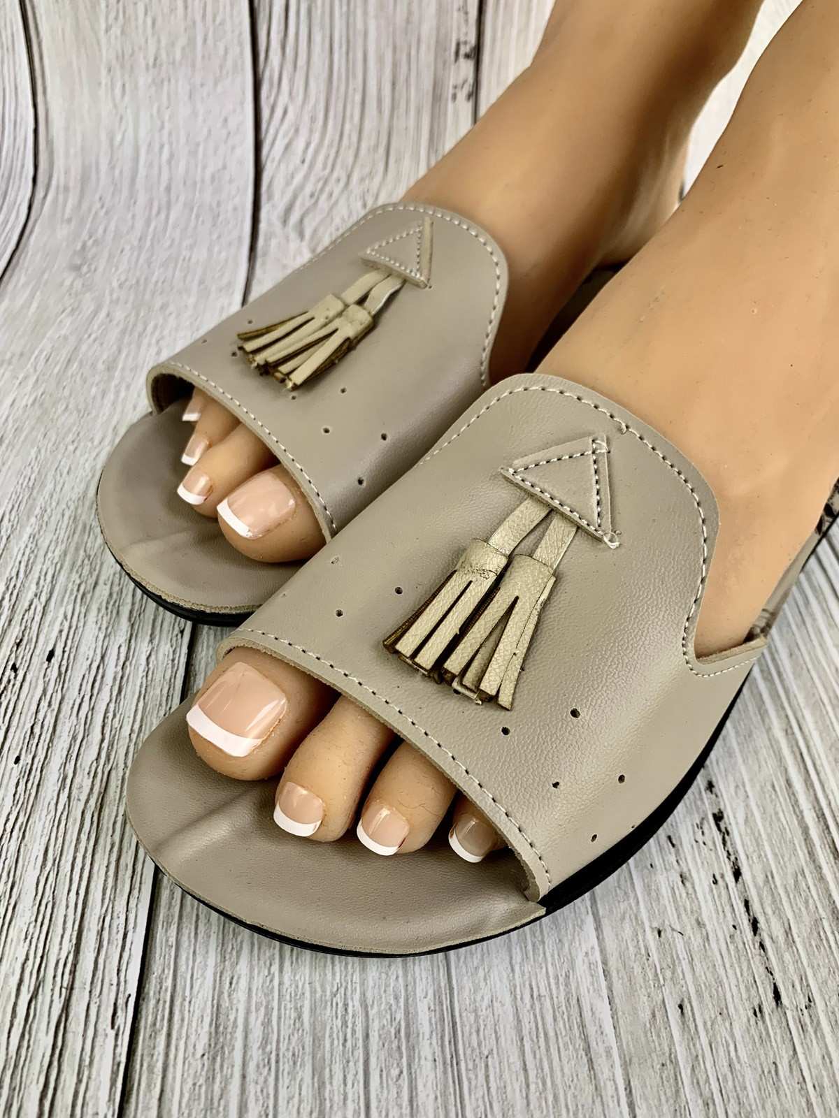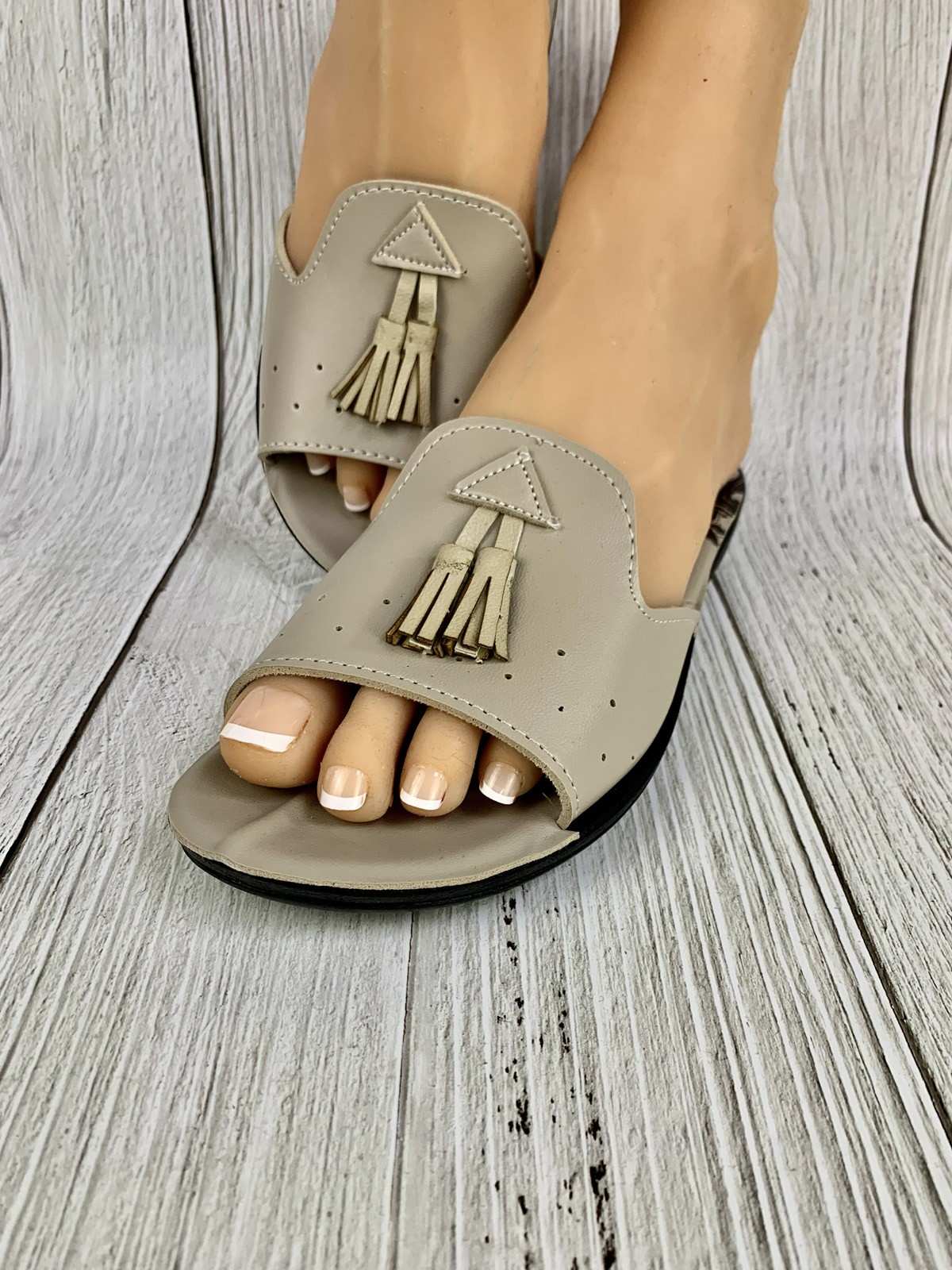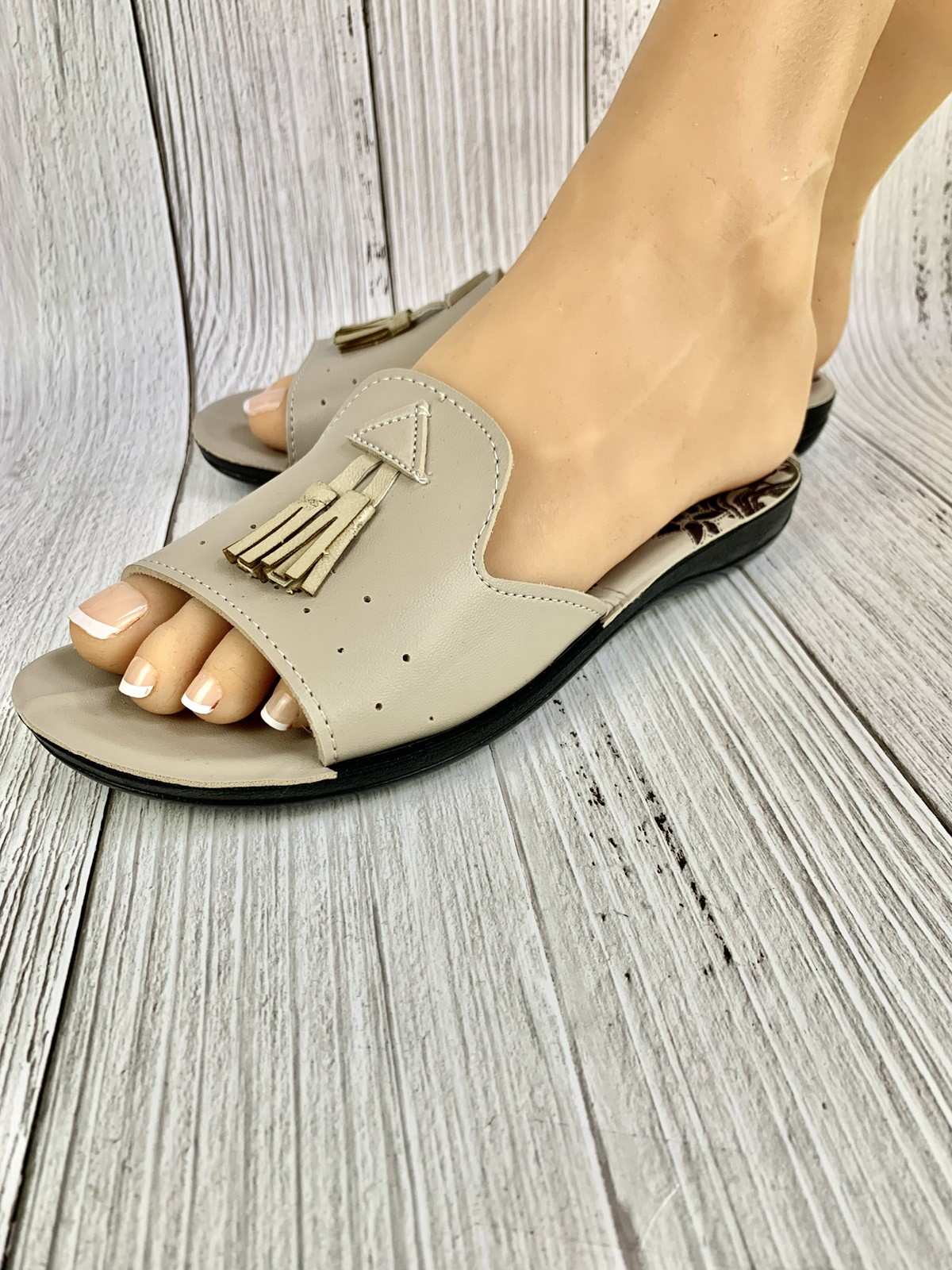 للنساء - شبشب جلد رمادي اللون من أواكس
