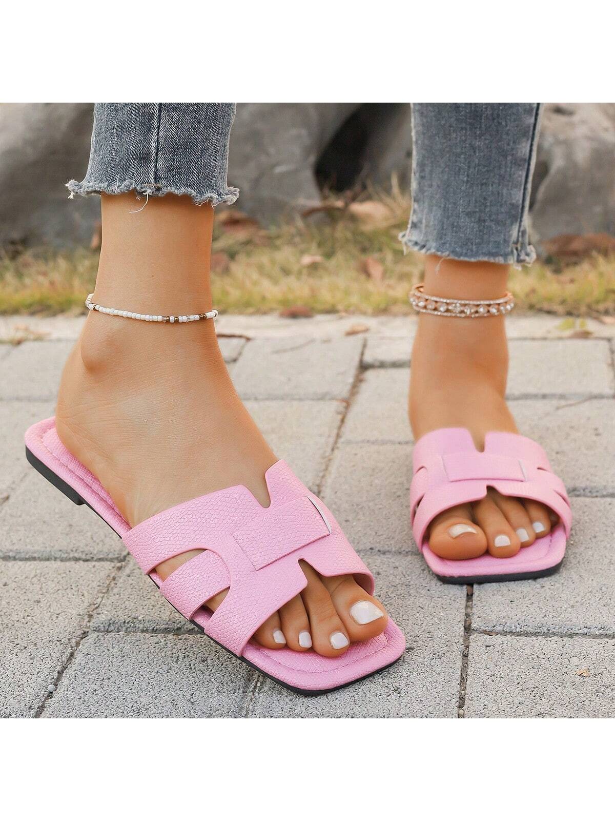 صنادل نسائية أنيقة مسطحة ذات مقدمة مربعة سهلة الارتداء، جديدة لربيع وصيف هذا العام، شباشب نسائية مسطحة متعددة الاستخدامات.