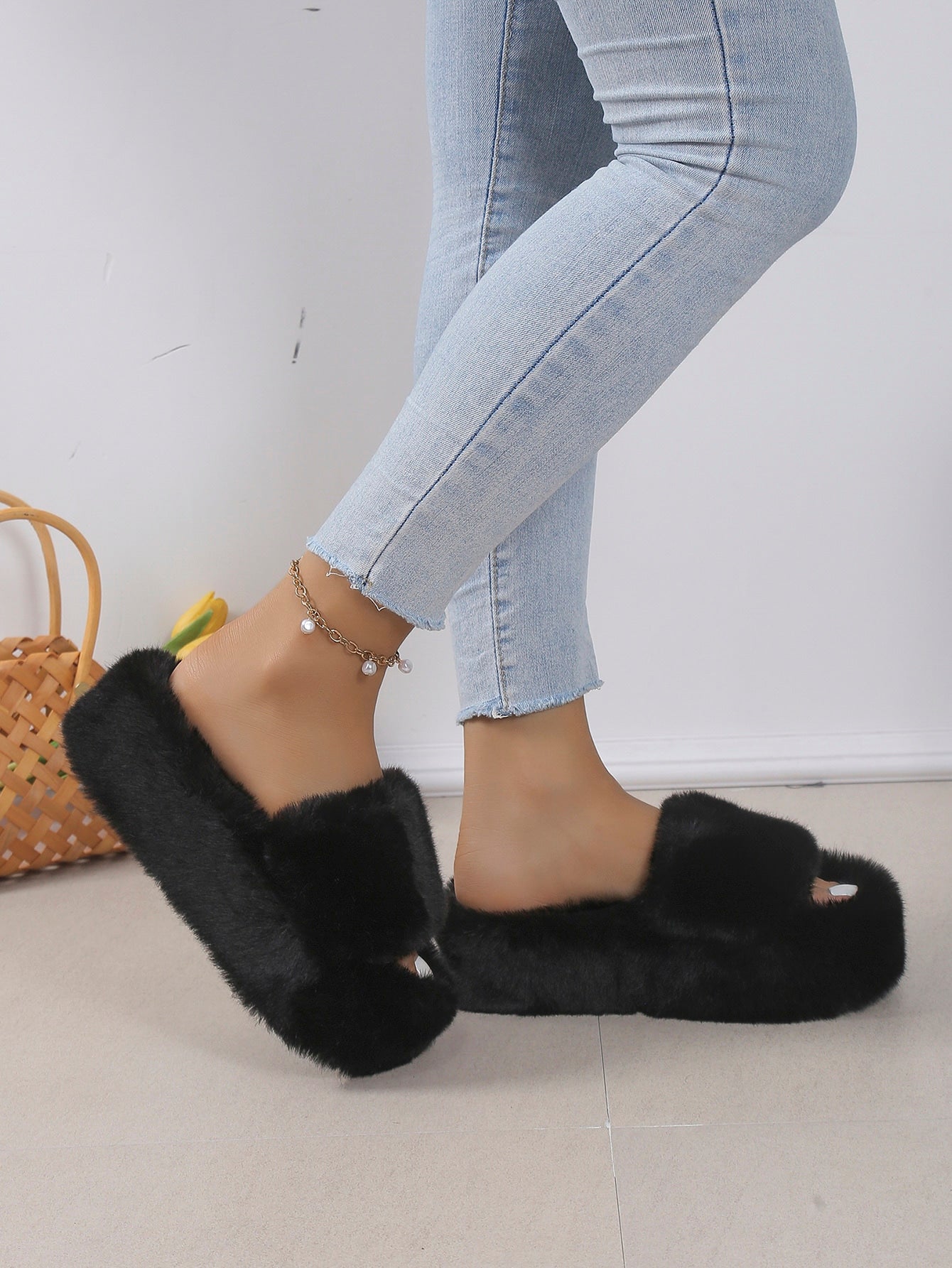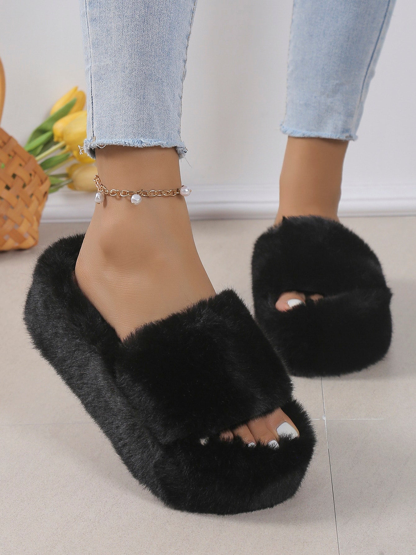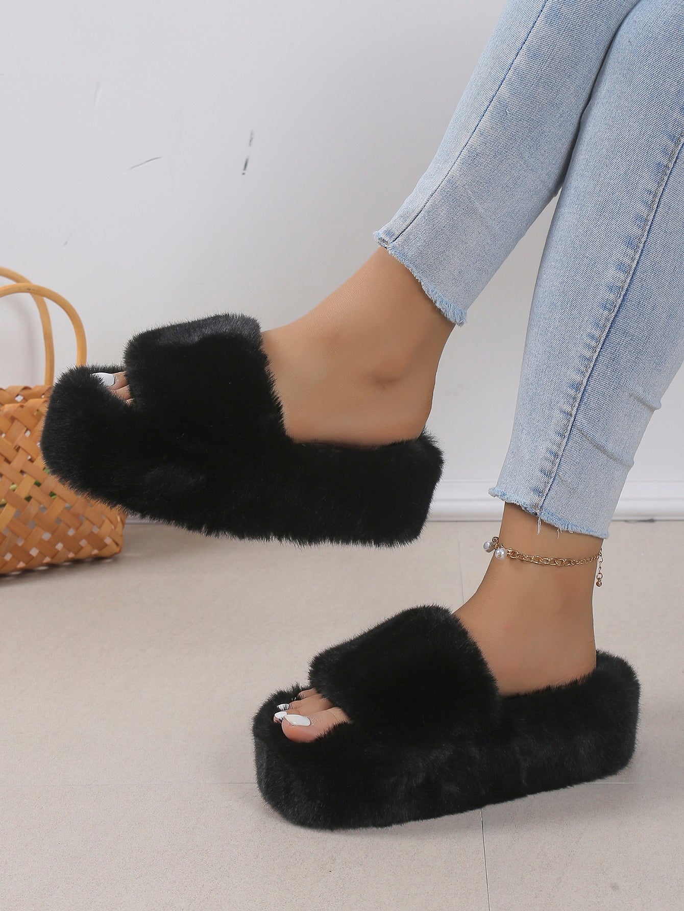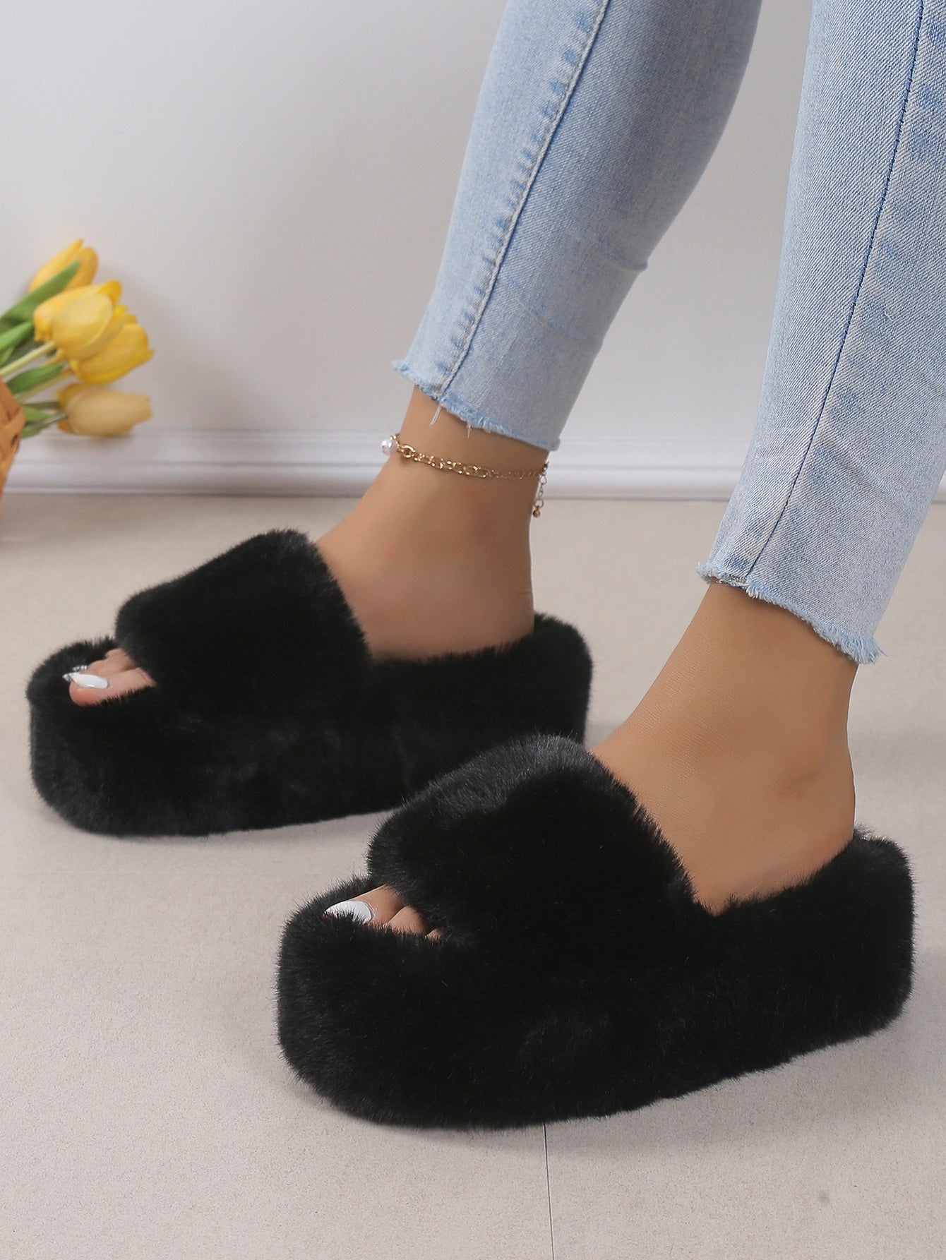 women Women's Thick Bottom Fluffy Slippers Soft Sole Open Toe Casual Slippers