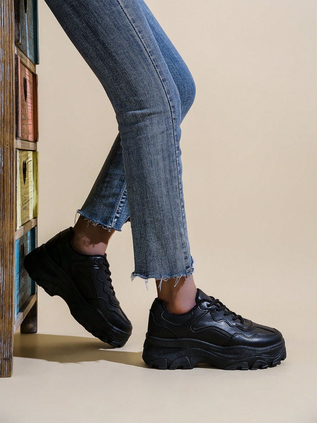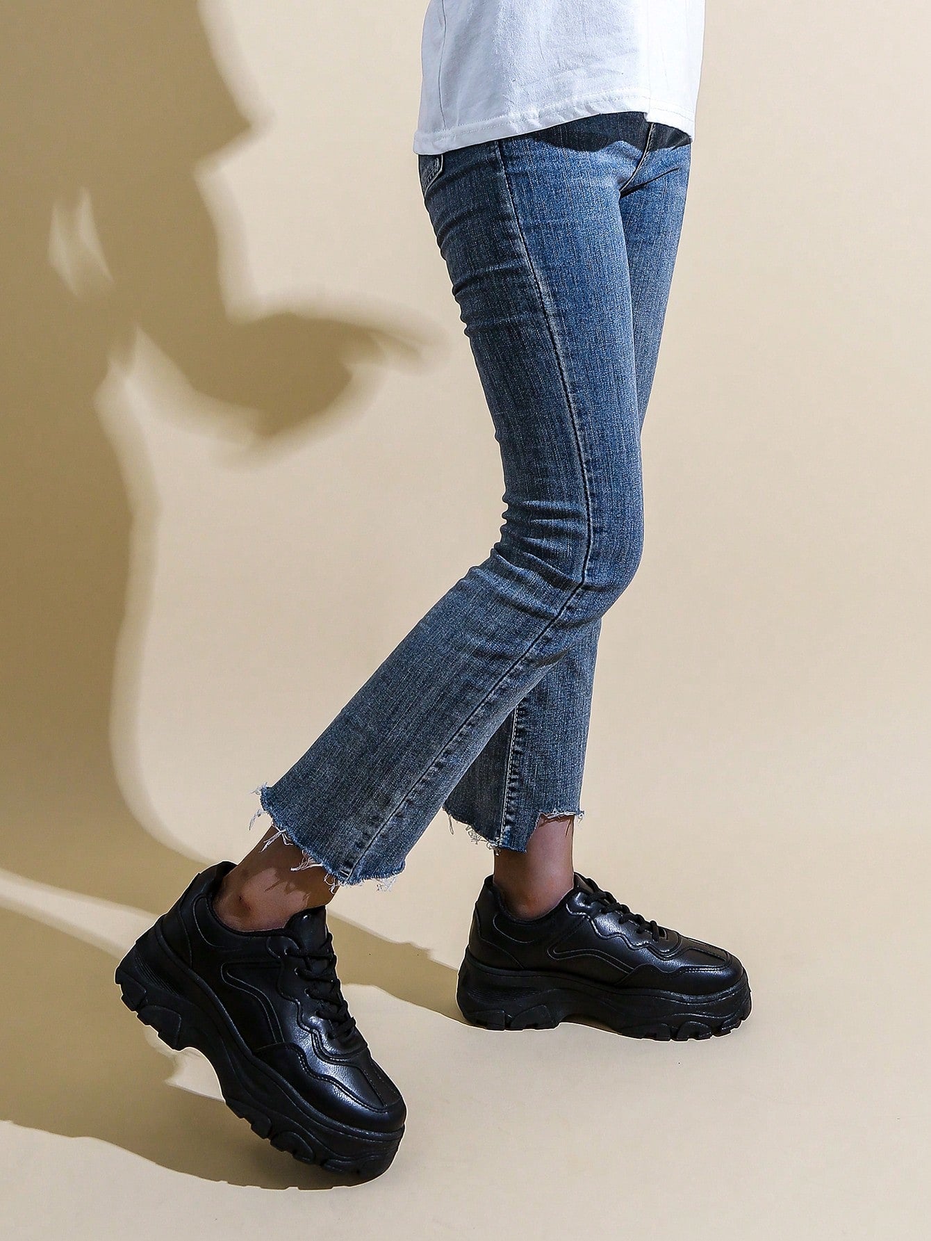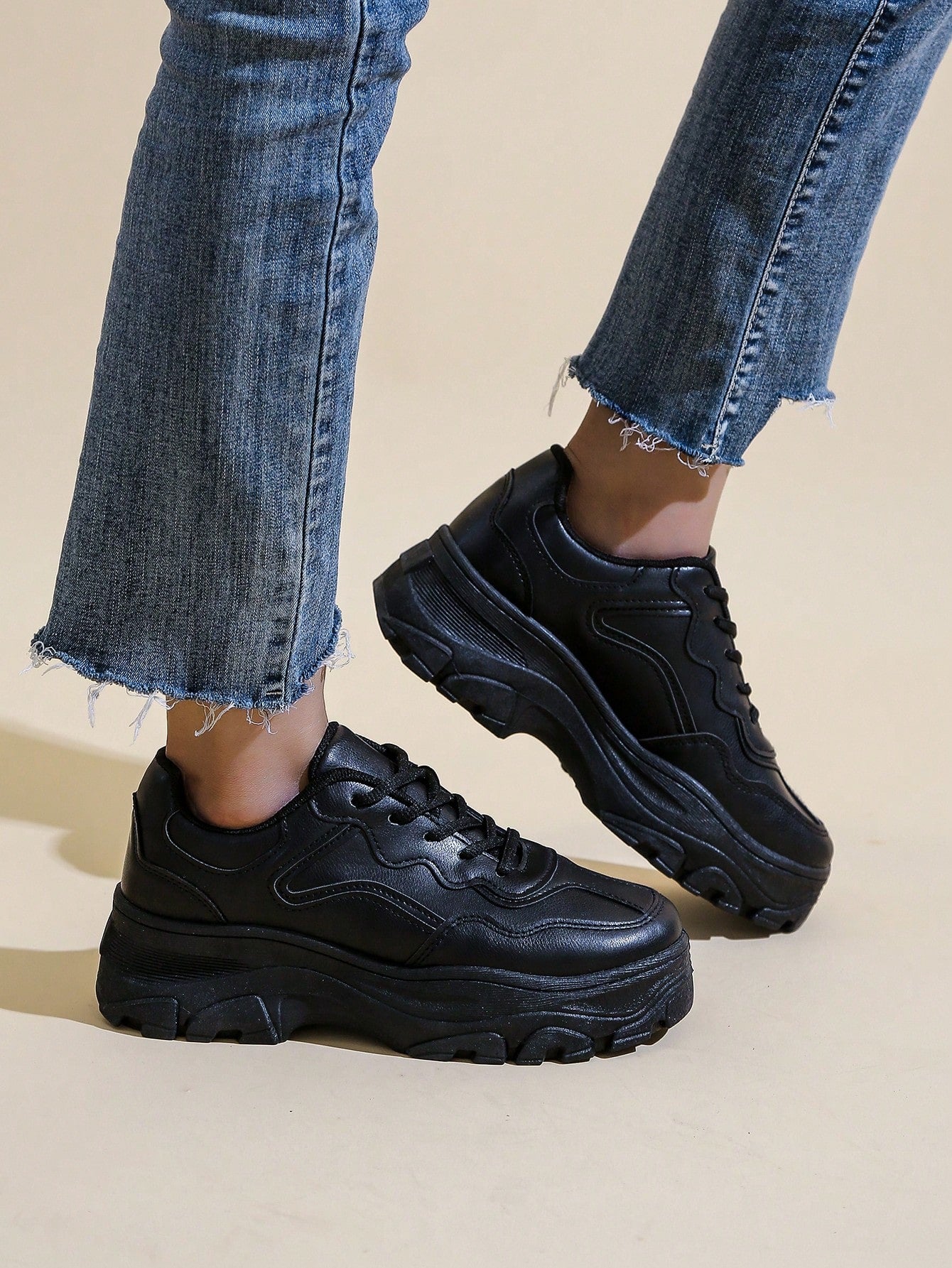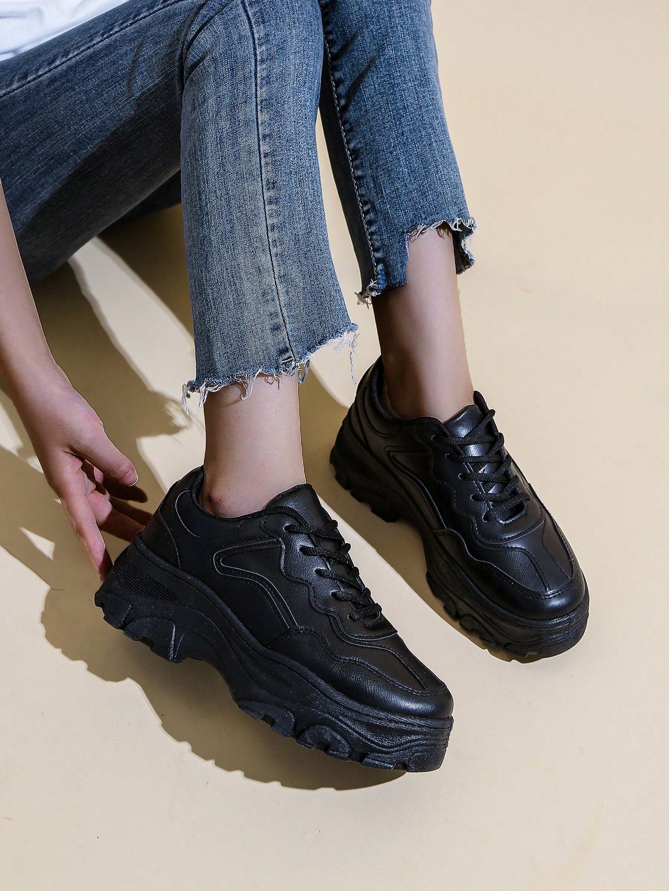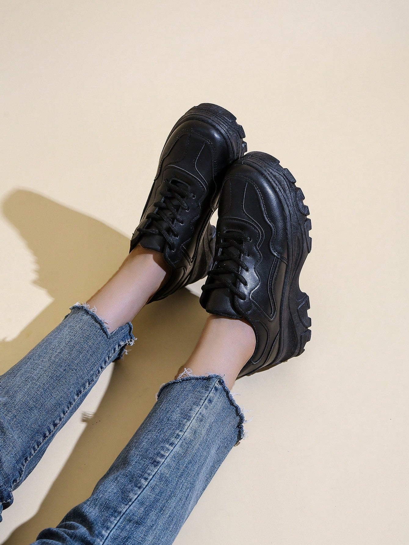 2025 Autumn Women's Thick Sole Breathable White Sneakers, Fashionable & Versatile Casual Platform Shoes,