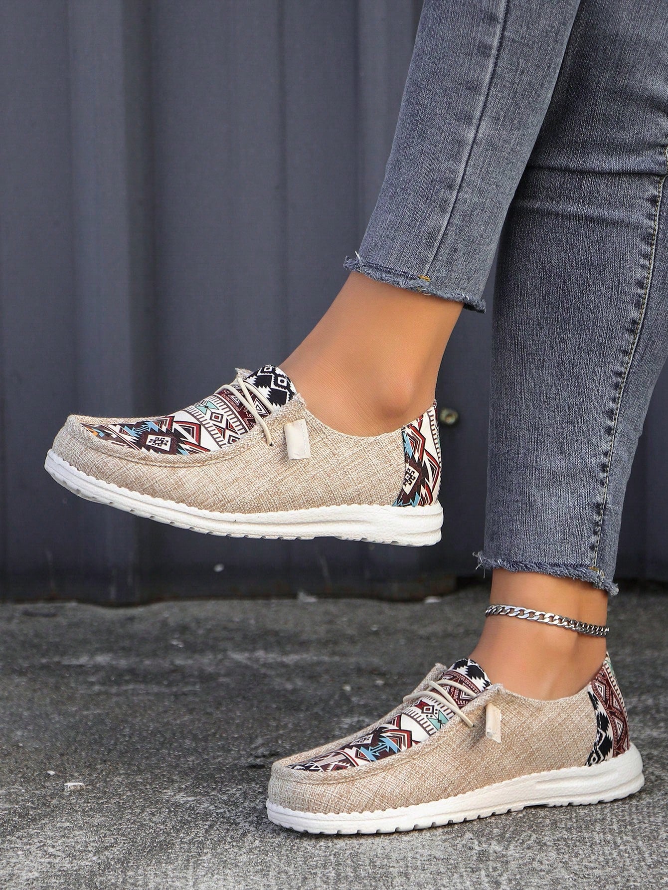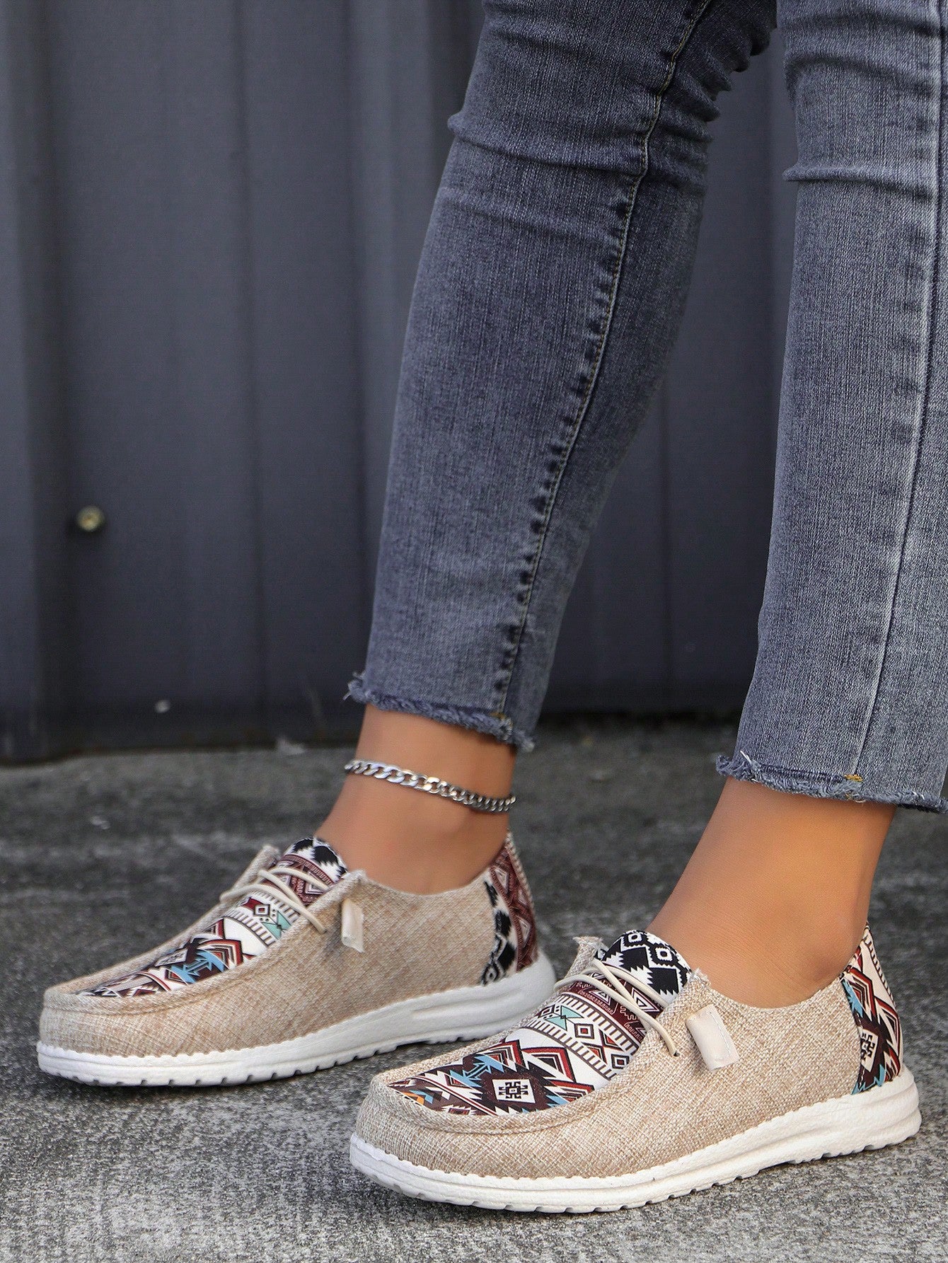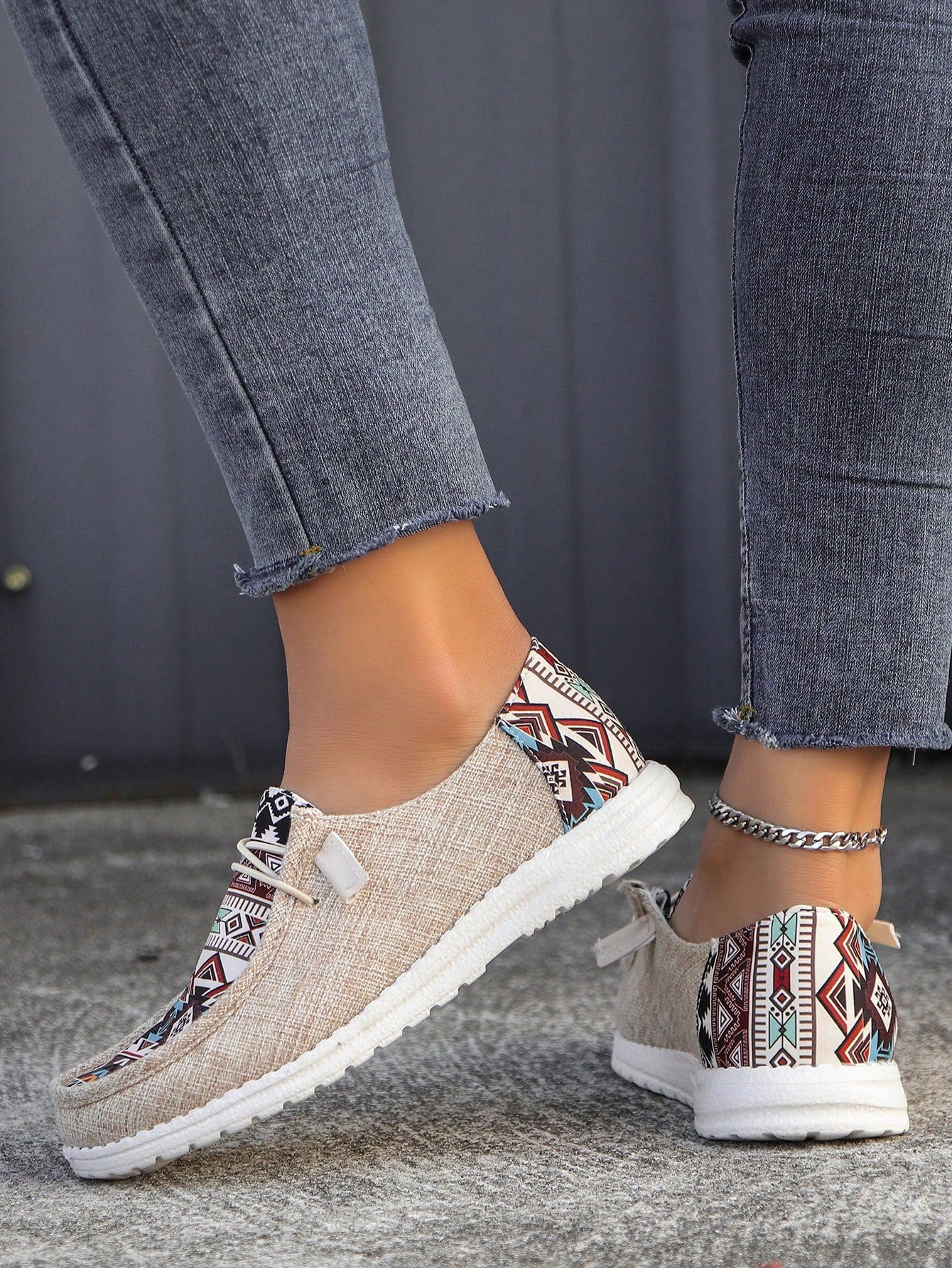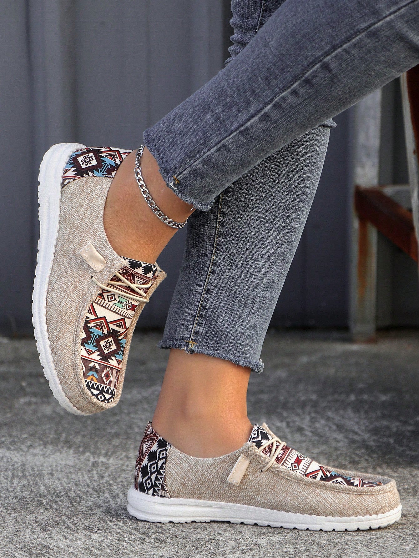 حذاء رياضي كاجوال سهل الارتداء للنساء بتصميم ريترو مع طبعة زهور