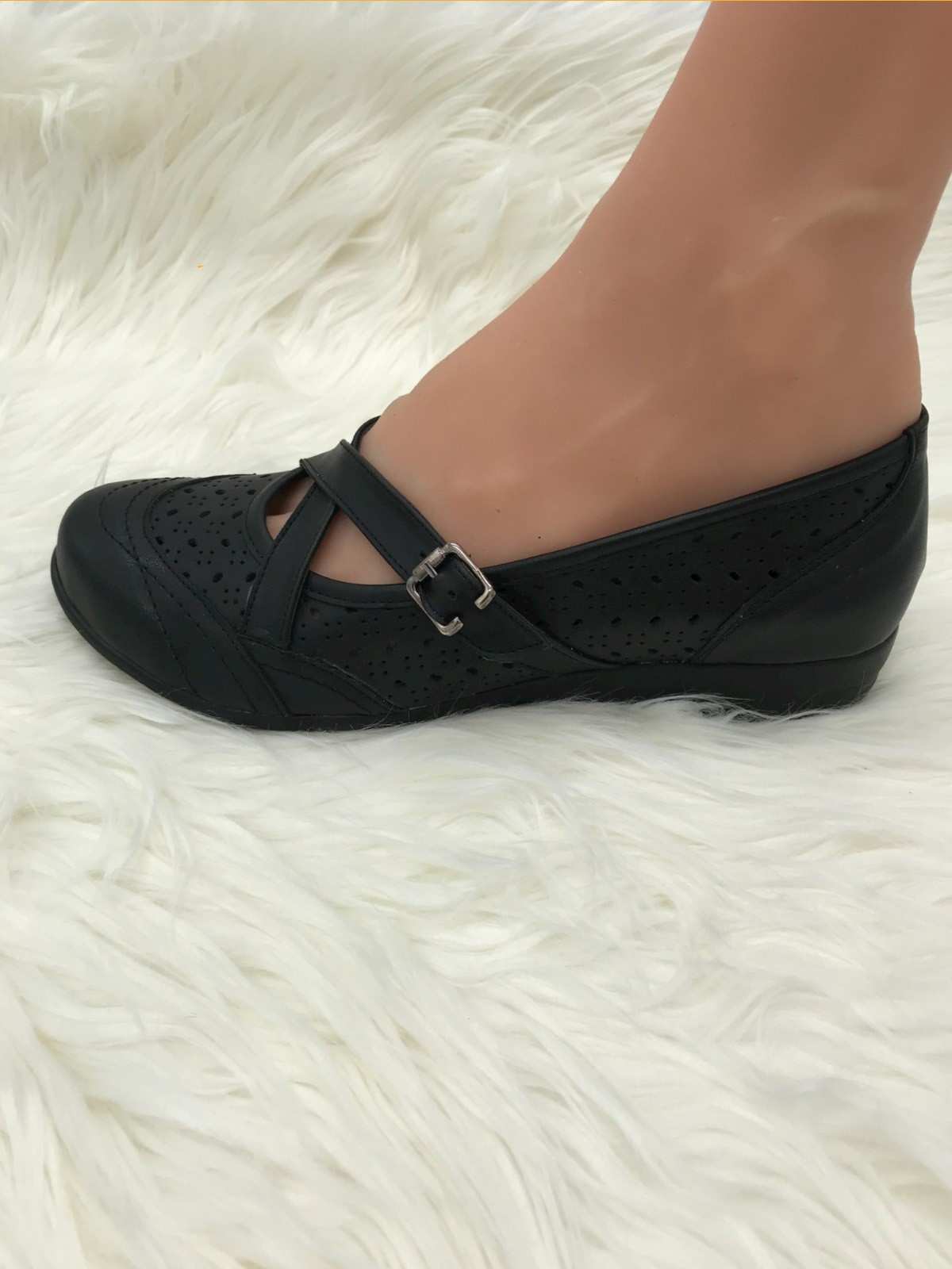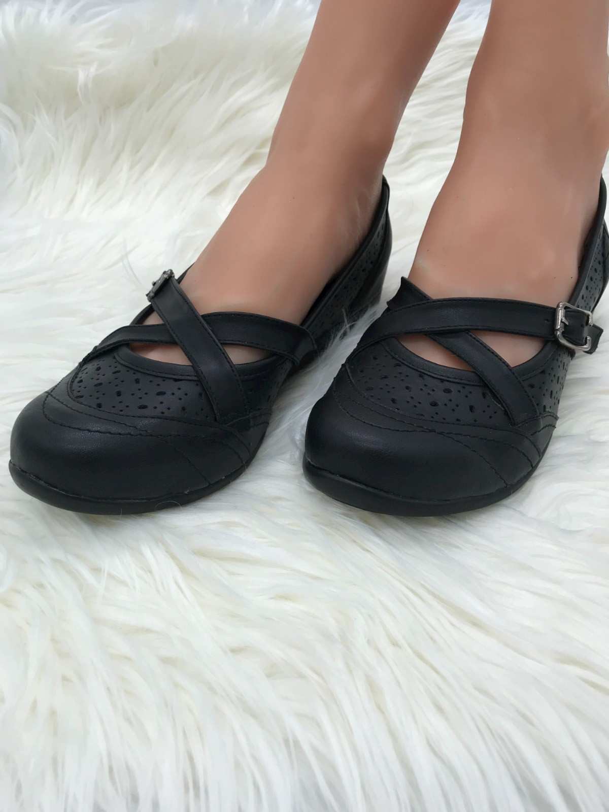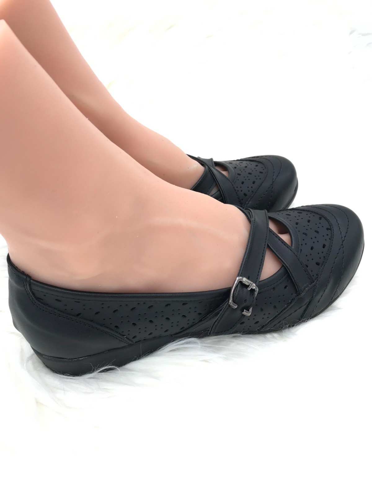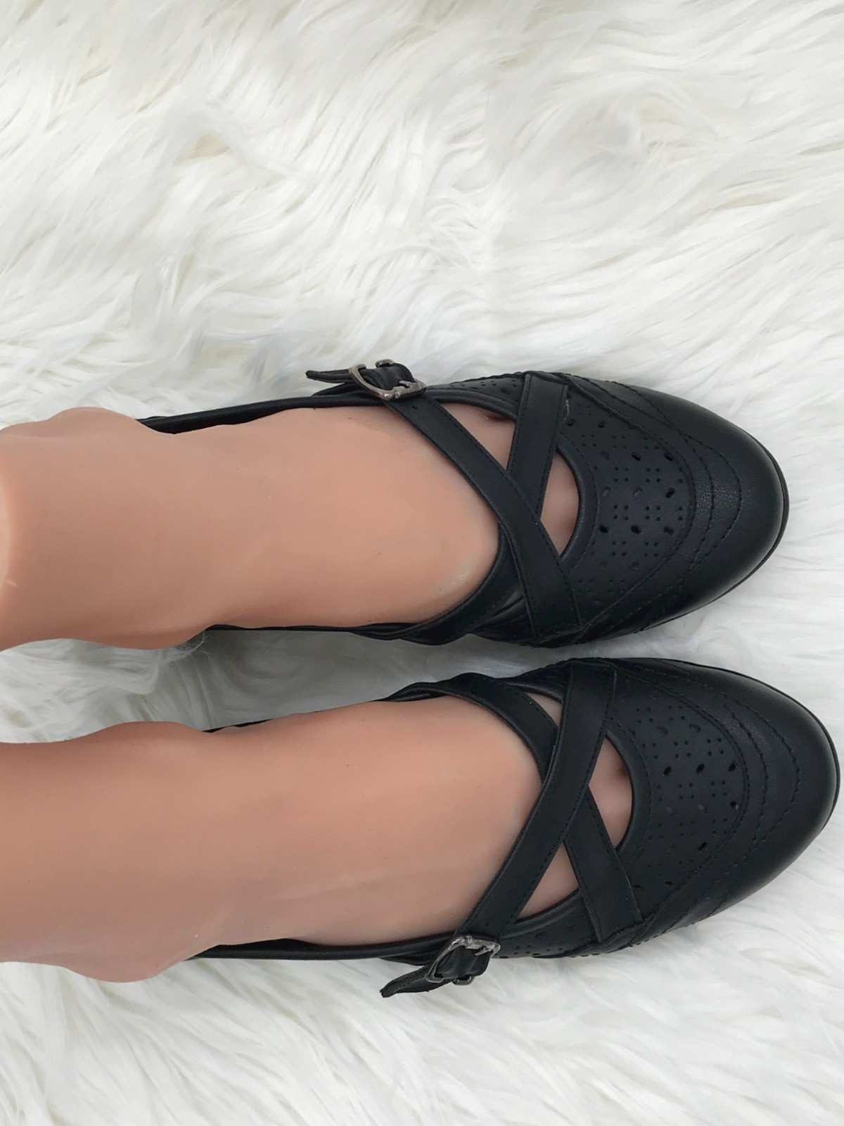حذاء نسائي أسود مريح بحزامين من الجلد، كعب طبي متوسط