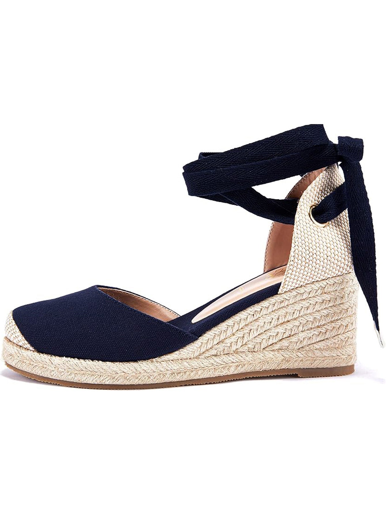 صندل إسبادريل أزرق غامق مع حزام كاحل