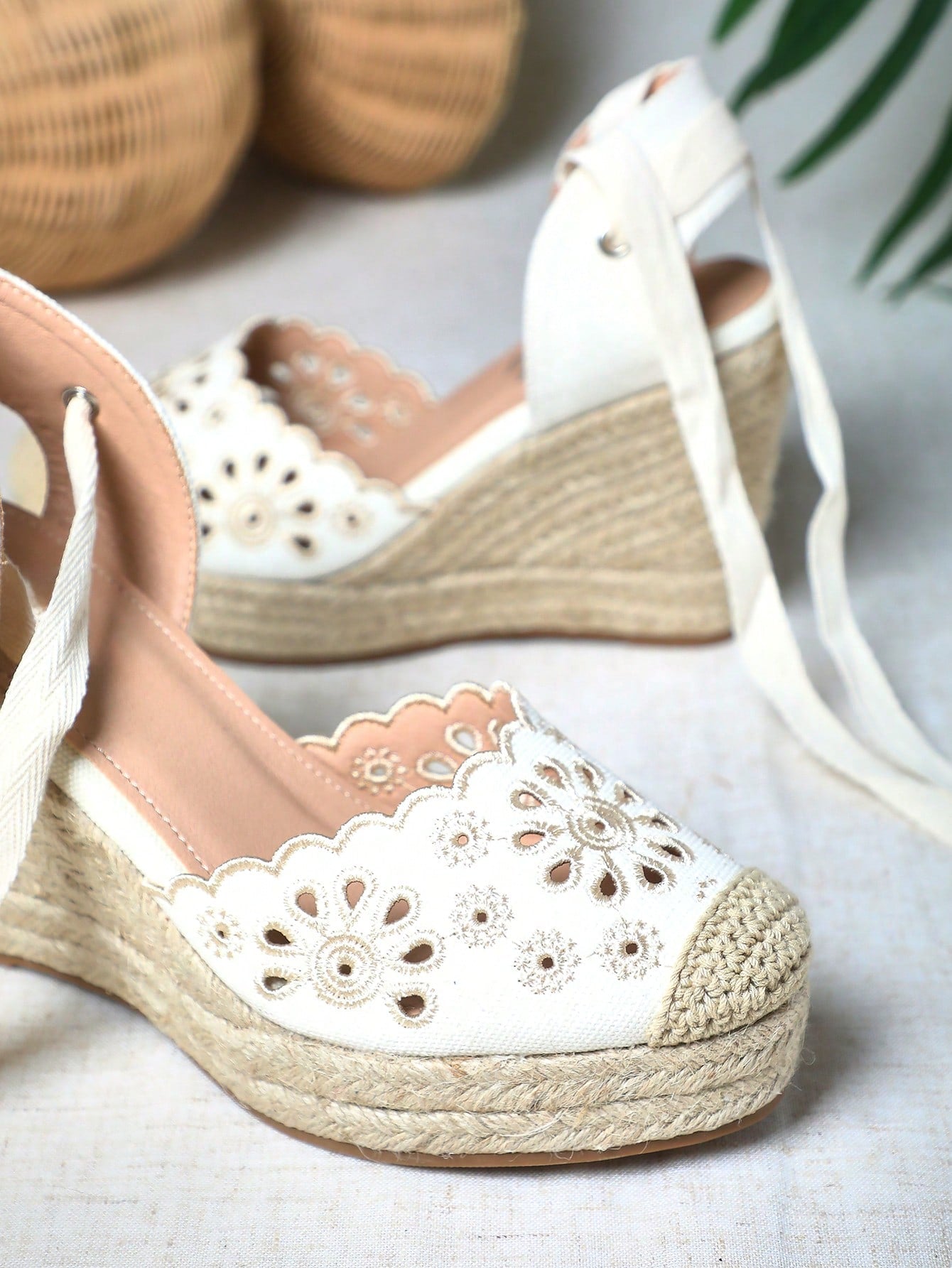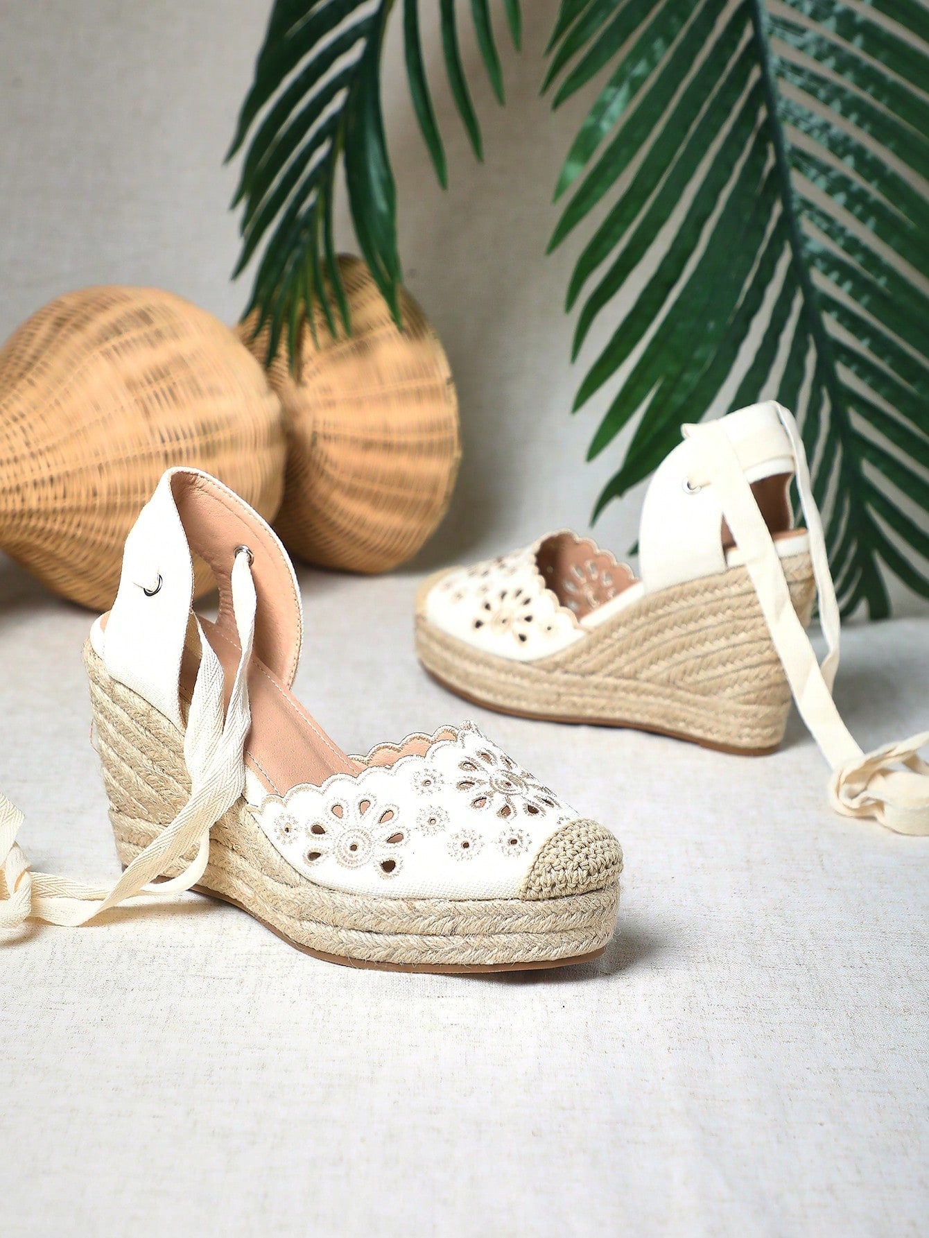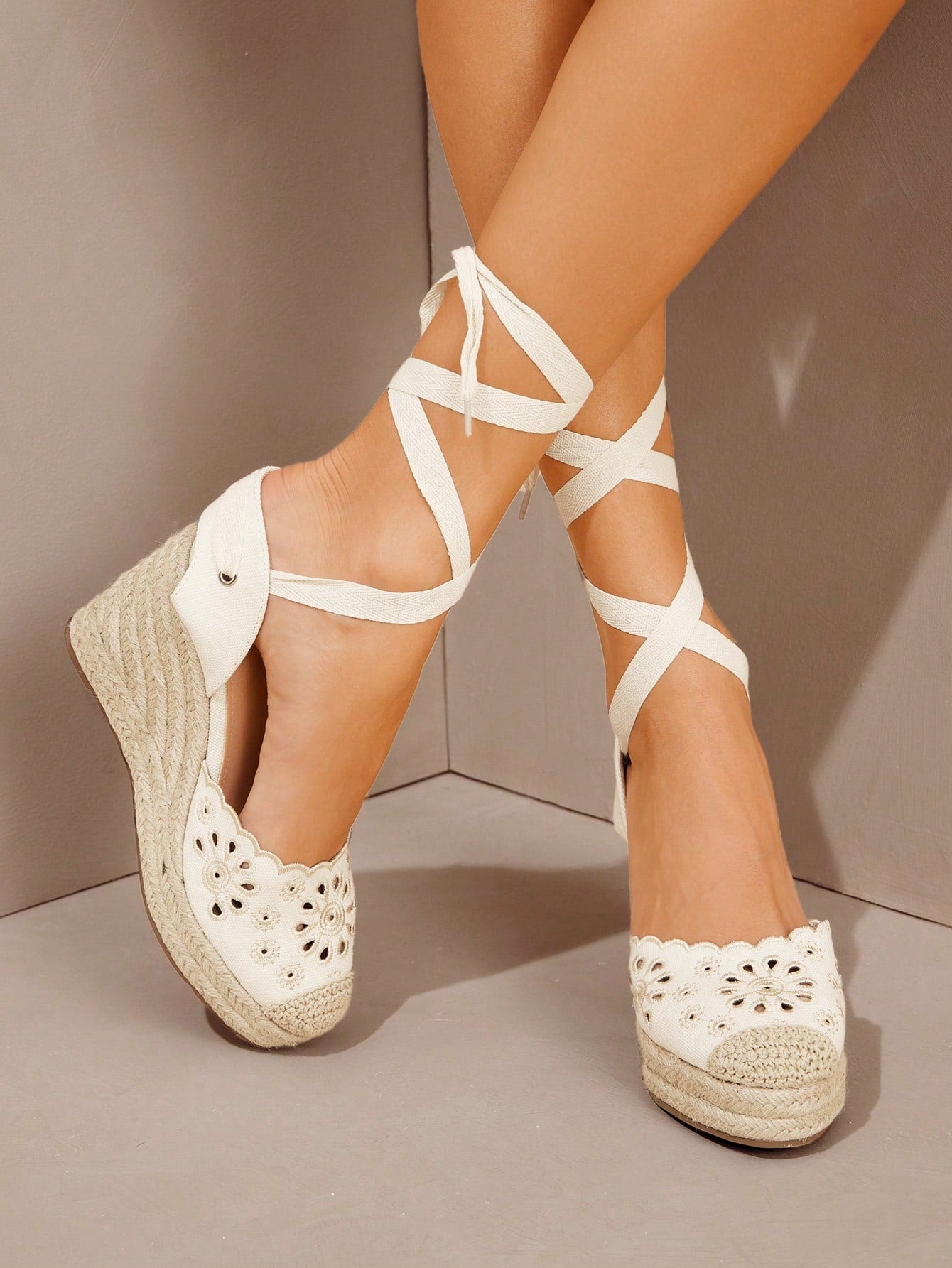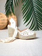 SHUZIA Boho Chic Artisanal Lace-Up Embroidered Beige Espadrilles Wedge Platform Sandals | For Music Fest