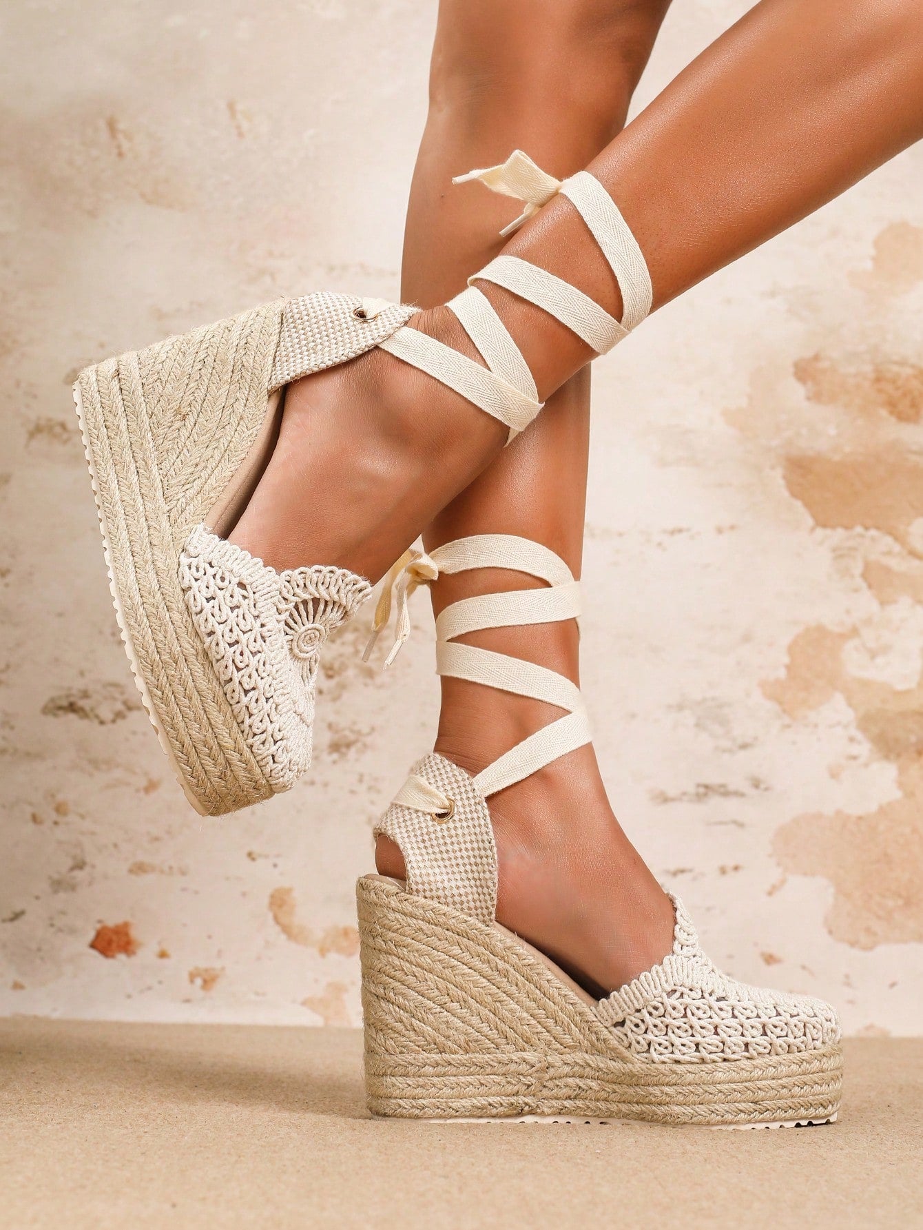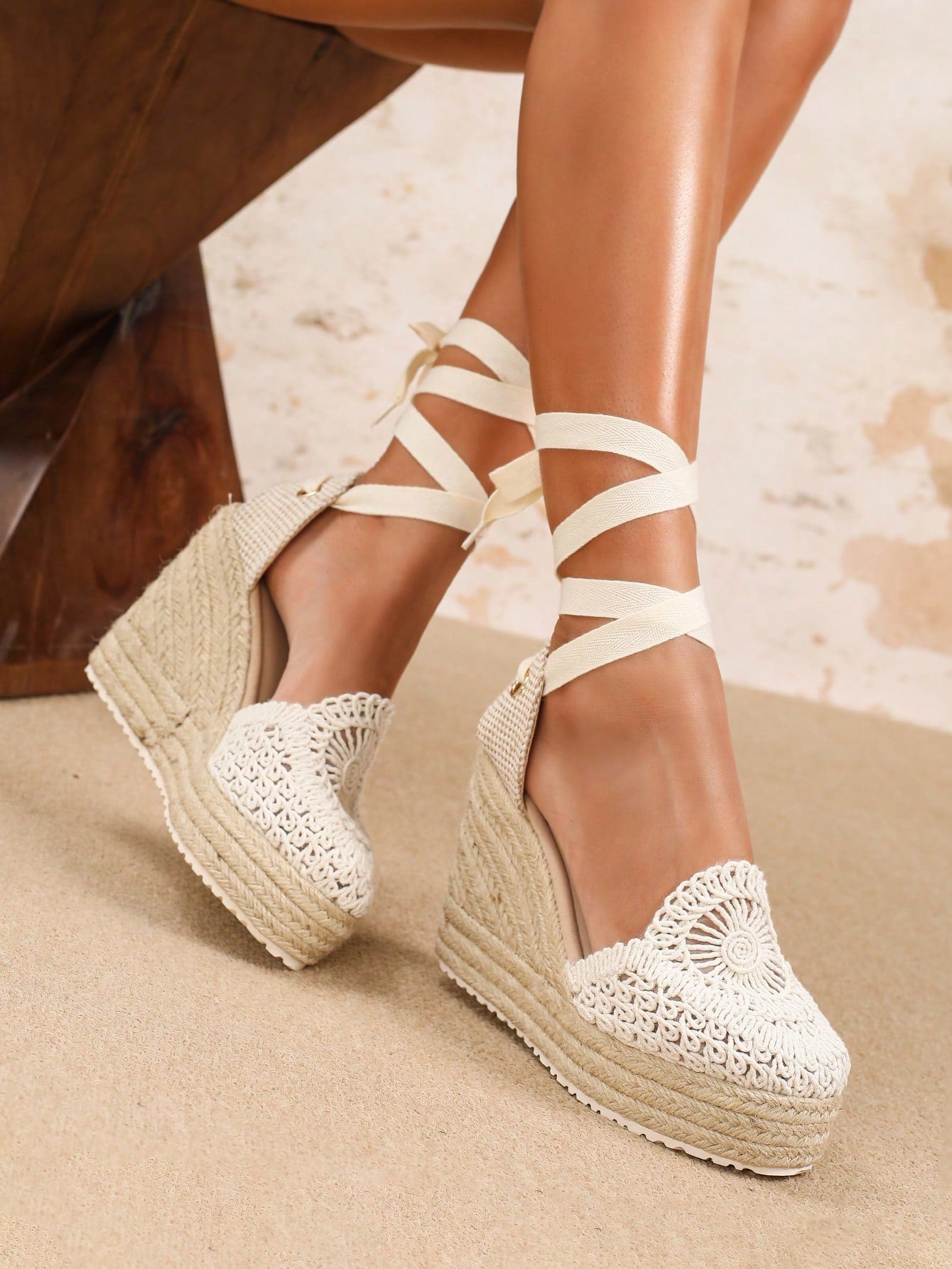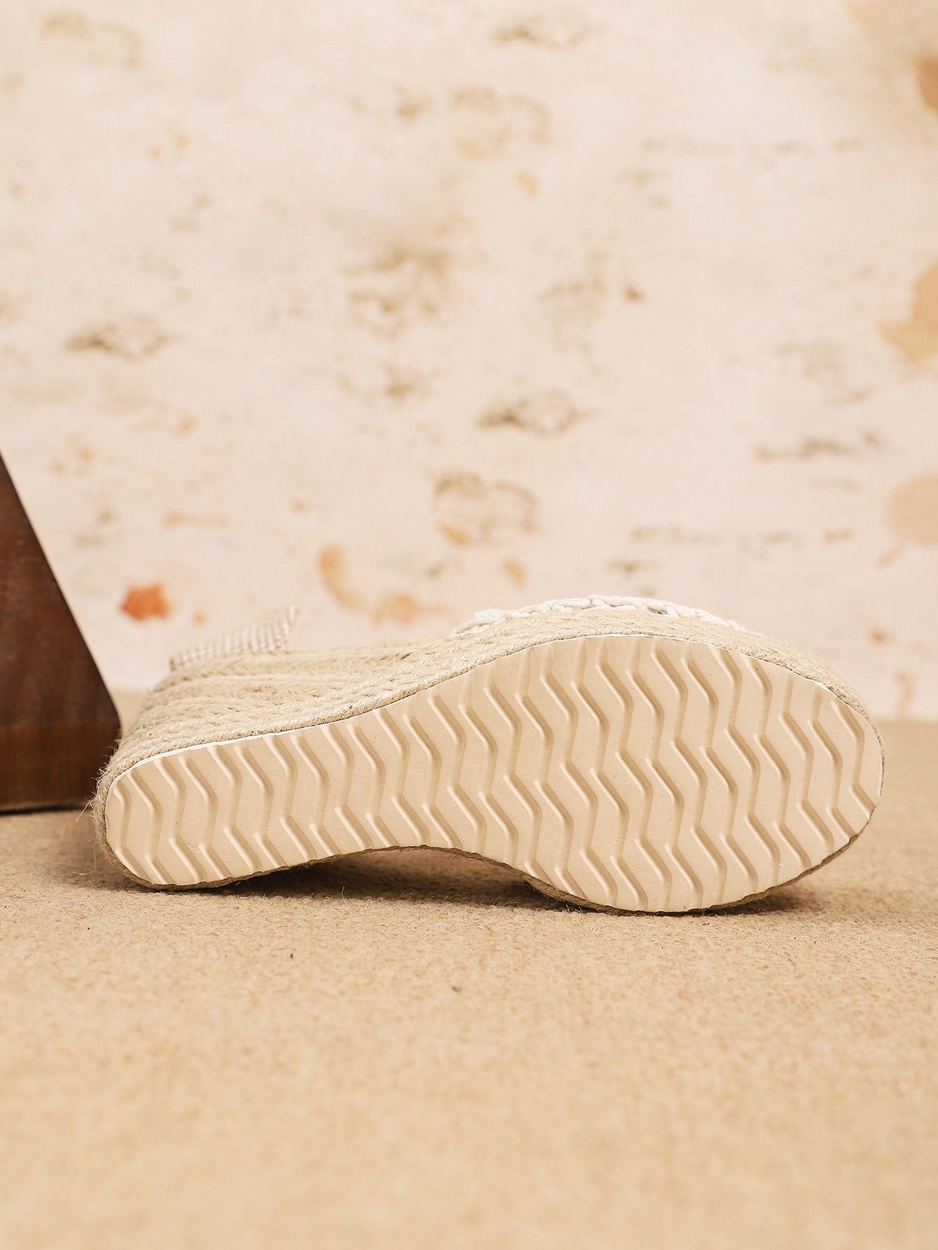women Women's Platform Wedge Heel Fashion Sandals. Woven Straw Sole Casual Elegant Ladies Flats. White