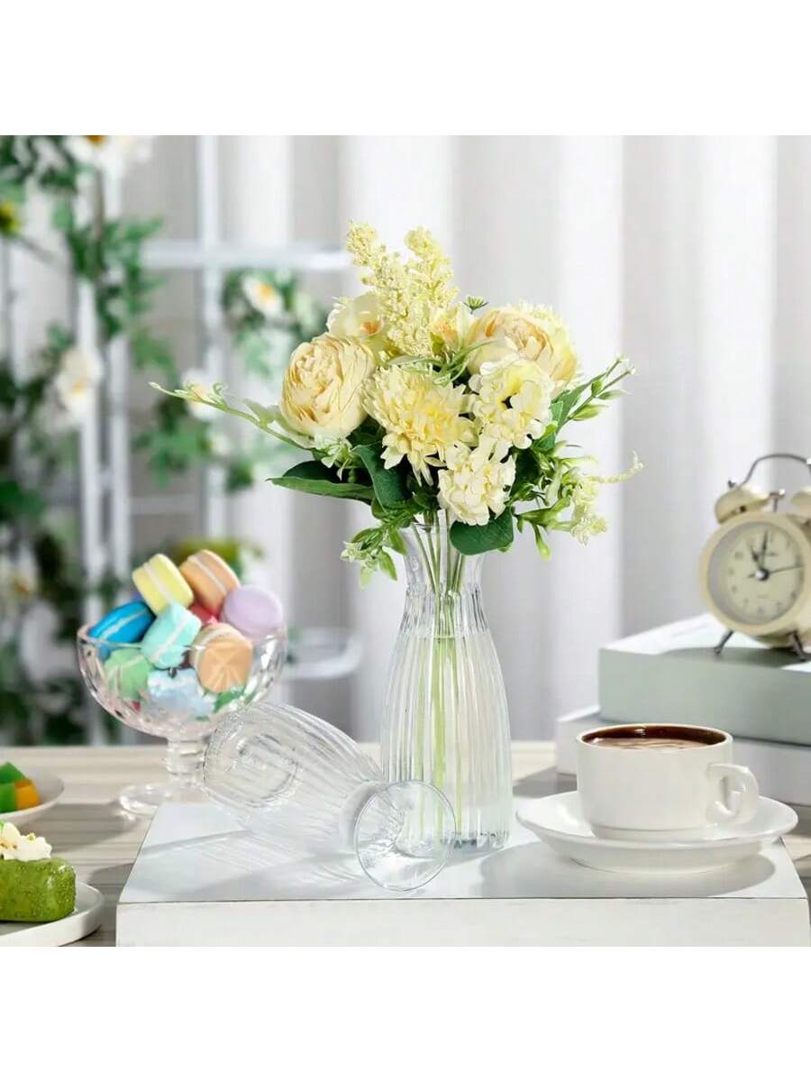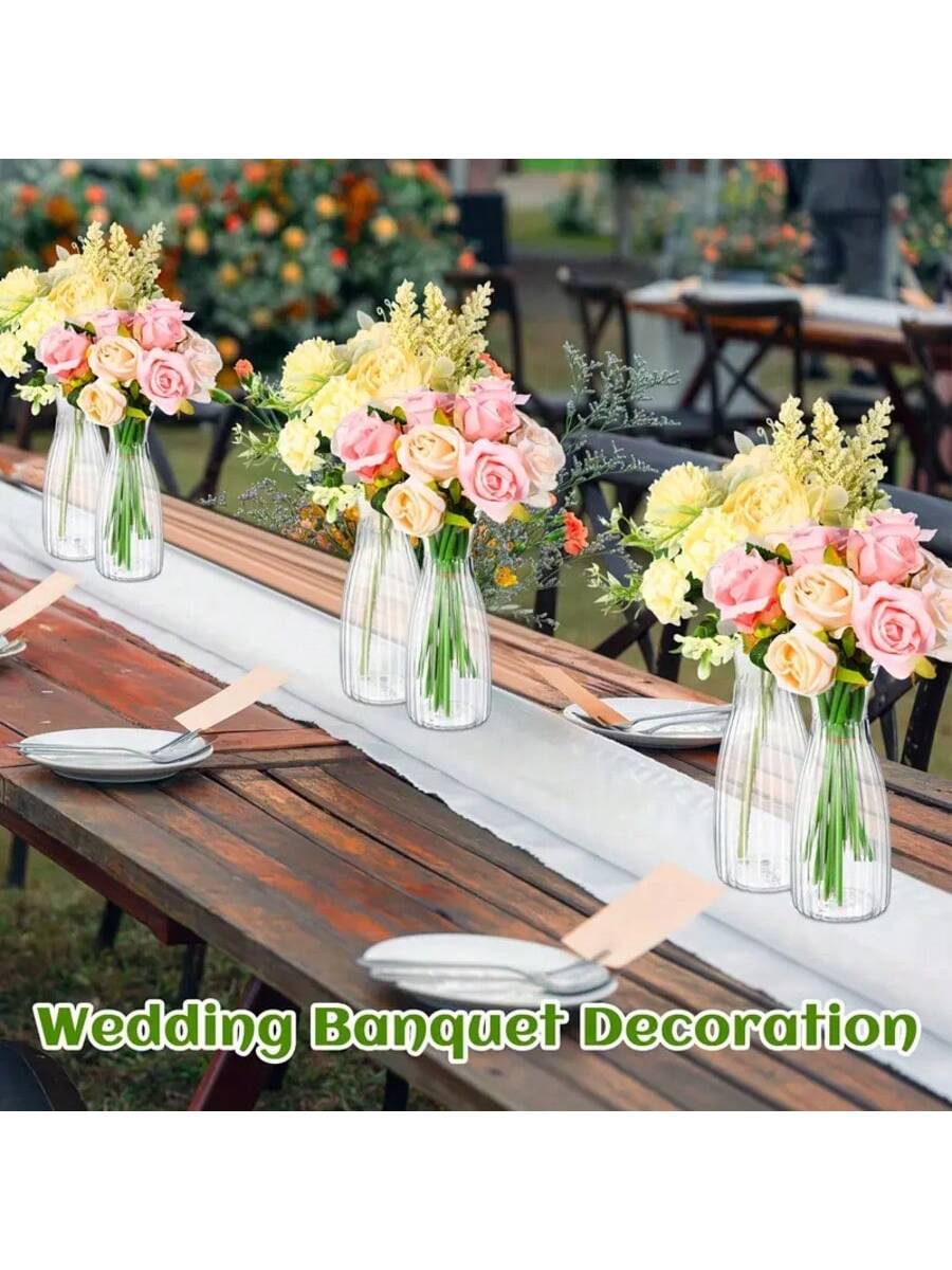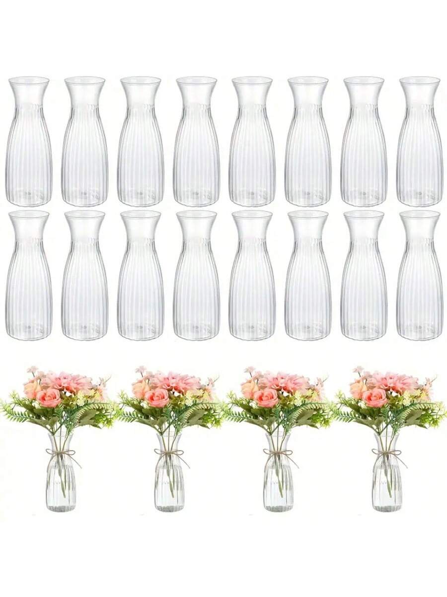 مجموعة مزهريات بلاستيكية مخططة 1/5/8/10 قطع - مزهريات شفافة بتصميم زهور، مناسبة لتزيين باقات الزهور المختلفة