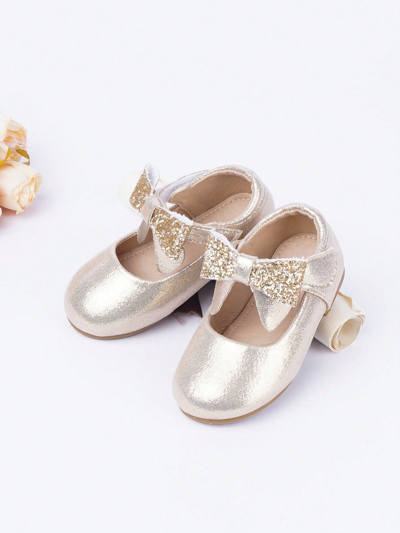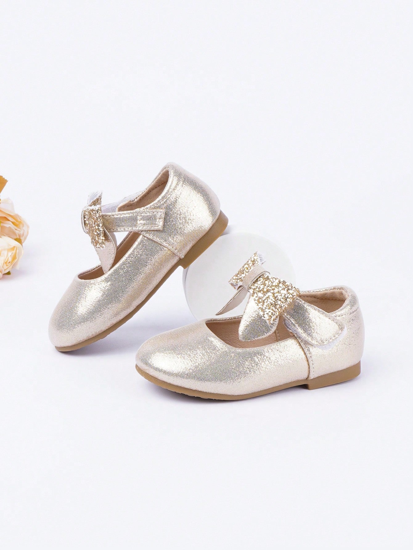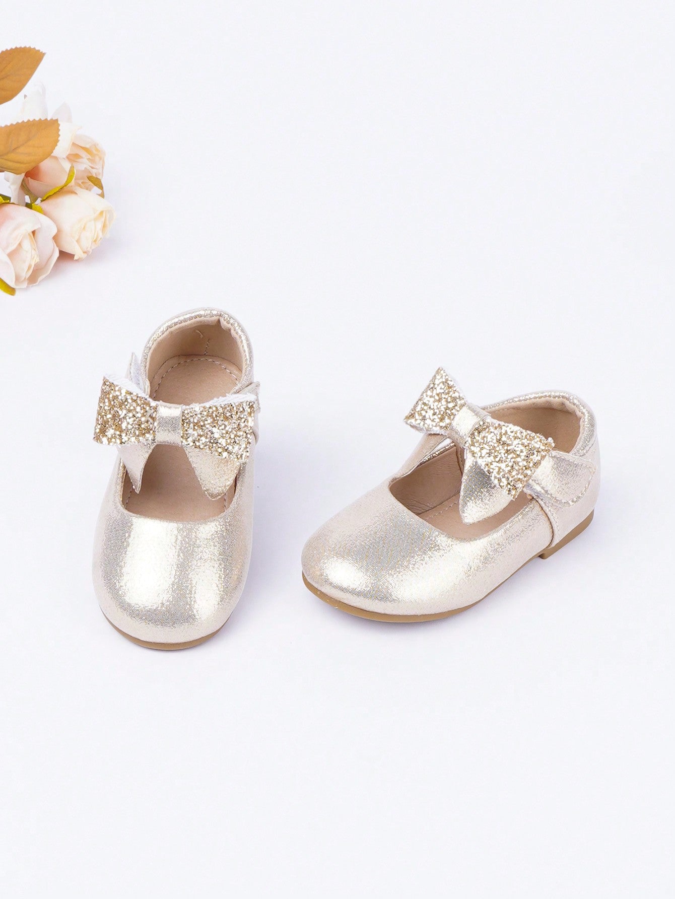 kids 1 Pair Baby Girl Metal Bow Hook And Loop Flat Shoes