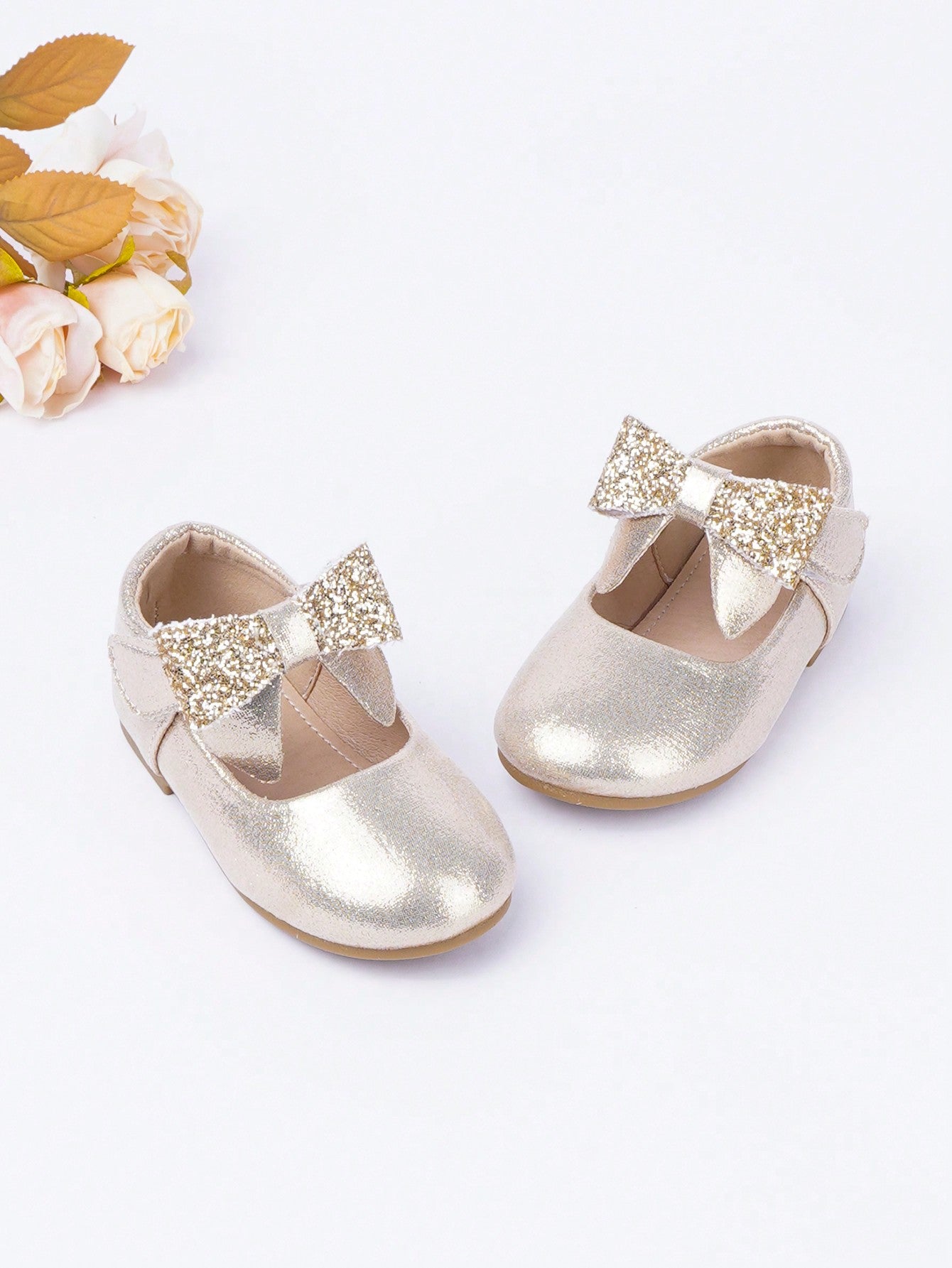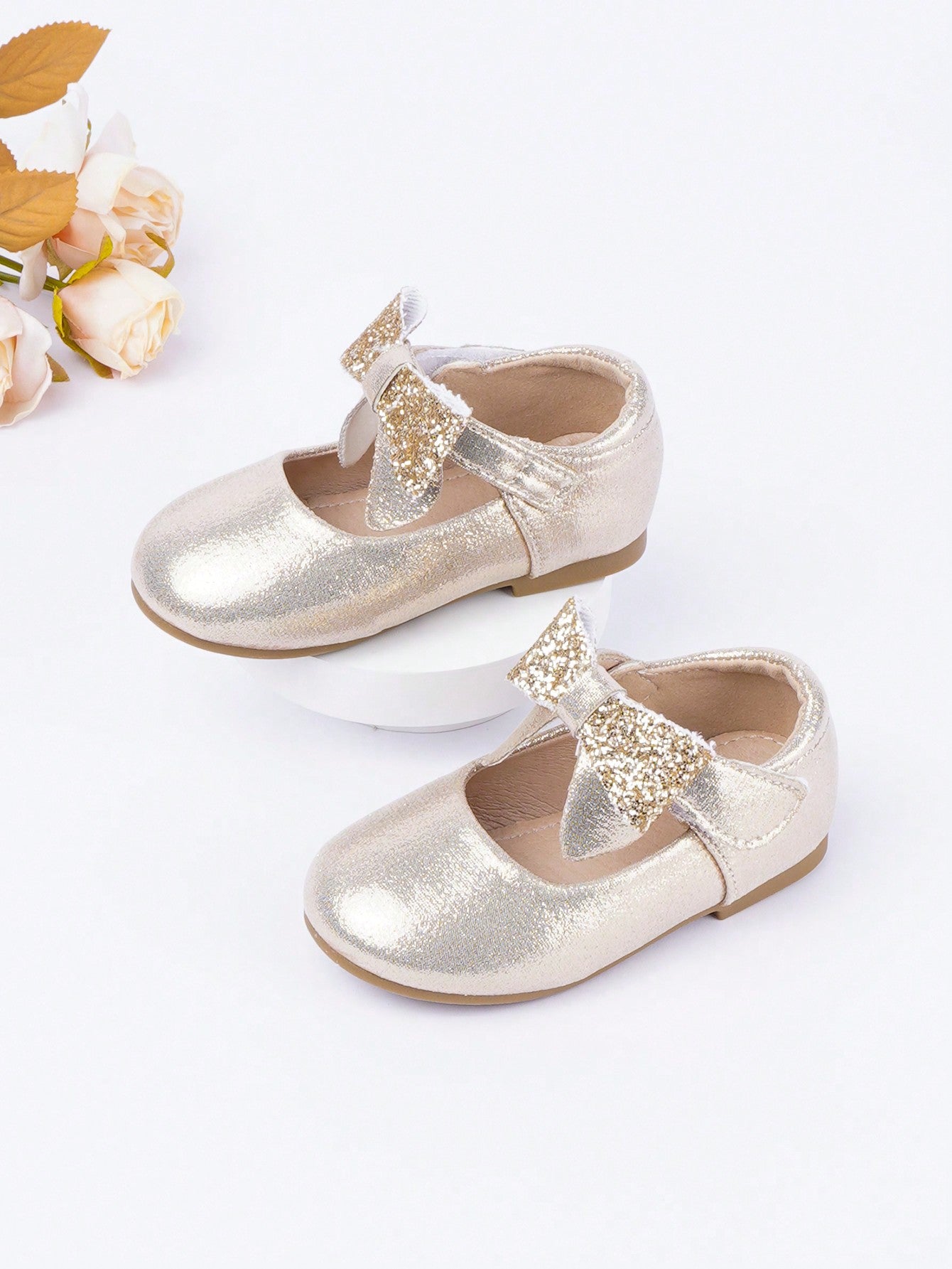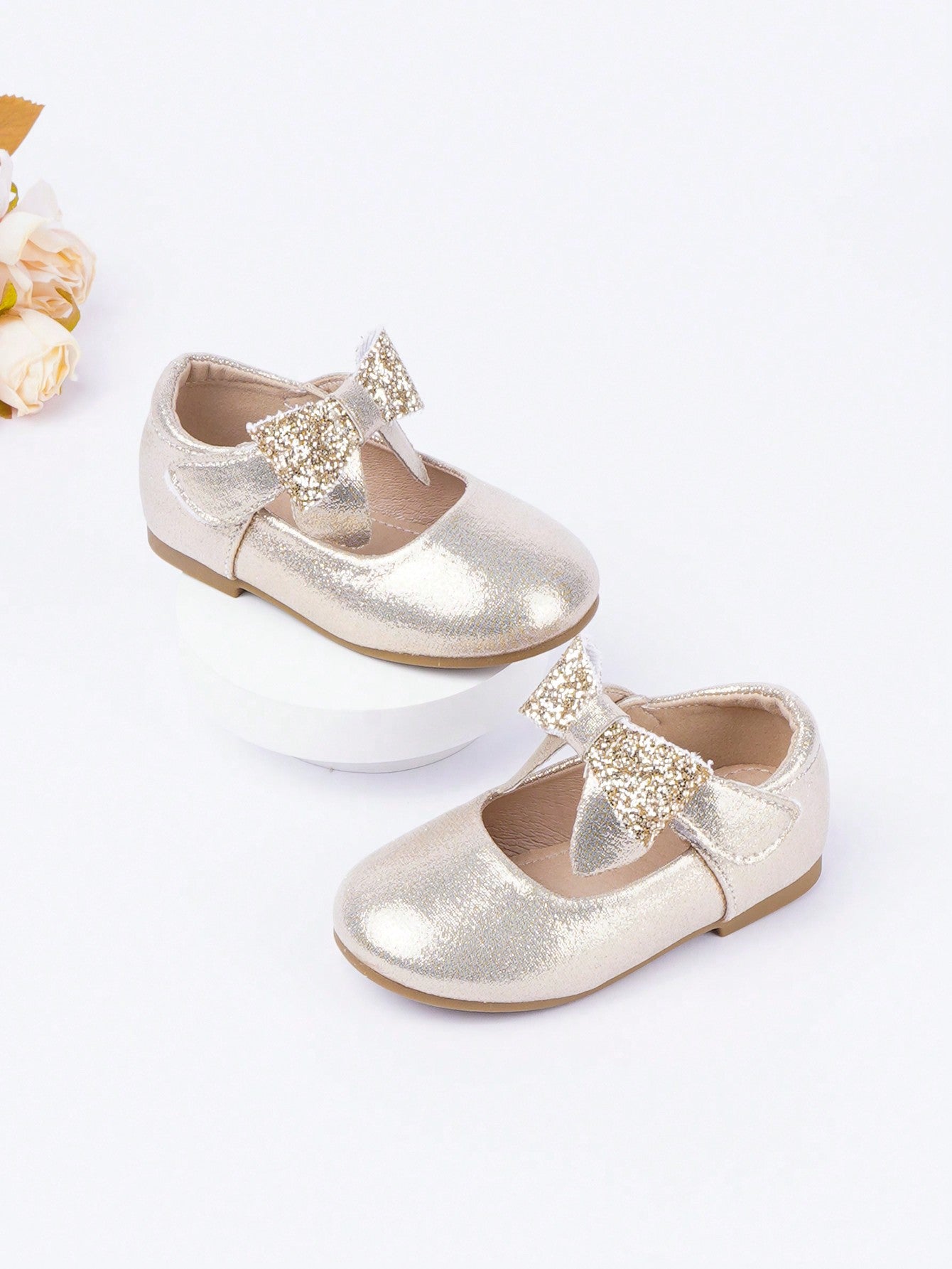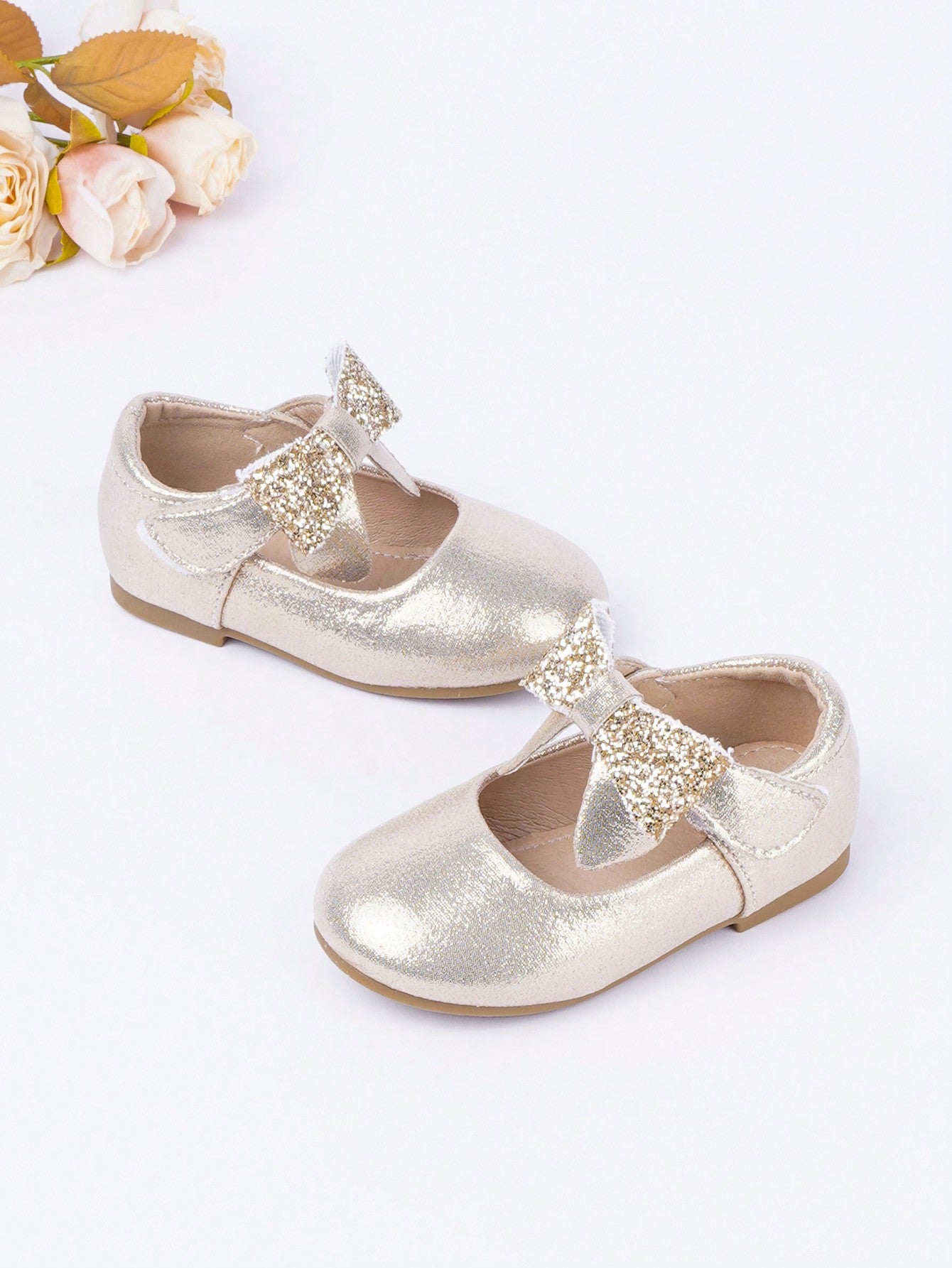 kids 1 Pair Baby Girl Metal Bow Hook And Loop Flat Shoes