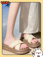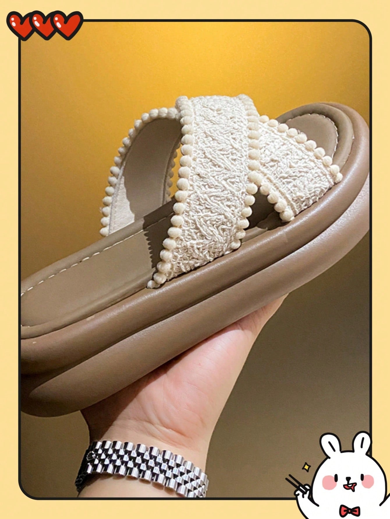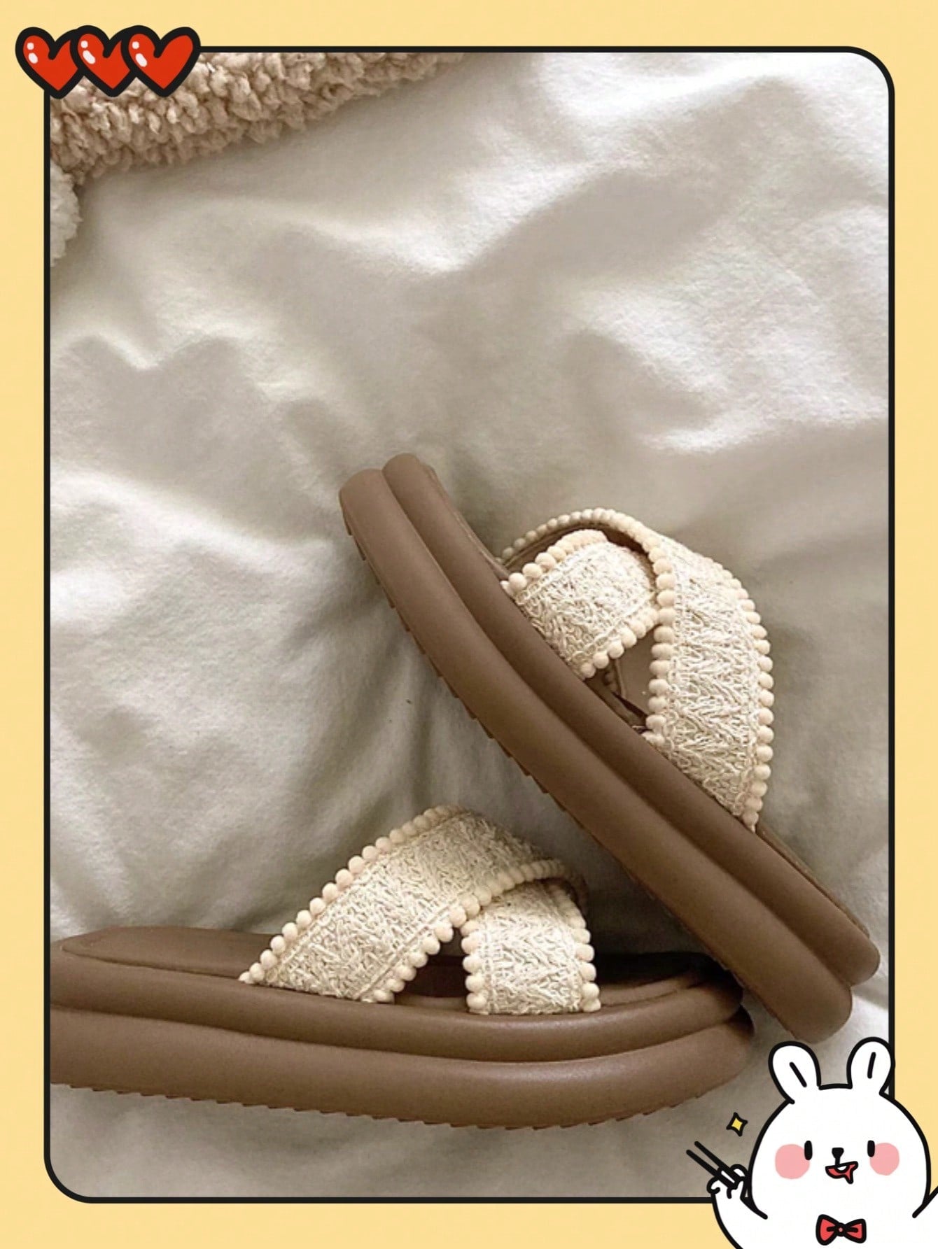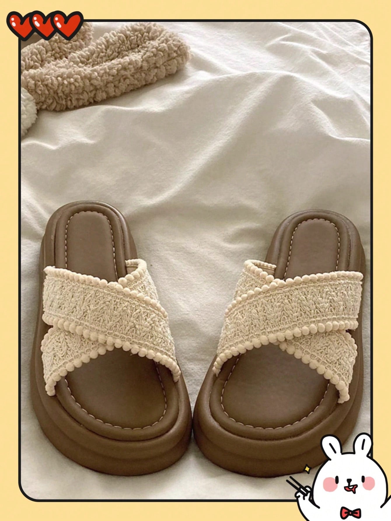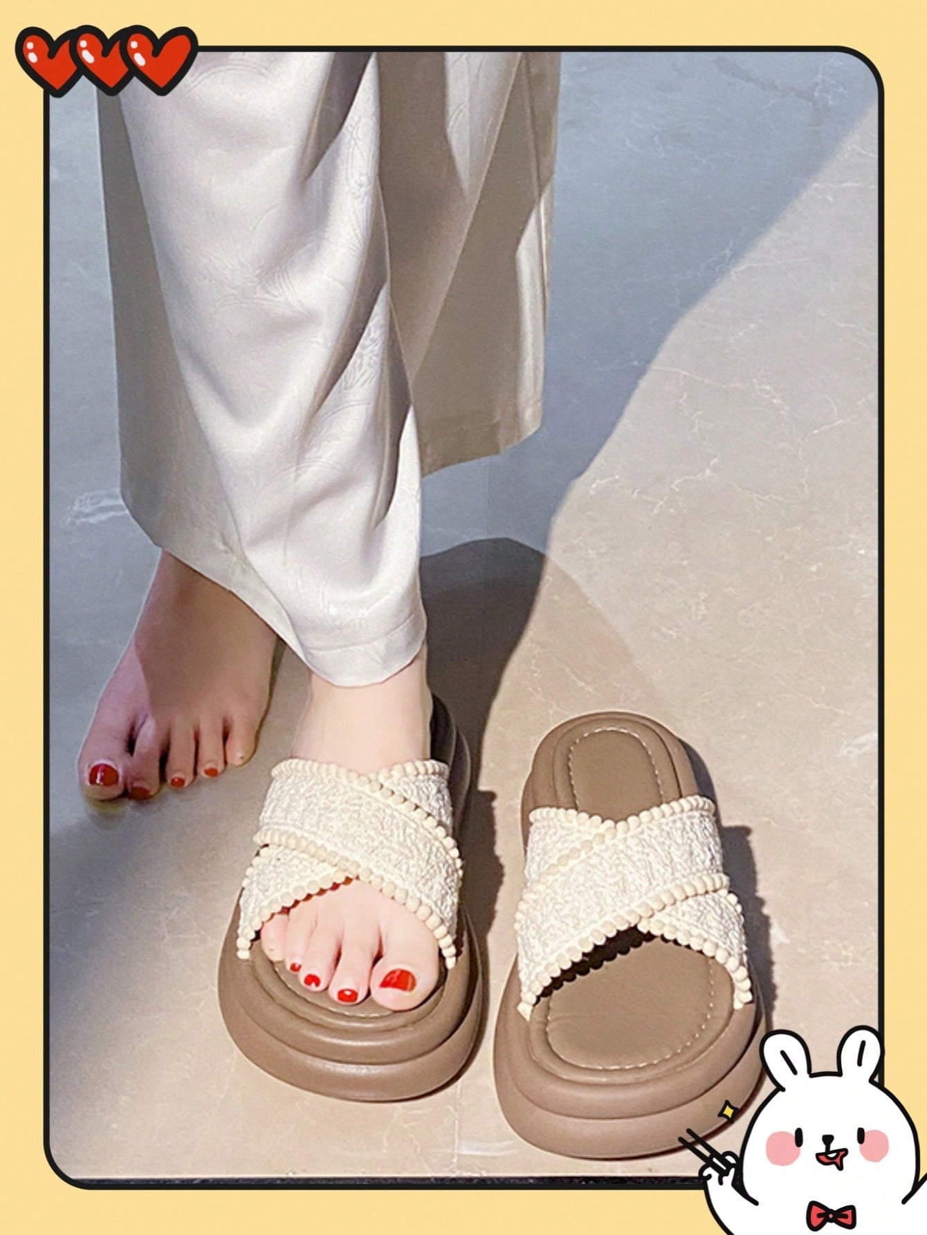 women 1 Pair Beige 4cm Platform Slip-On Sandals For Women Size 35-40