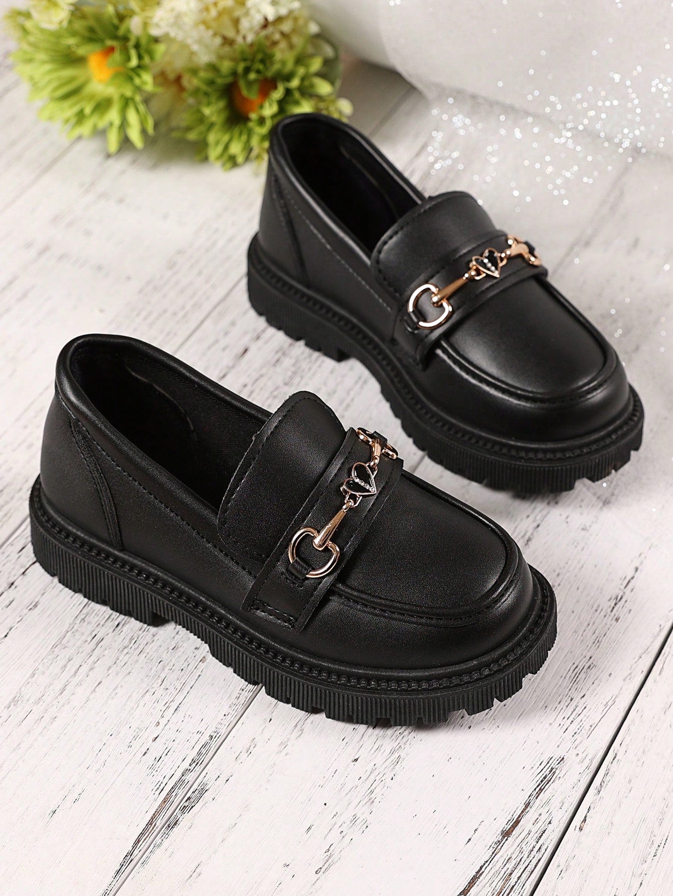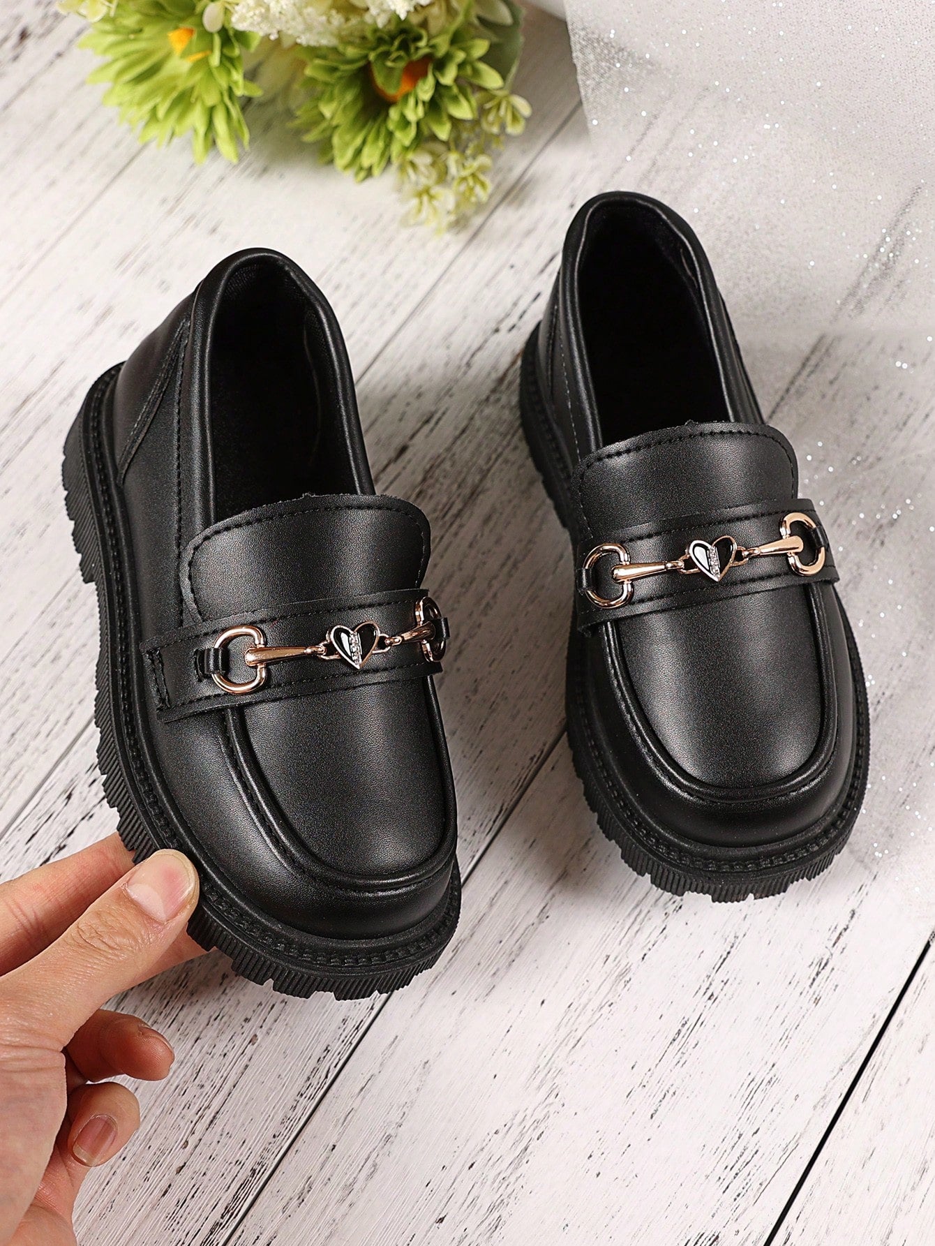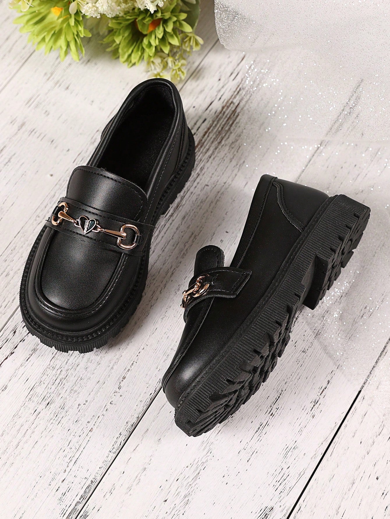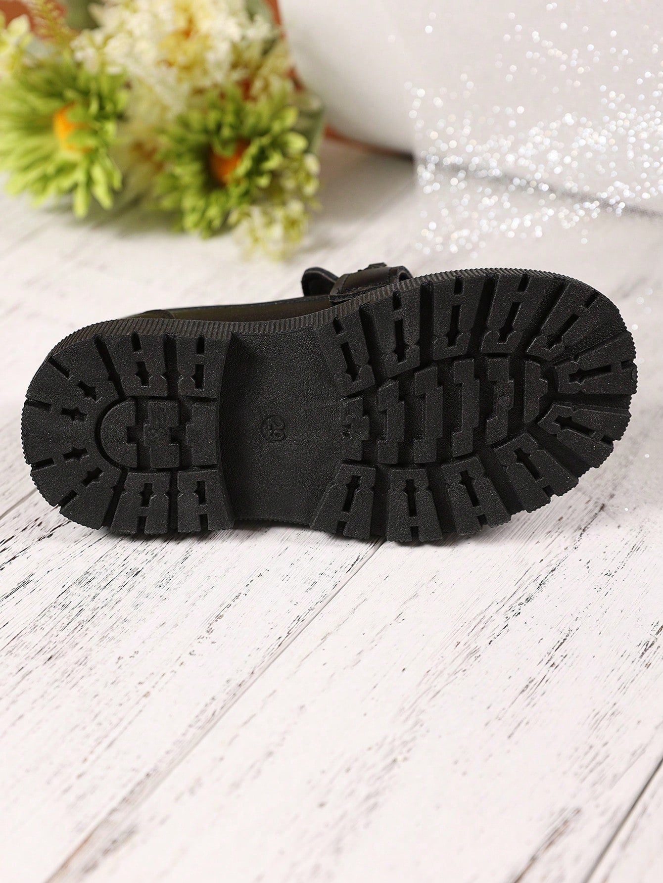 زوج واحد من الأحذية الجلدية السوداء ذات المقاسات الكبيرة للبنات الصغيرات