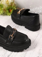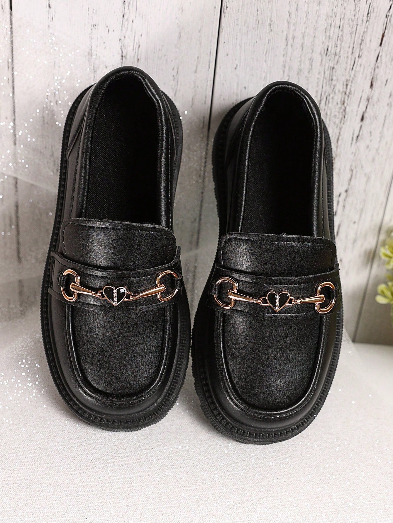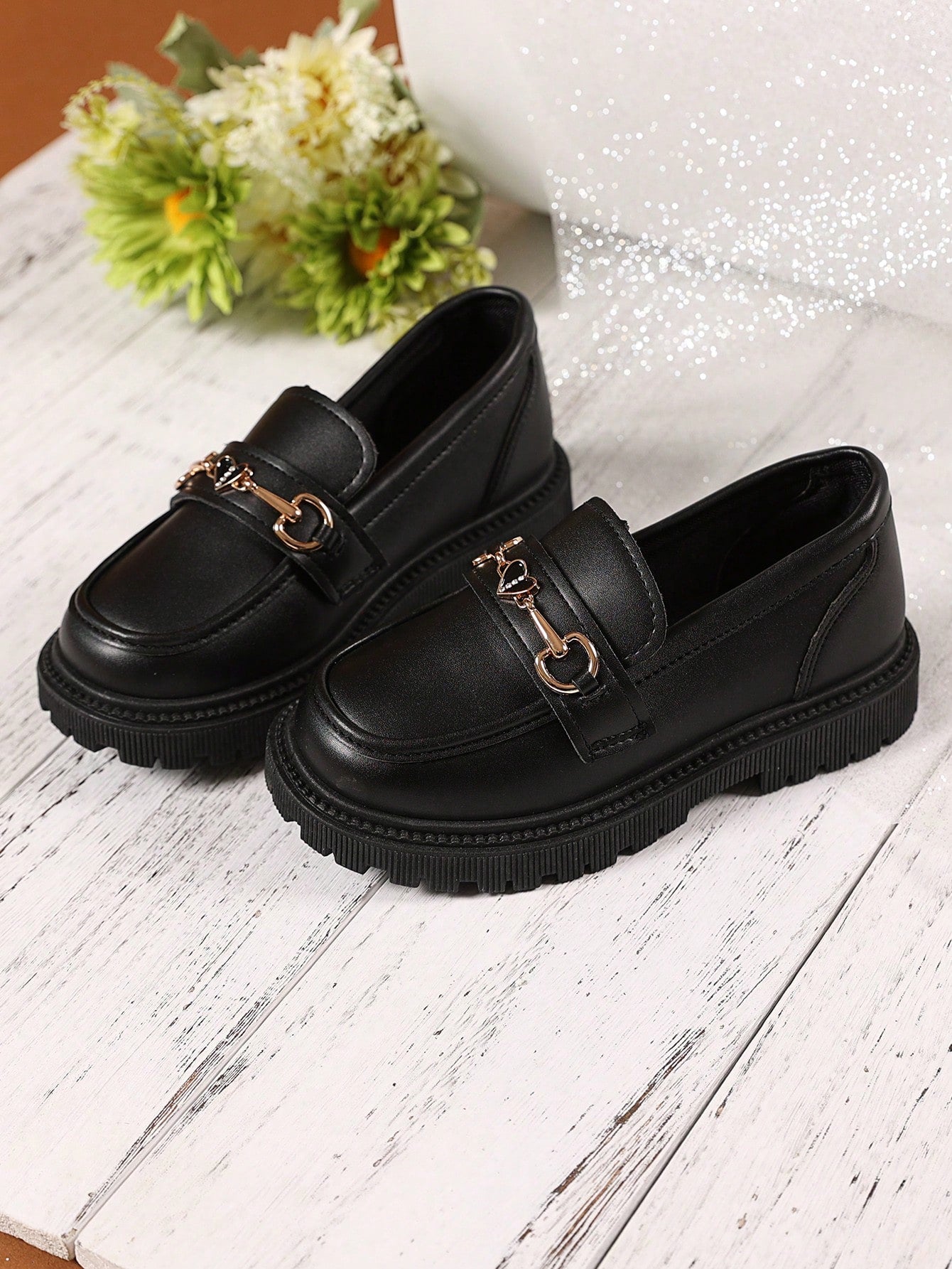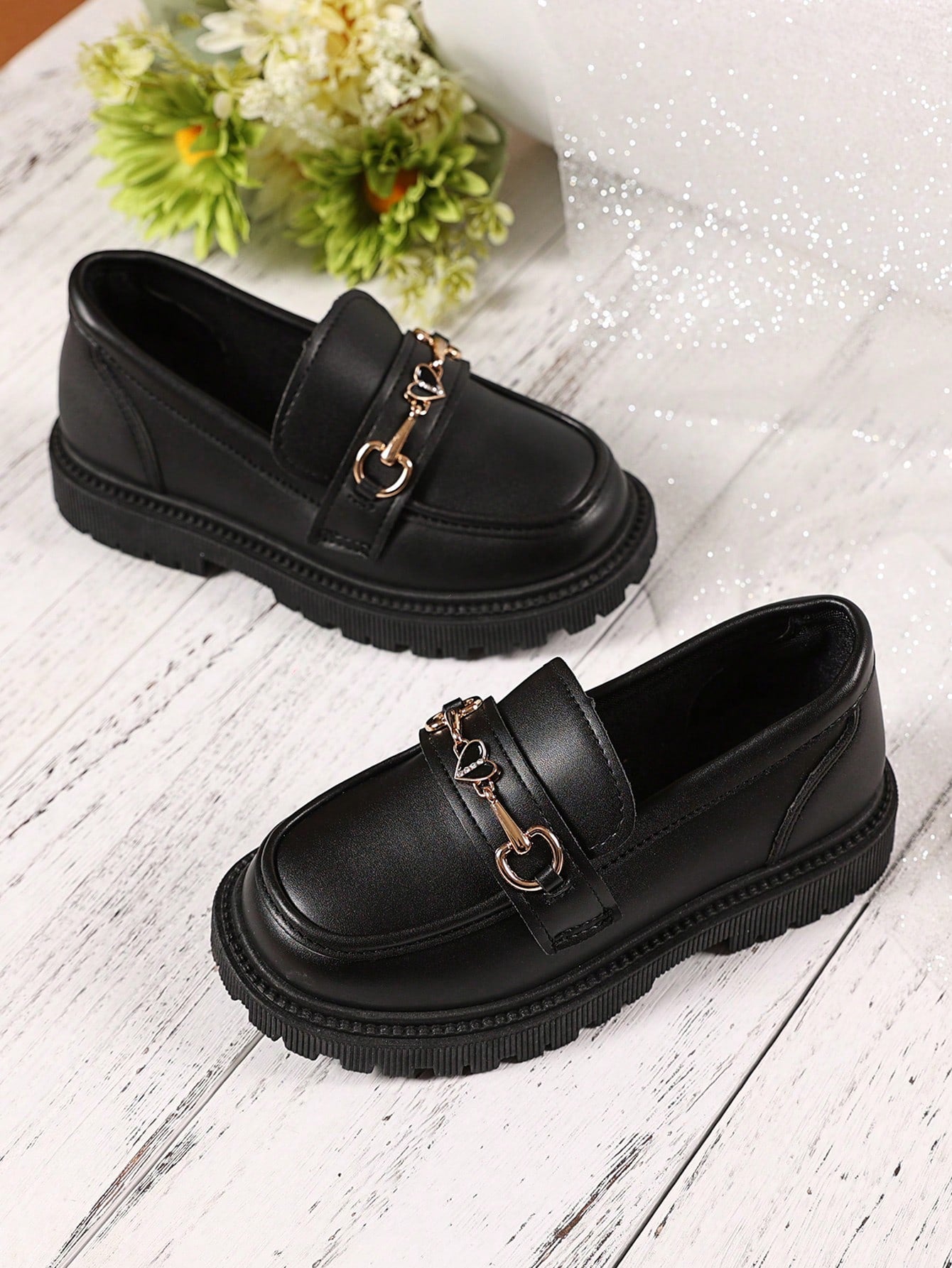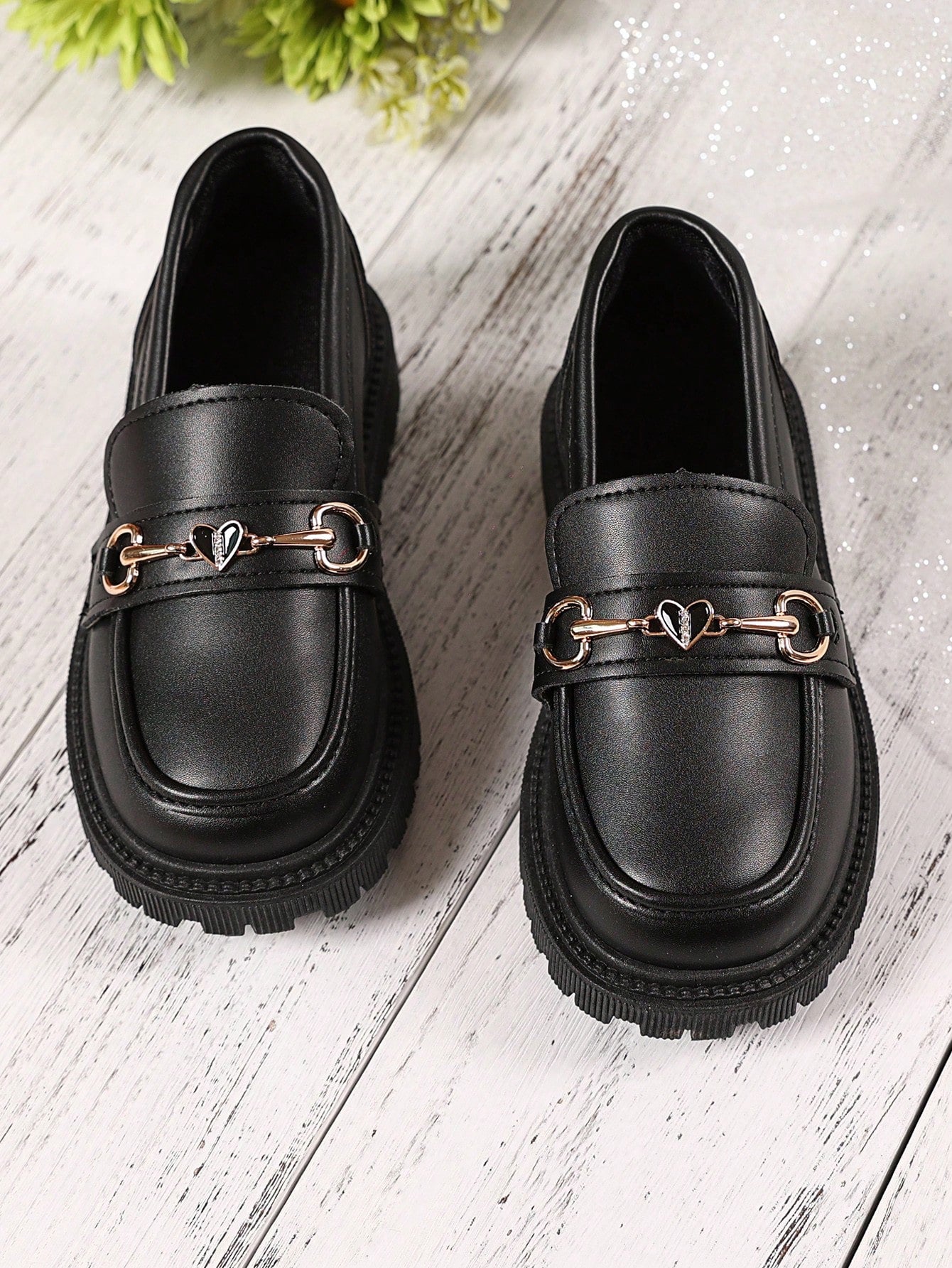 زوج واحد من الأحذية الجلدية السوداء ذات المقاسات الكبيرة للبنات الصغيرات
