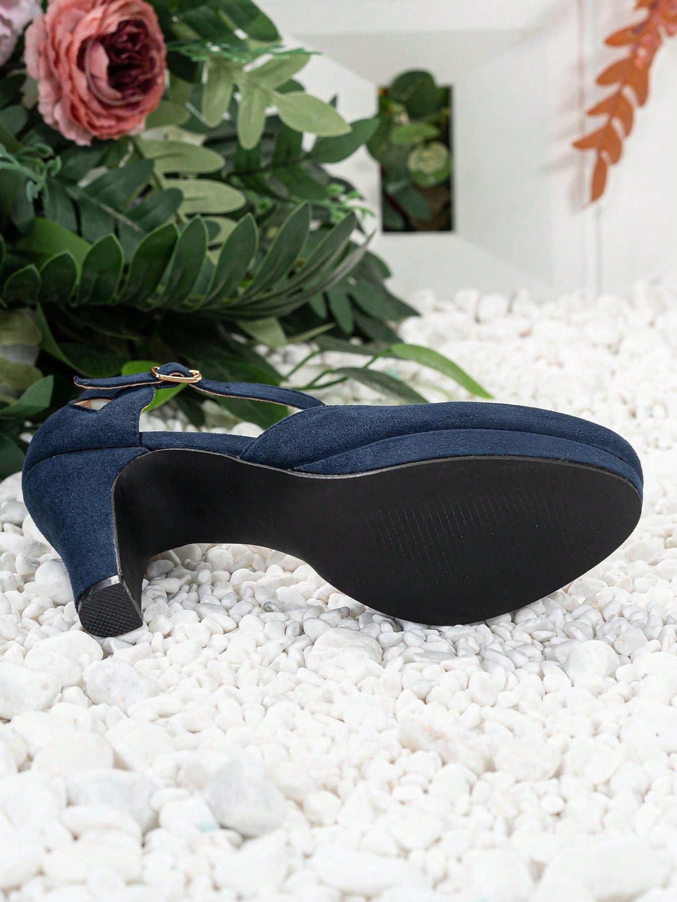 زوج واحد من الأحذية ذات الكعب العريض بإبزيم - لون موحد، مناسبة للتنقلات اليومية