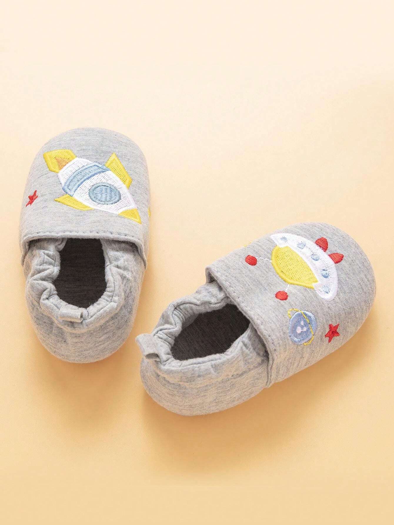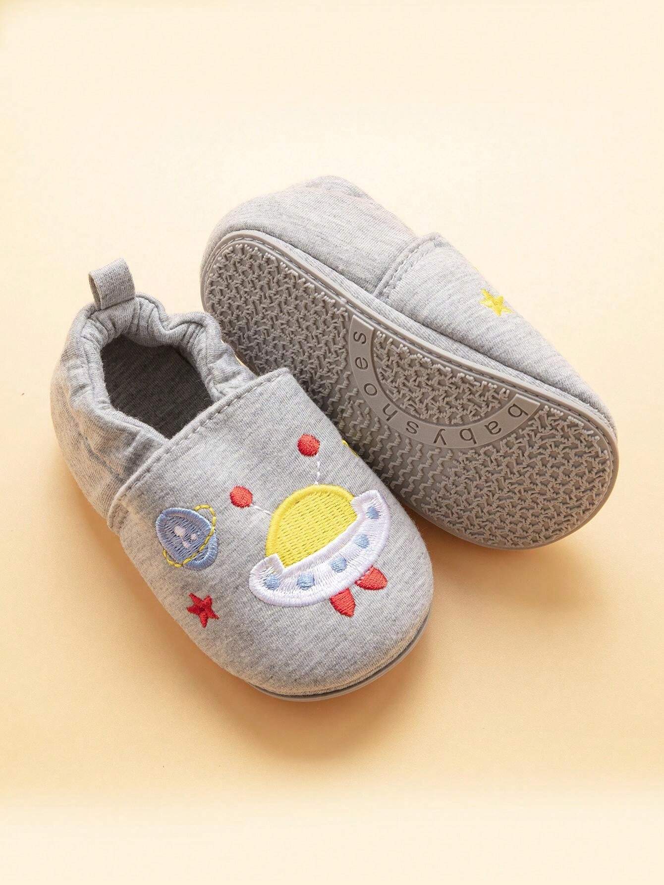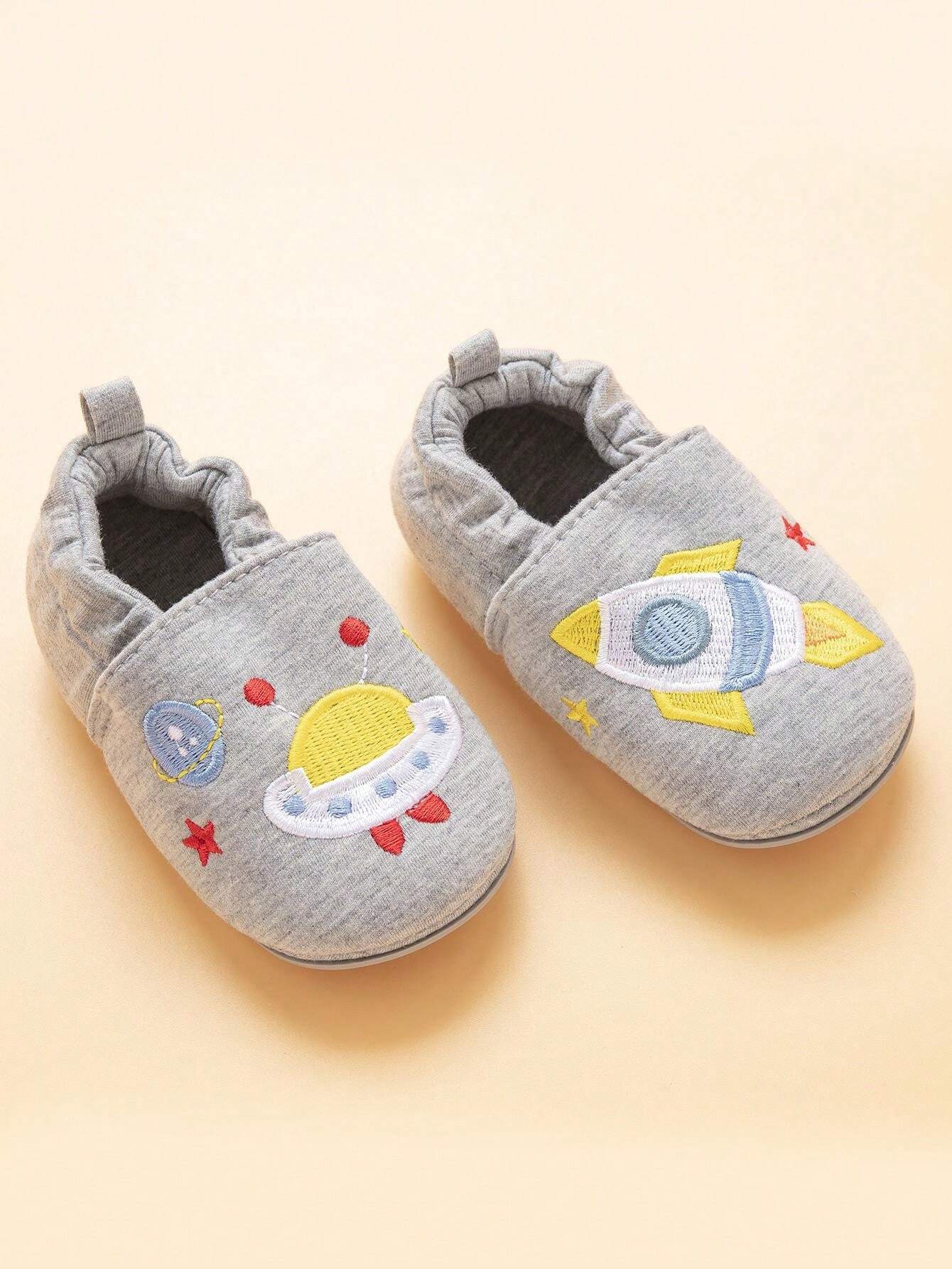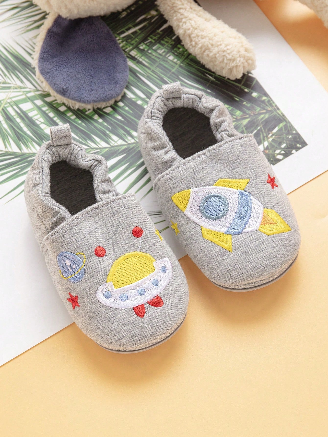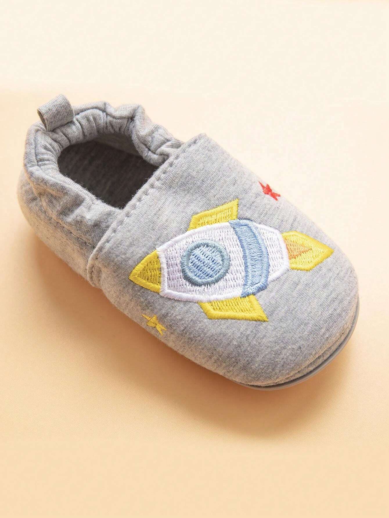 kids 1 Pair Cartoon Rocket Embroidered Anti-Slip Soft Sole Indoor Floor Shoes For 1 Year Old Toddler
