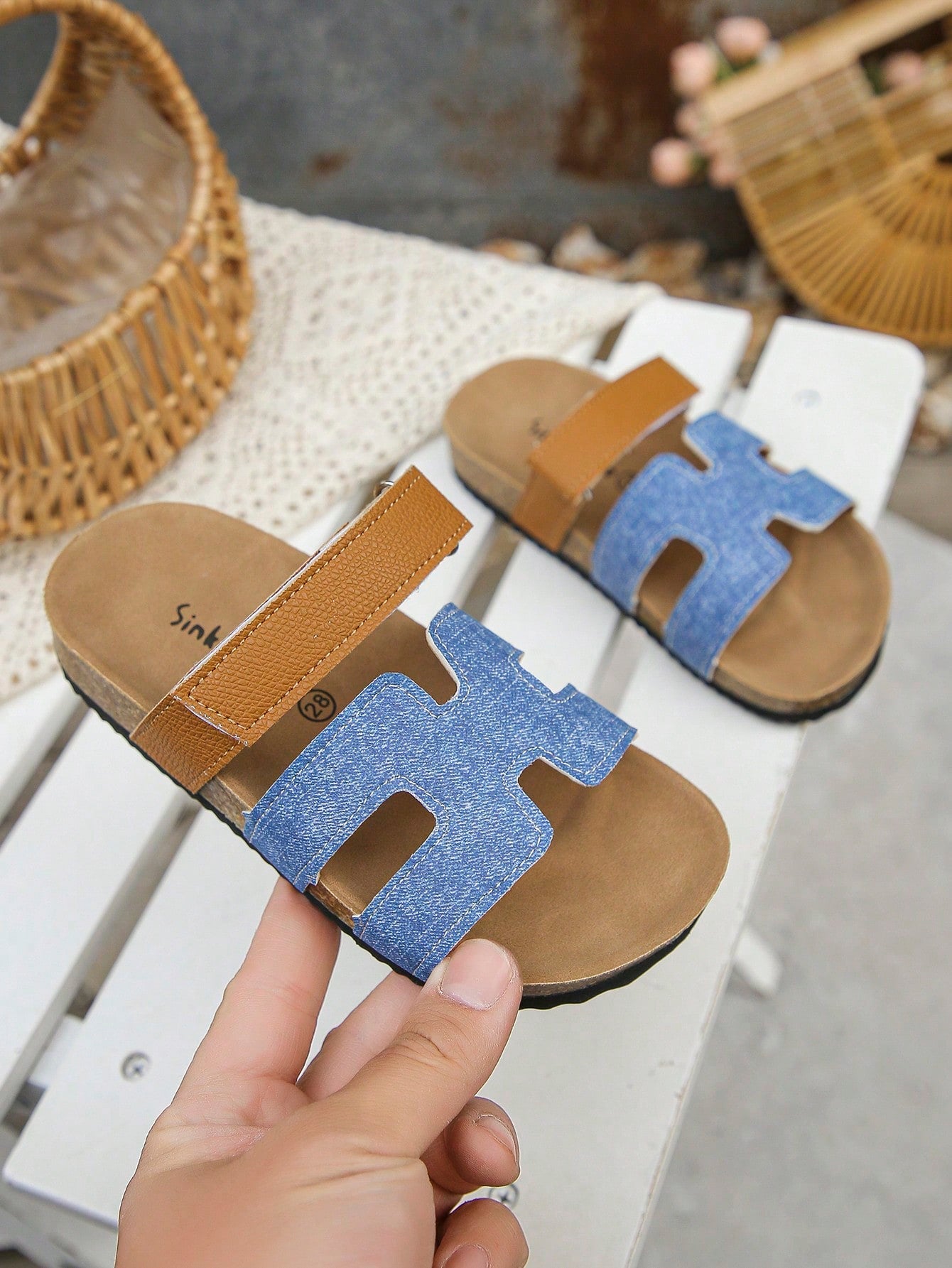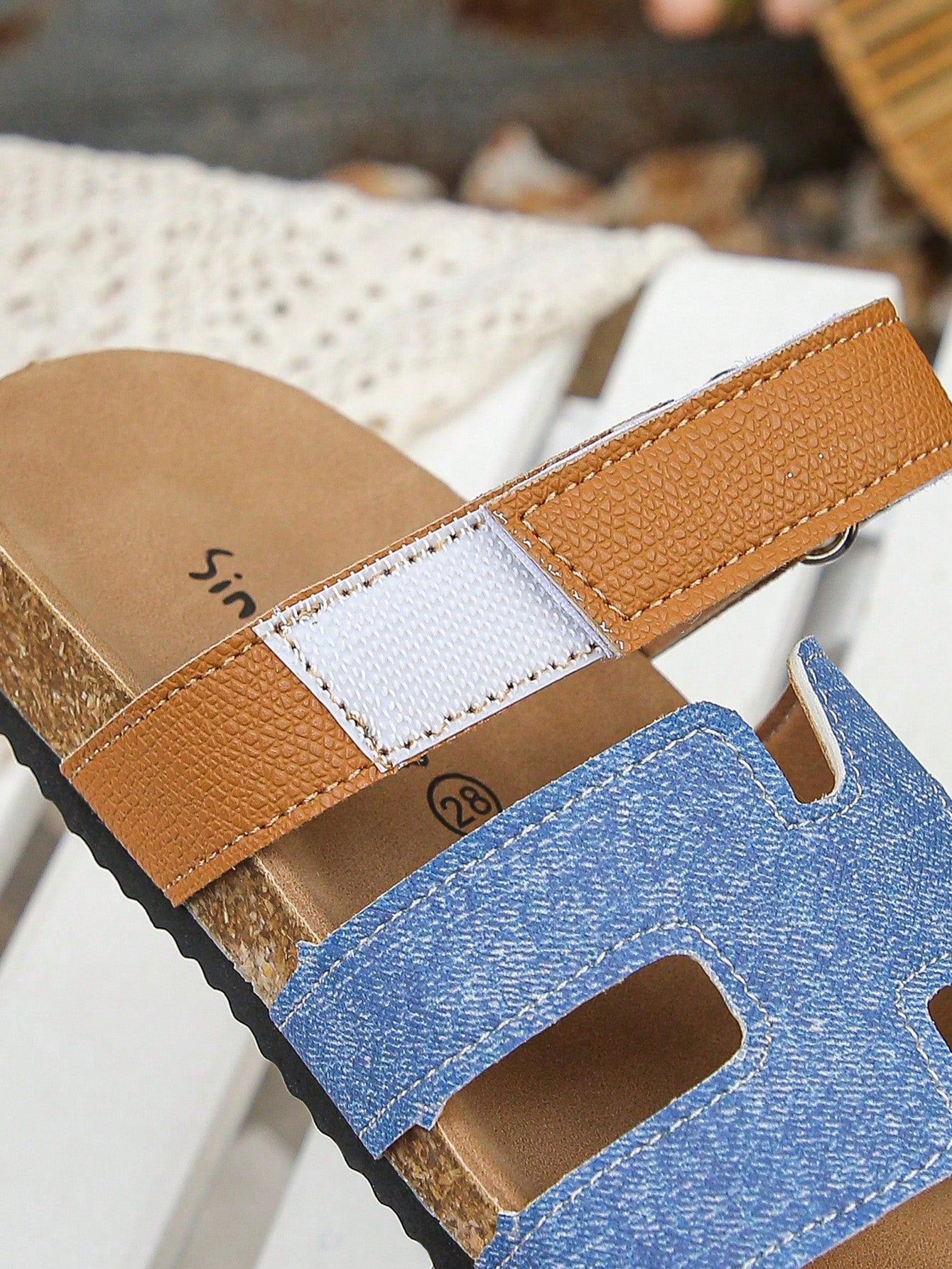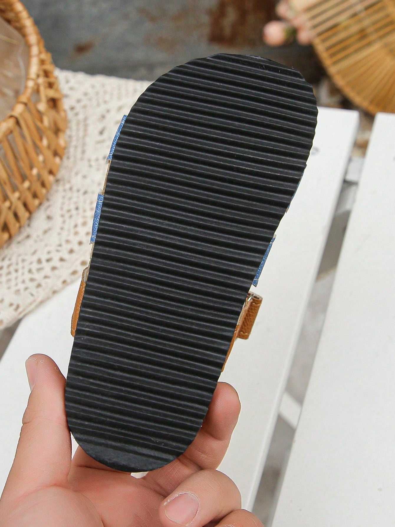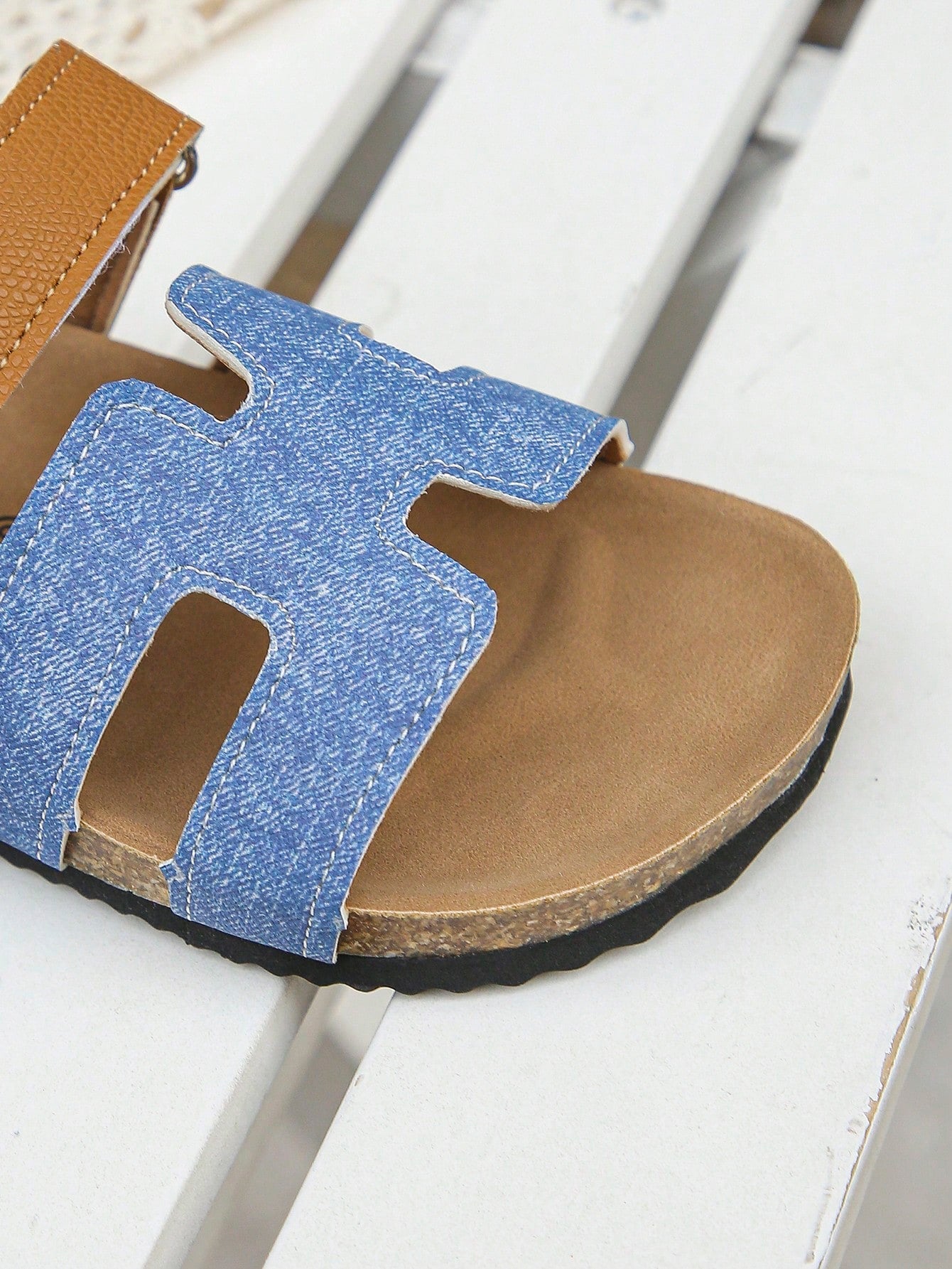 kids 1 Pair Children Denim Print PU Material Adjustable Strap Slides