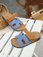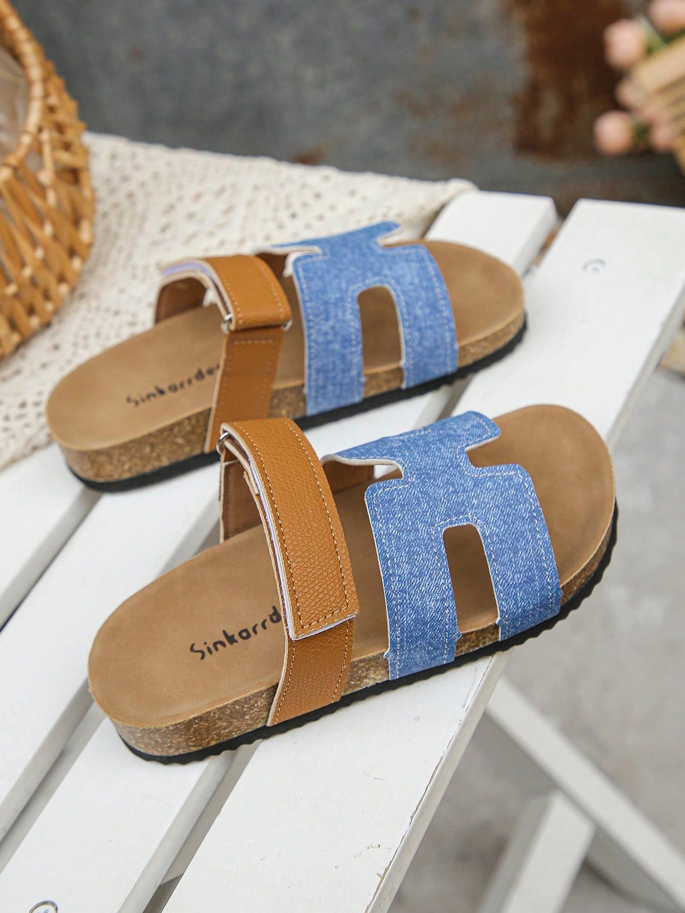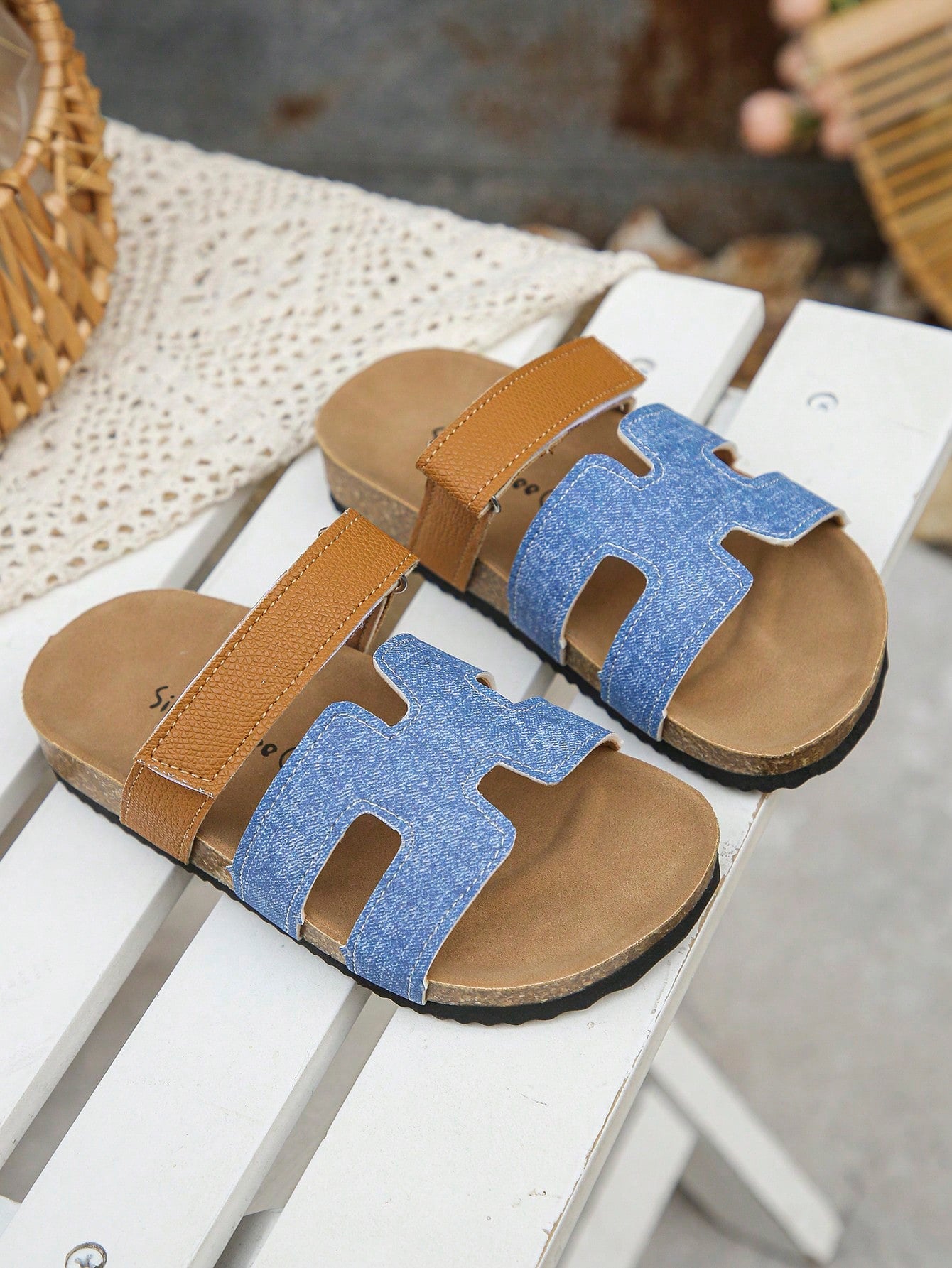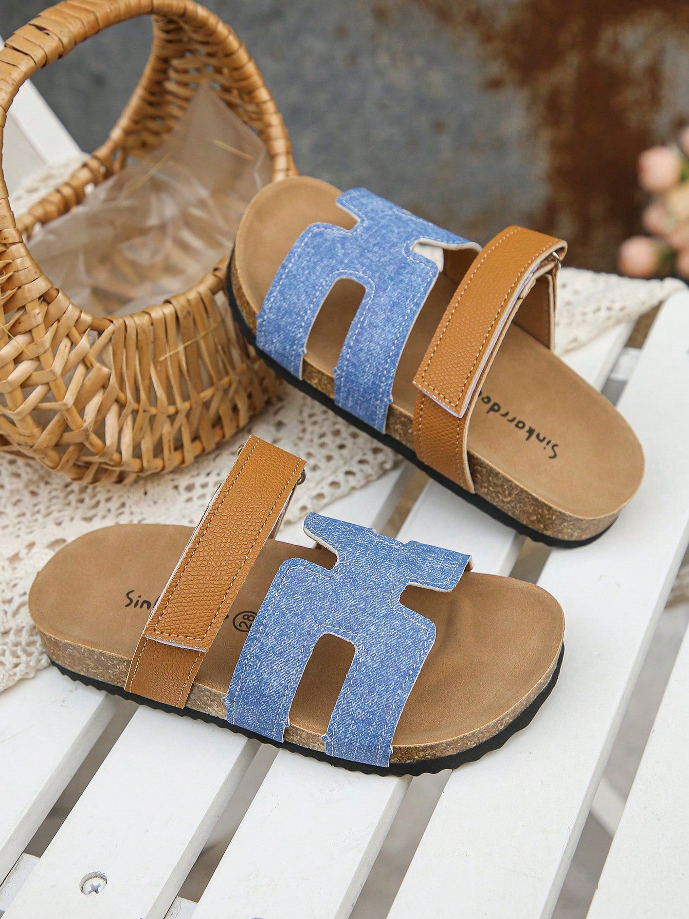 kids 1 Pair Children Denim Print PU Material Adjustable Strap Slides