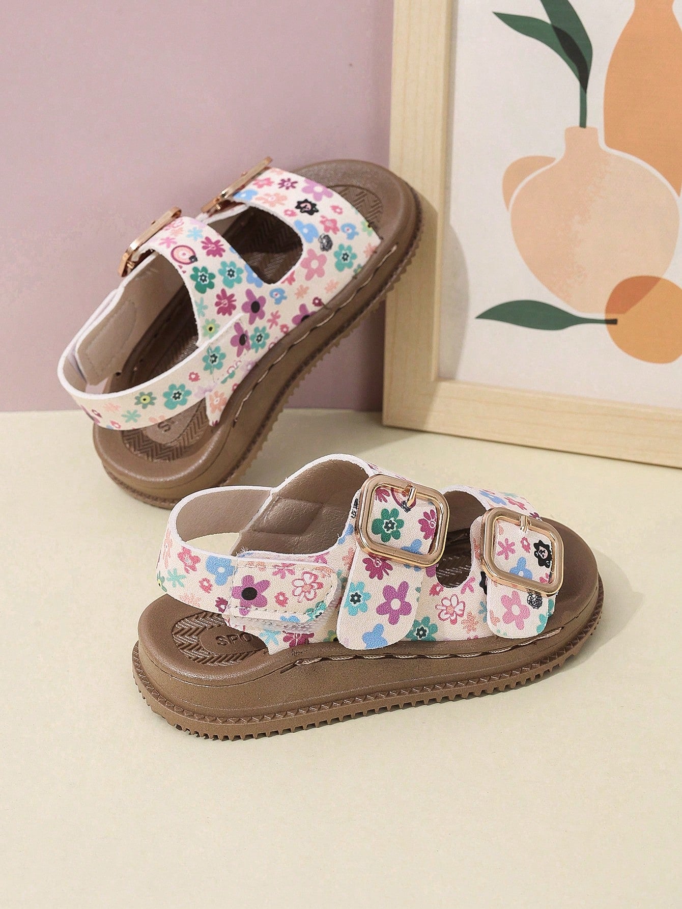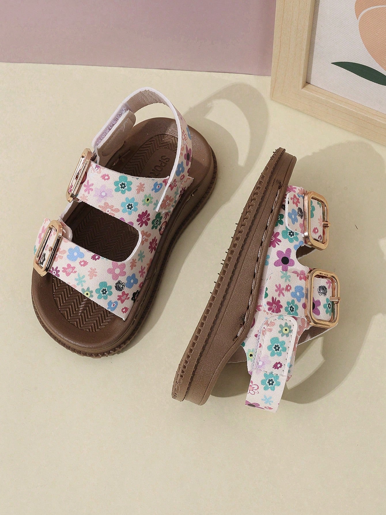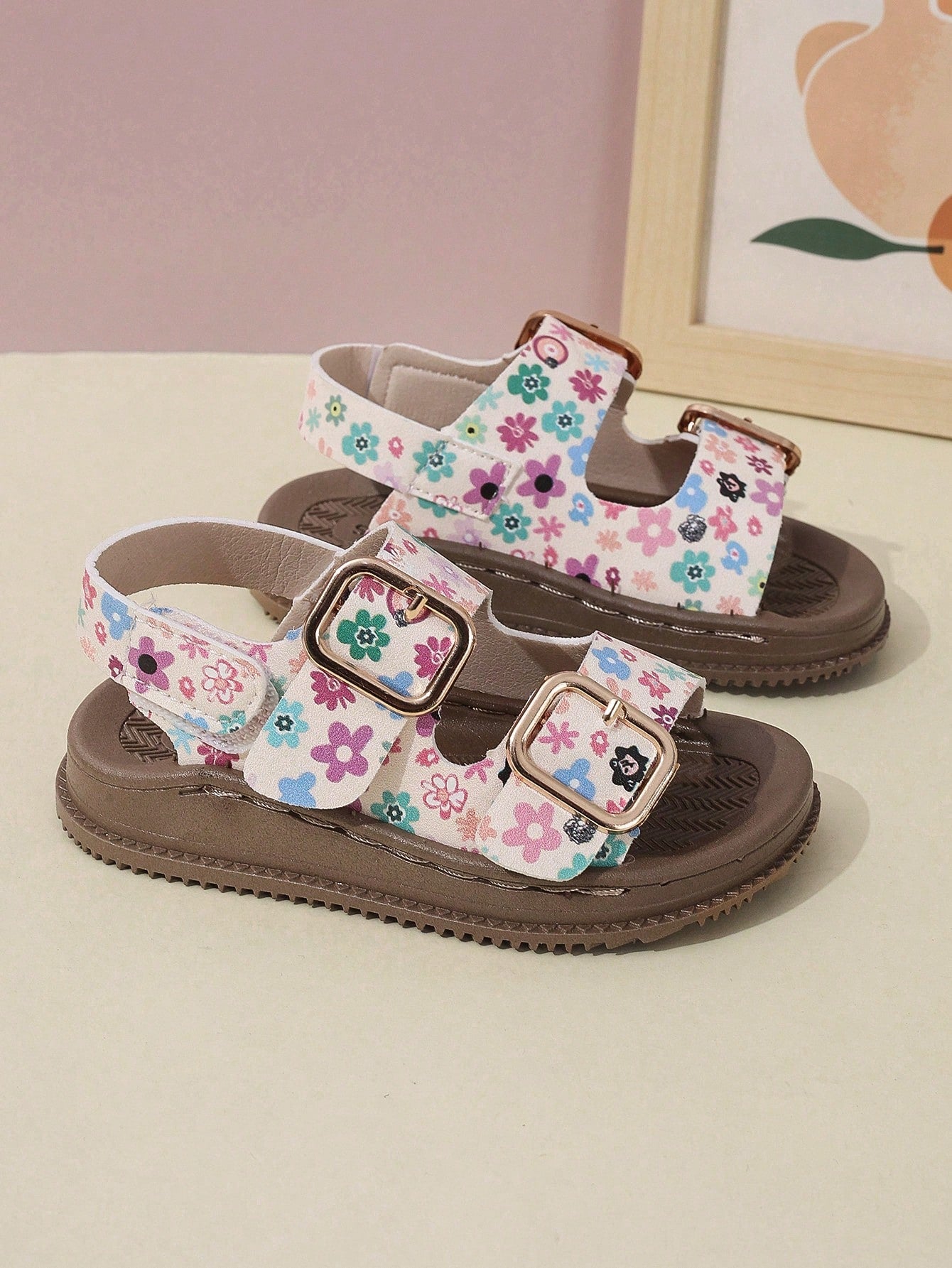 زوج واحد من الصنادل المسطحة للأطفال المزينة بالزهور