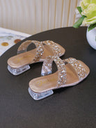 زوج واحد من الصنادل الصيفية الأنيقة للفتيات ذات الكعب السميك والمزينة بأحجار الراين اللامعة، أنيقة ومتعددة الاستخدامات