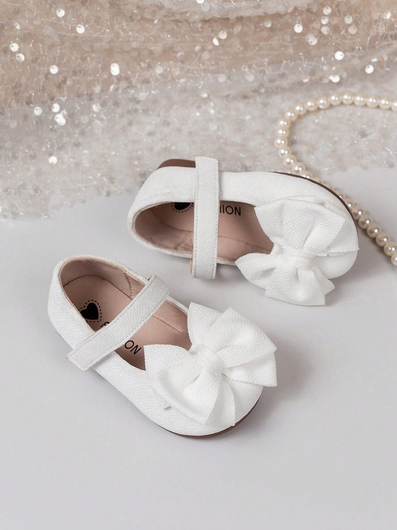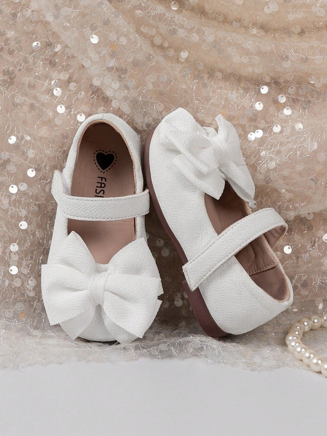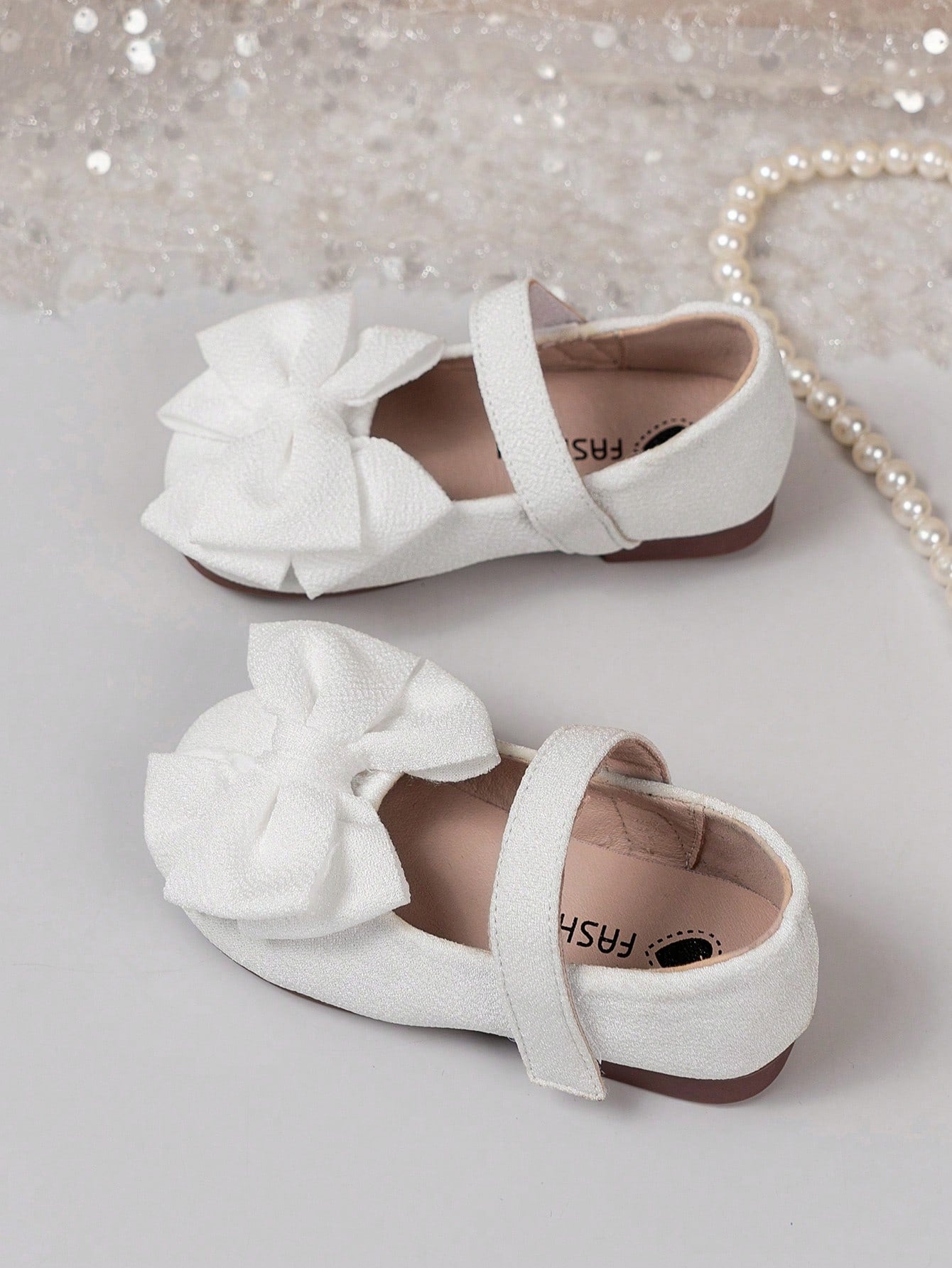 زوج واحد من الأحذية المسطحة للبنات - أحذية أطفال بيضاء كاجوال بتصميم فيلكرو
