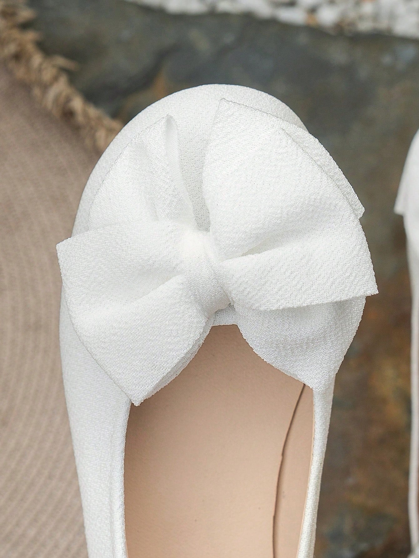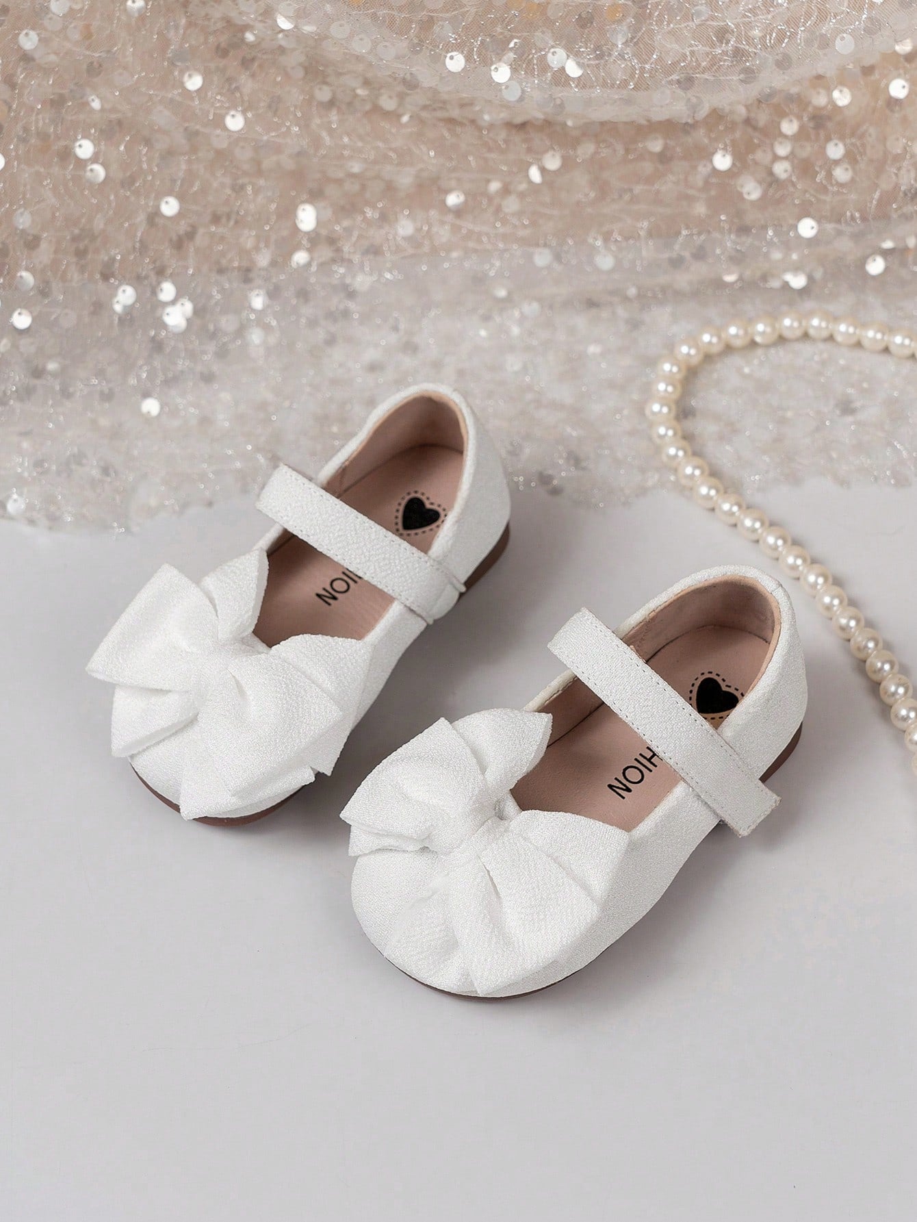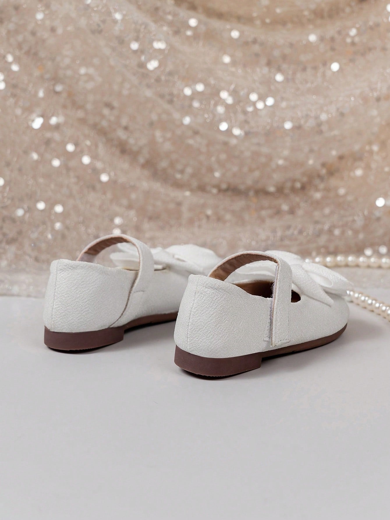 زوج واحد من الأحذية المسطحة للبنات - أحذية أطفال بيضاء كاجوال بتصميم فيلكرو