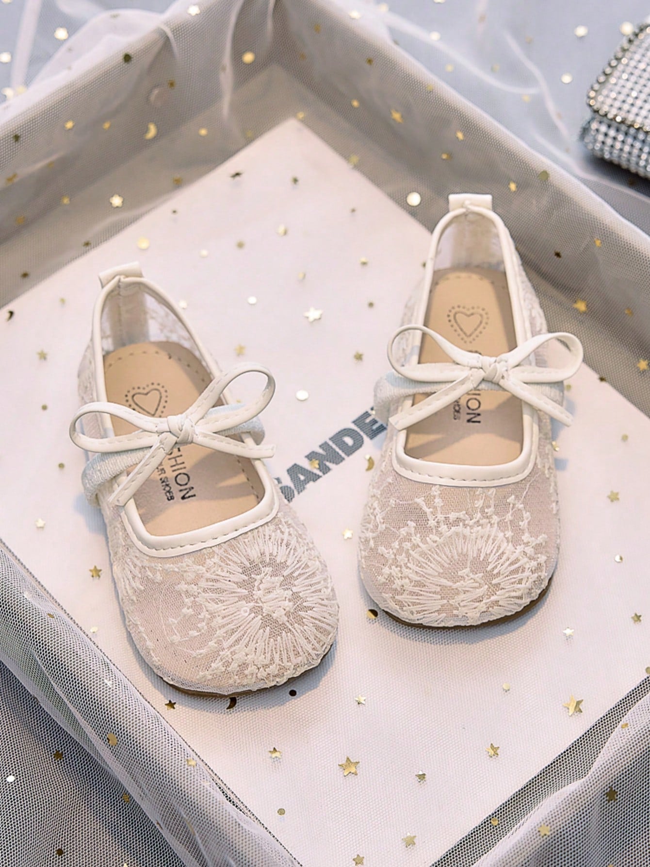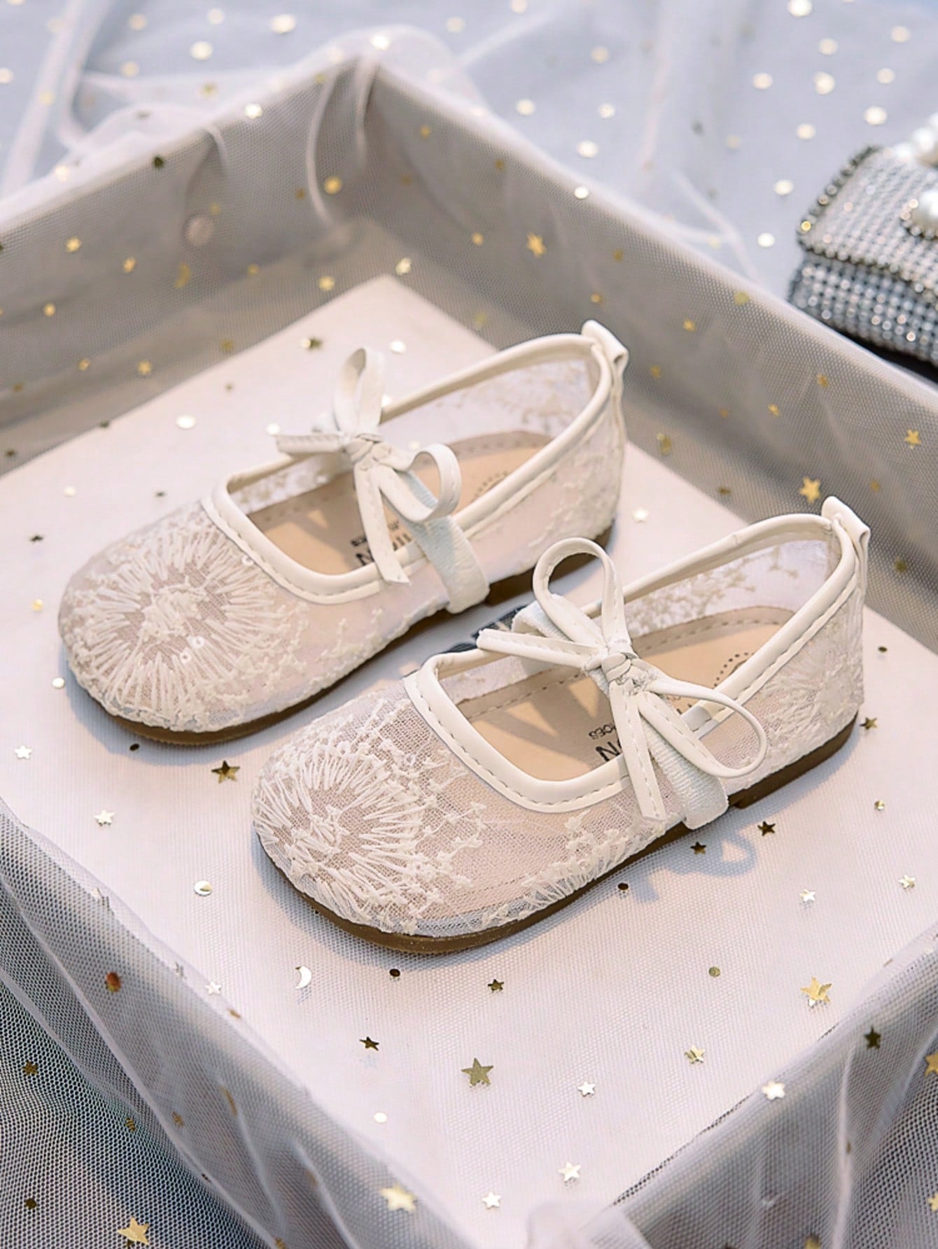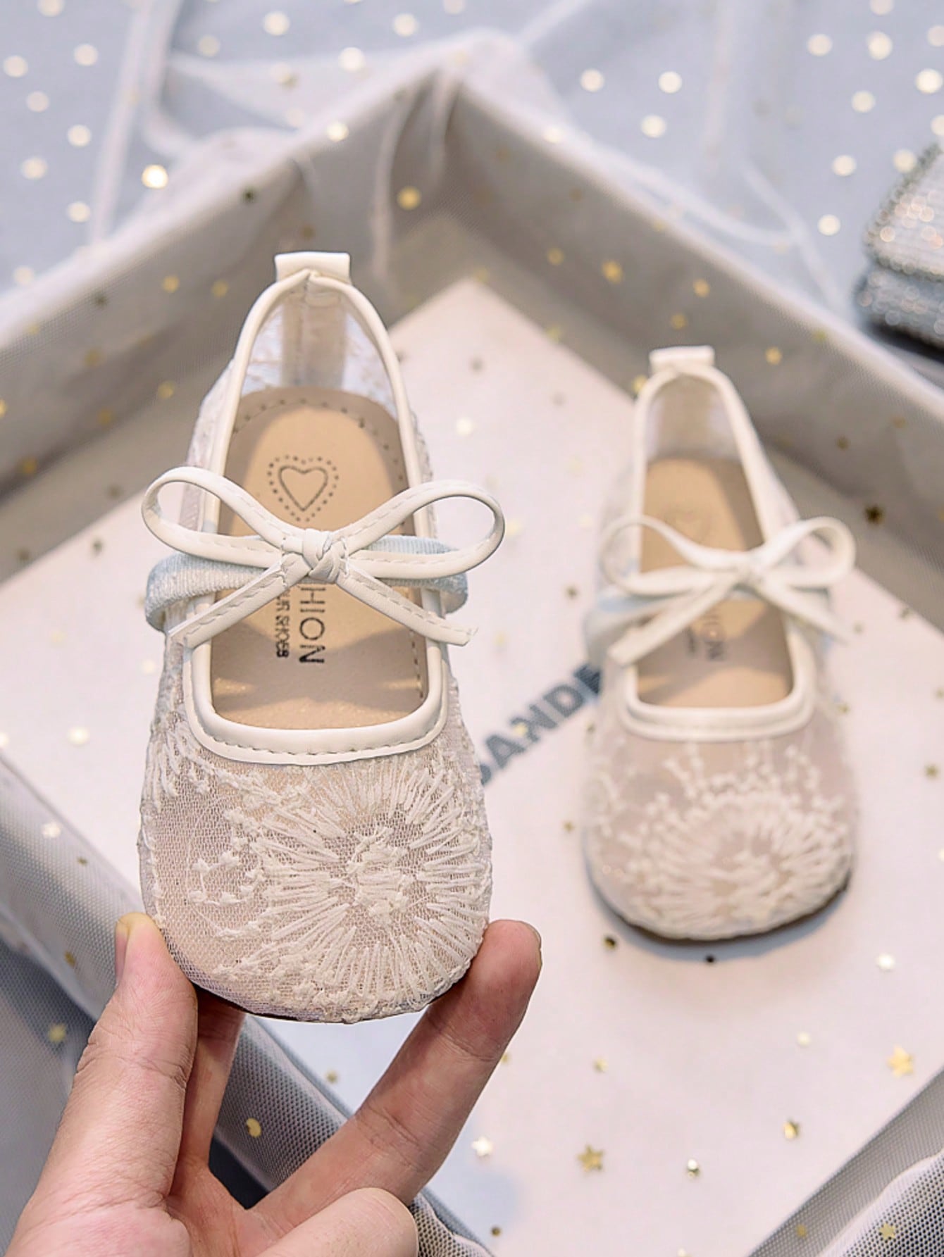 زوج واحد من الأحذية المسطحة ذات النعل الناعم والمُقصوصة من شبكة الألعاب النارية للفتيات