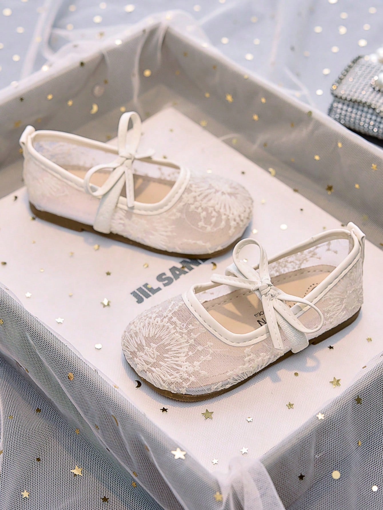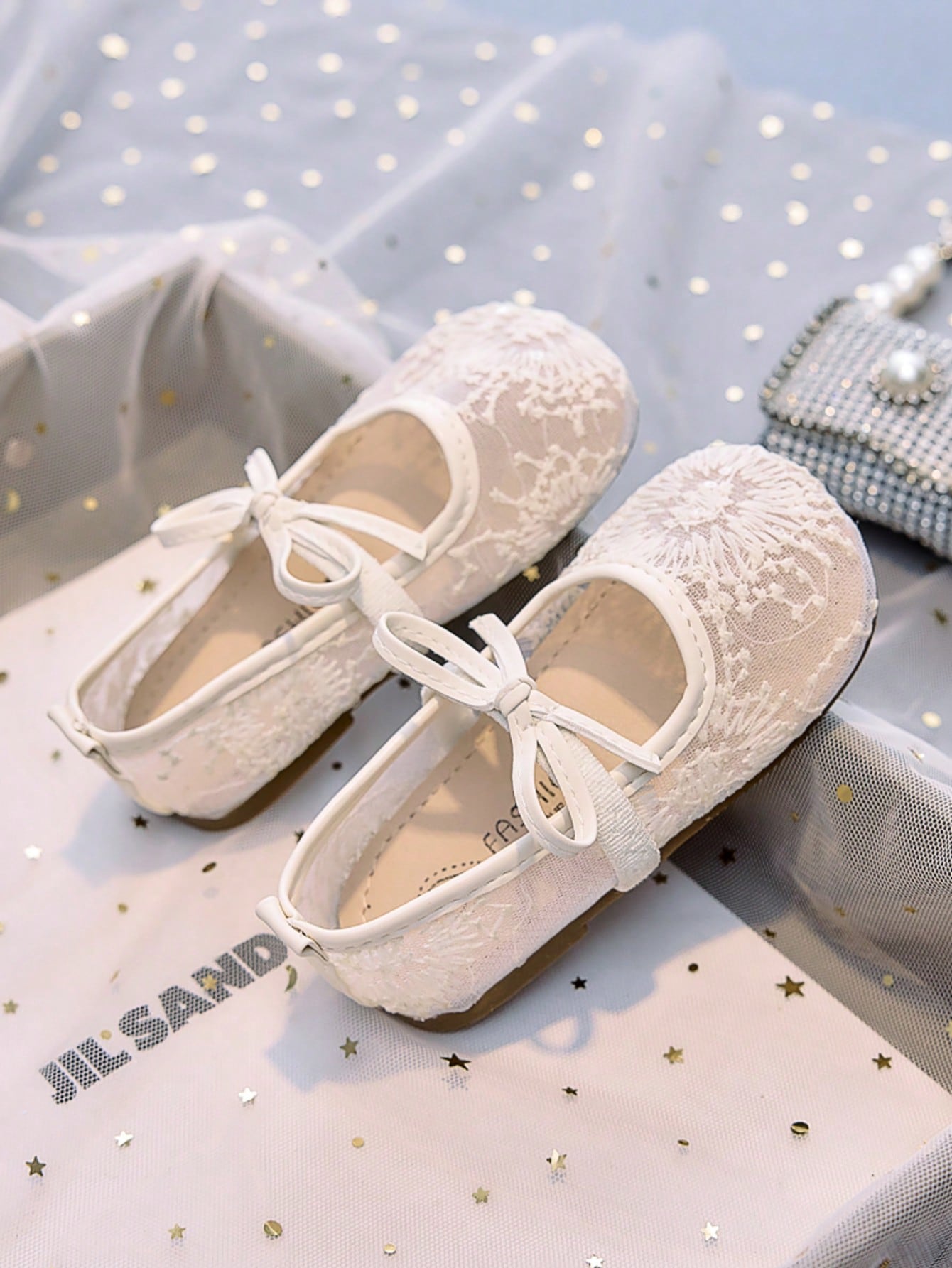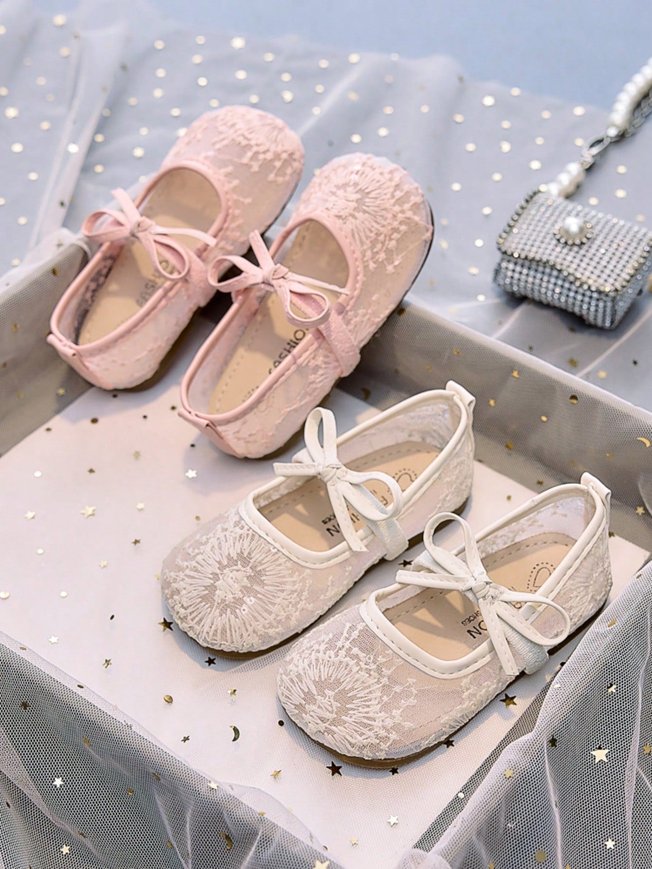 زوج واحد من الأحذية المسطحة ذات النعل الناعم والمُقصوصة من شبكة الألعاب النارية للفتيات