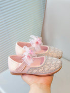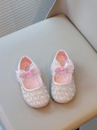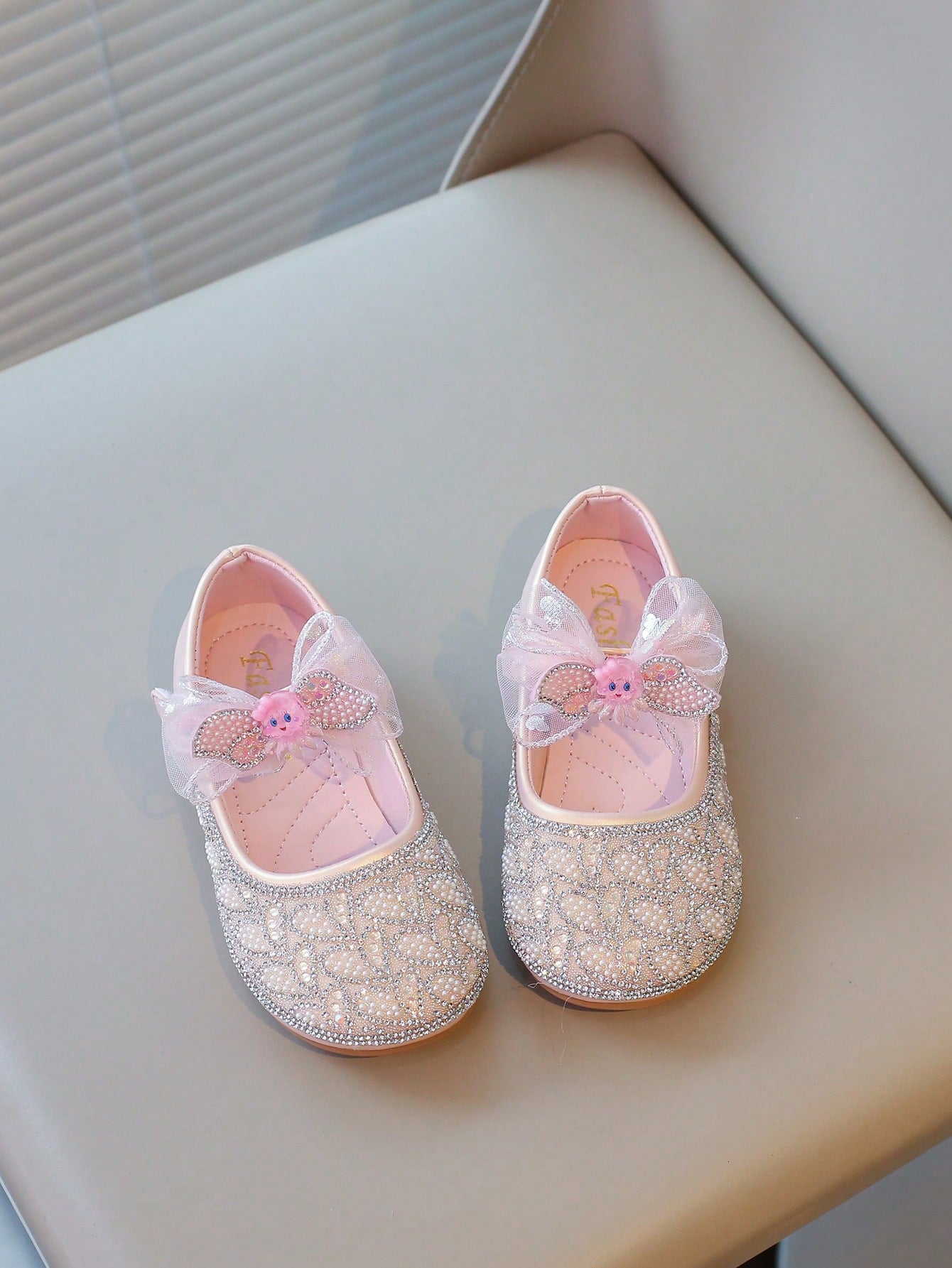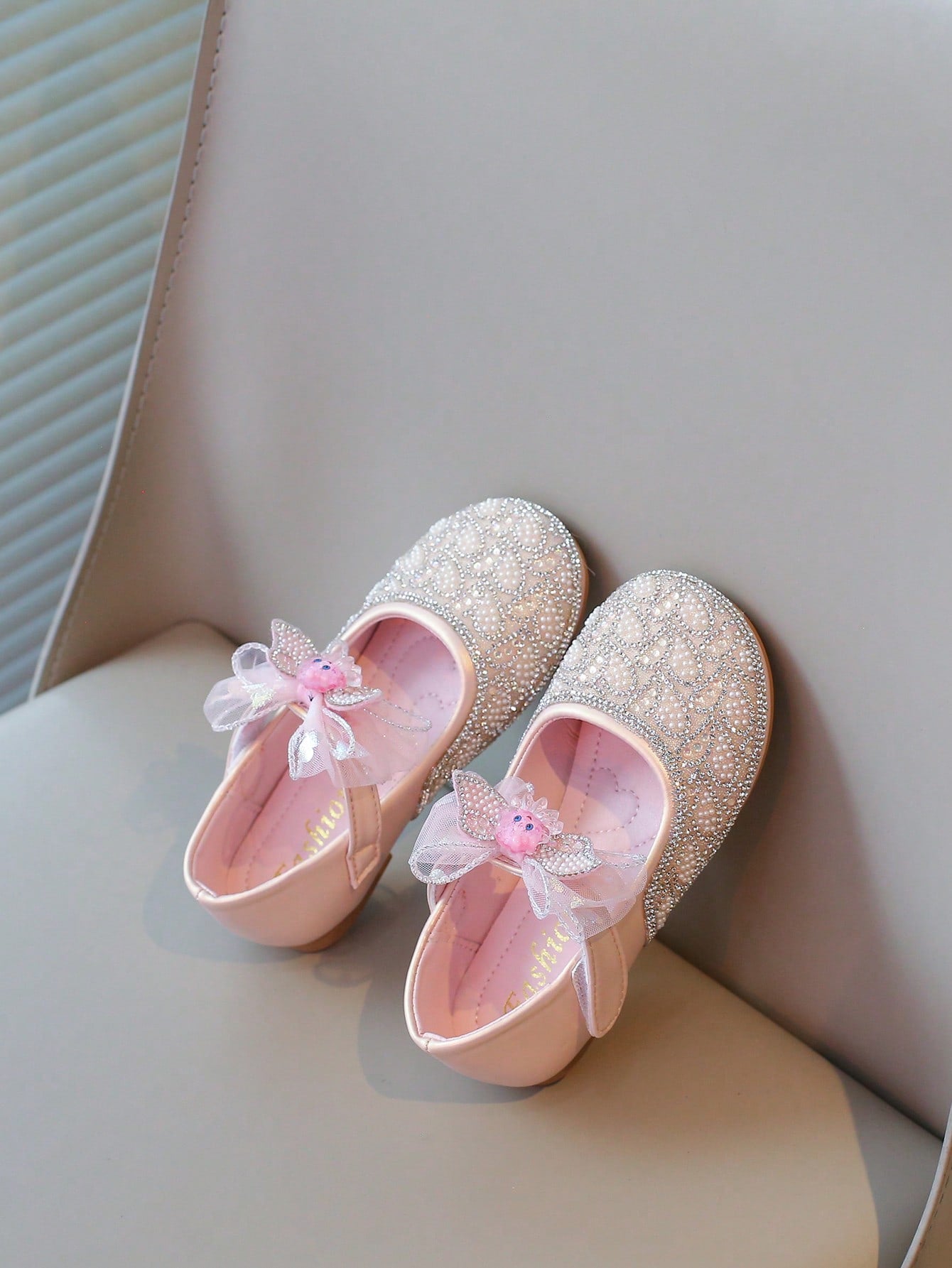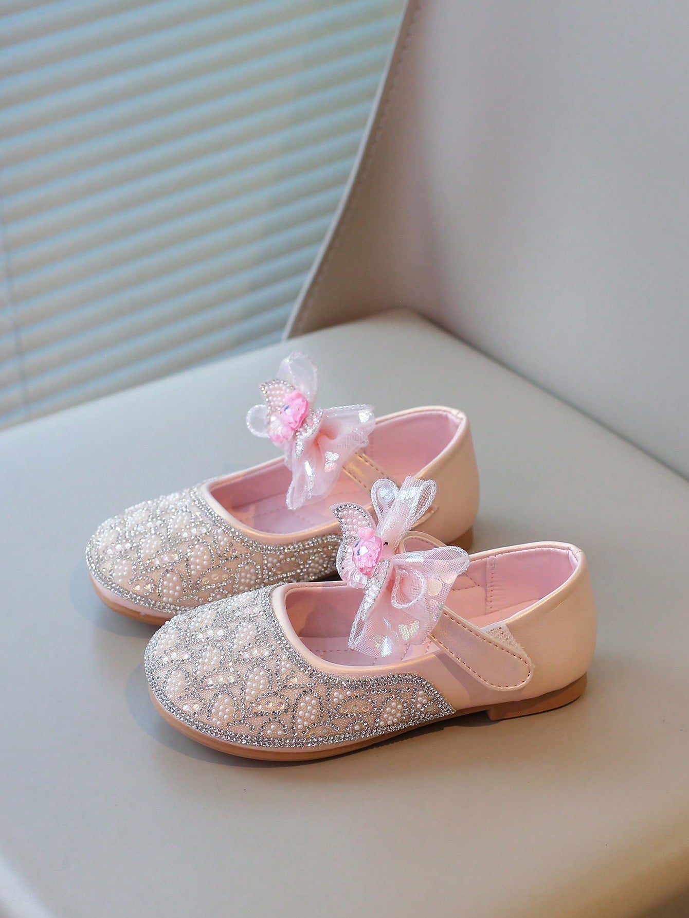 kids 1 Pair Girls Pearl Rhinestone Bowknot Flat Shoes