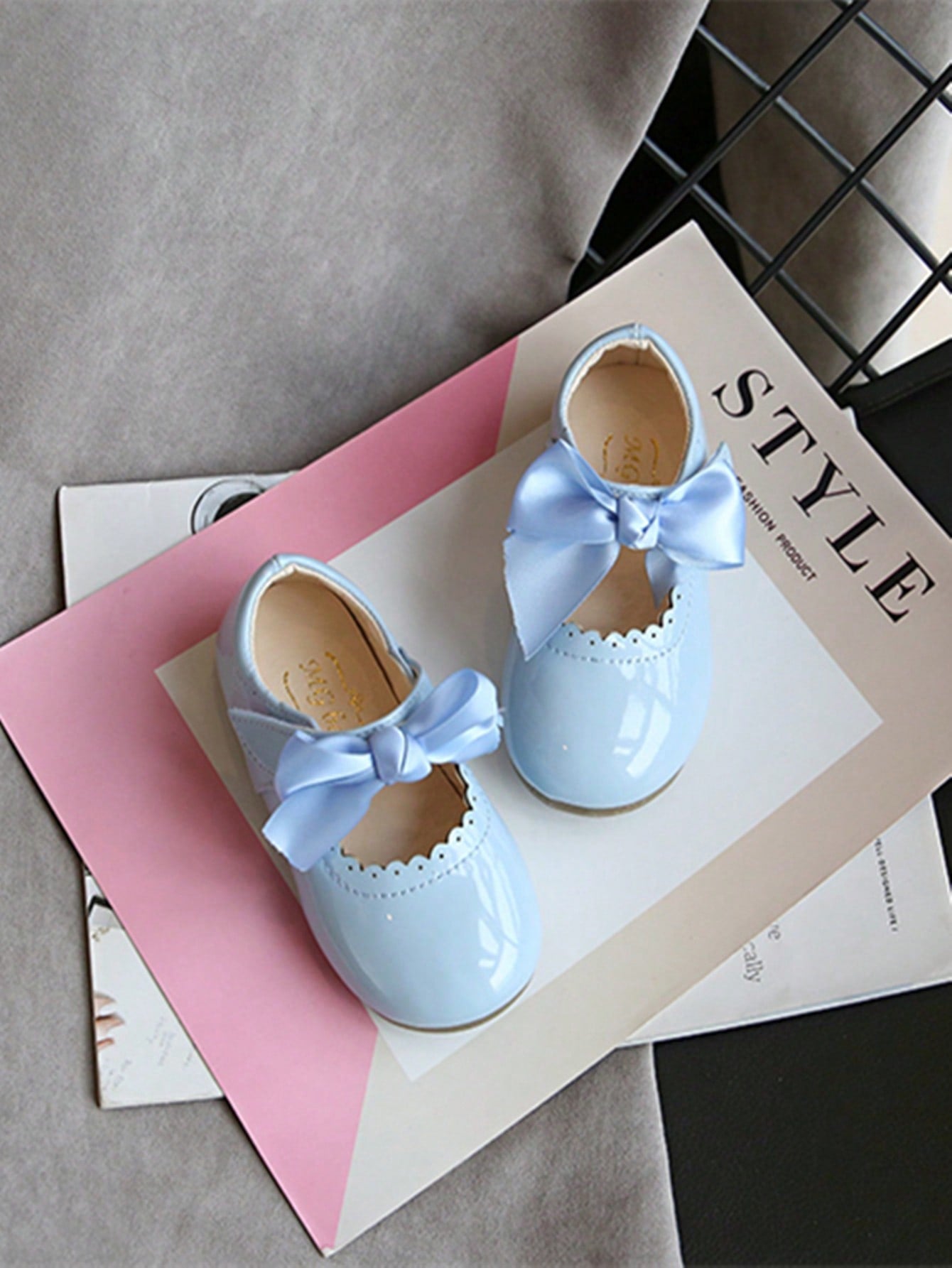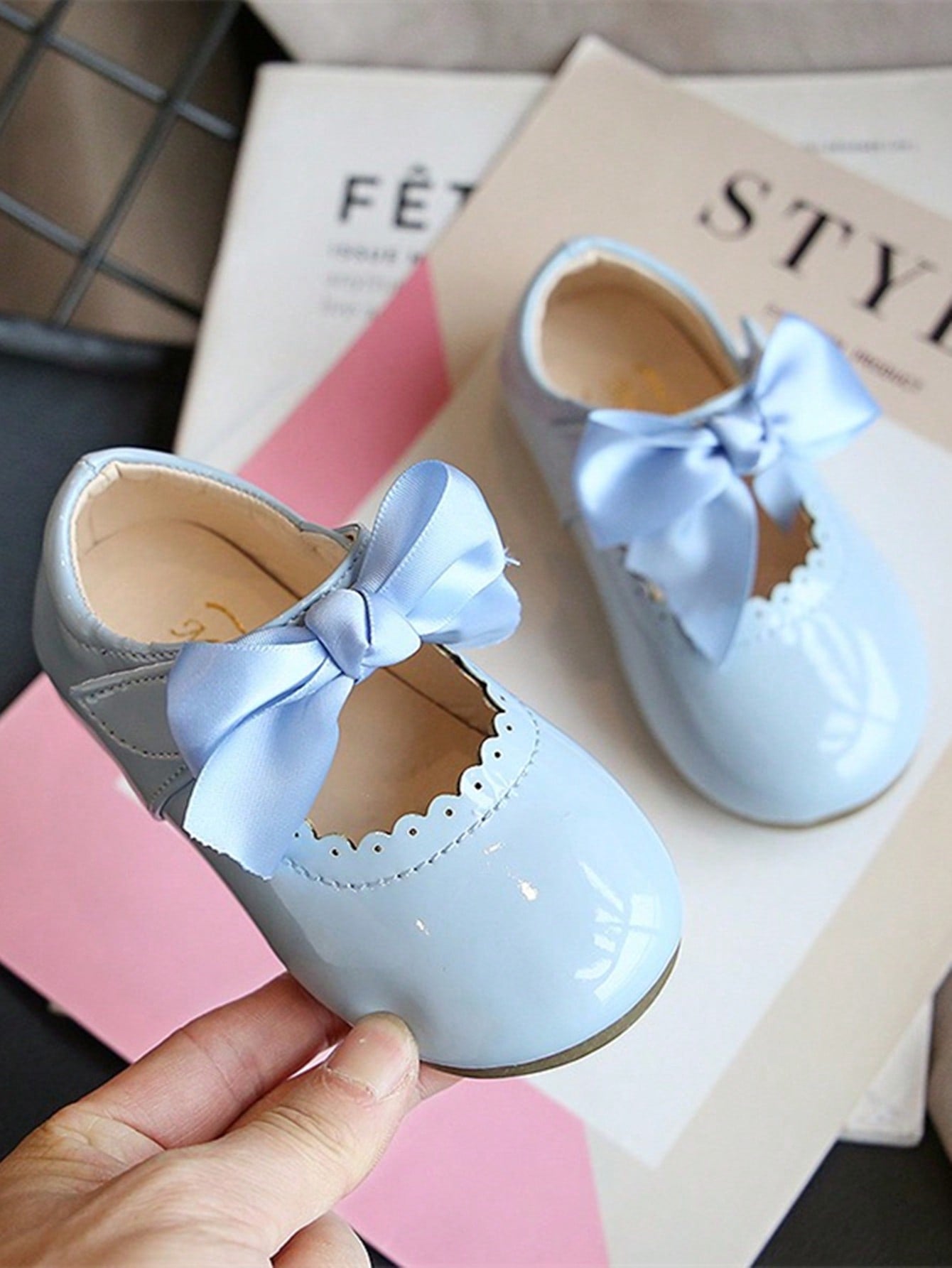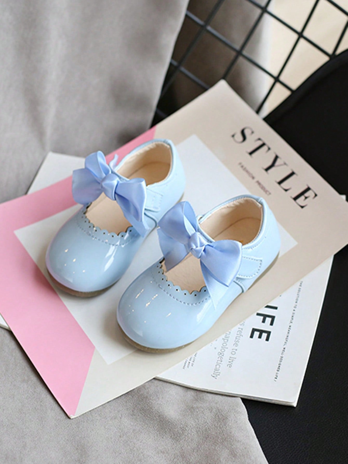 kids 1 Pair Girls Shiny Bow Patent Leather Flats