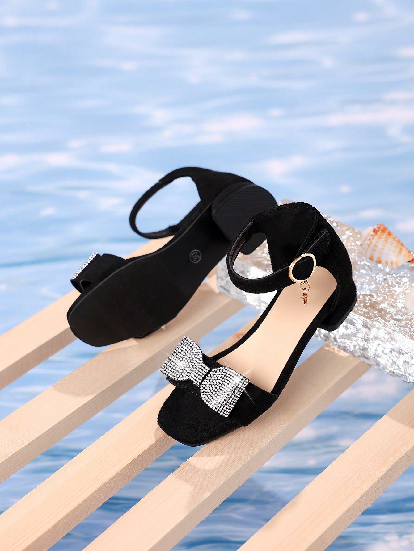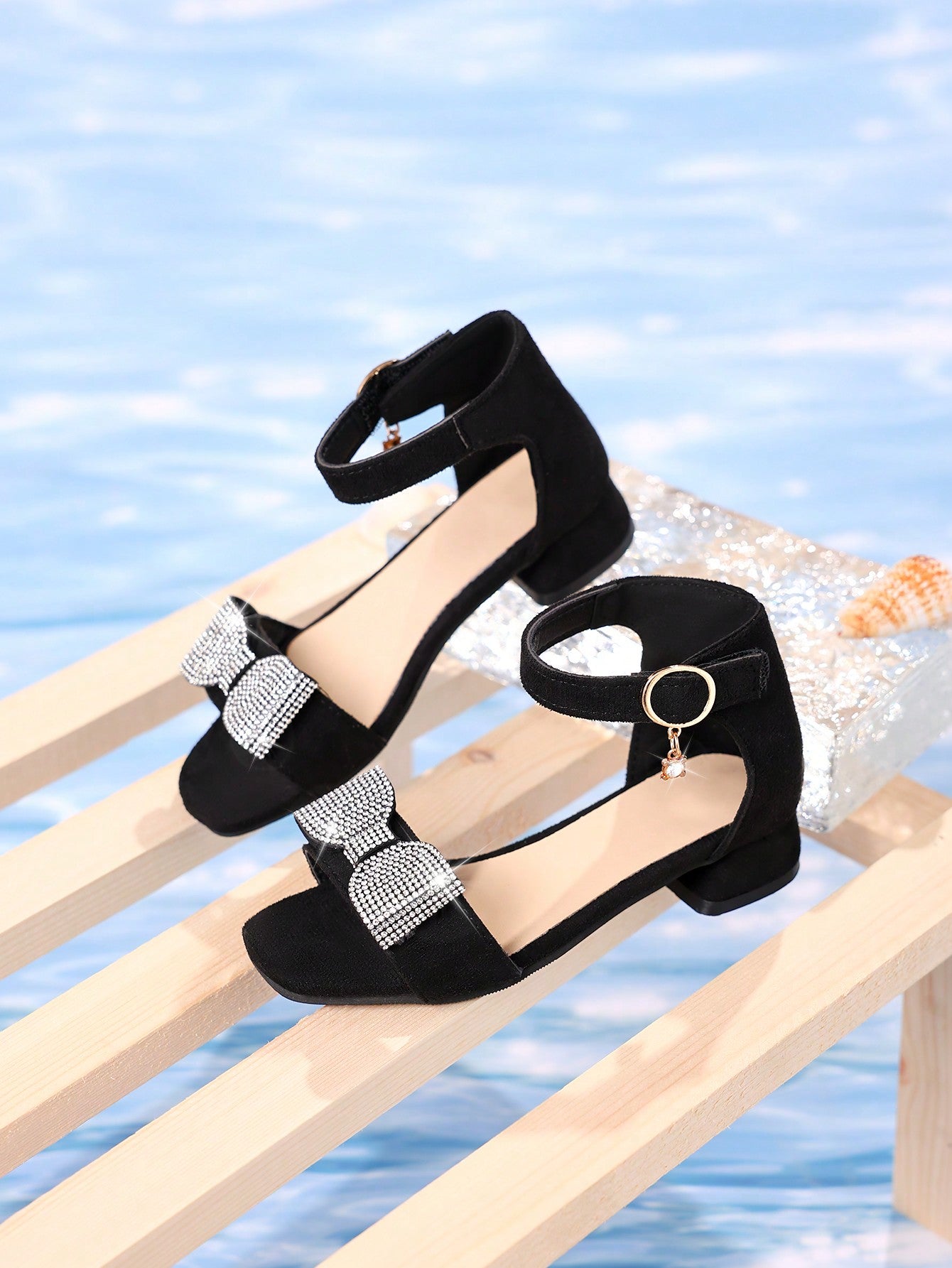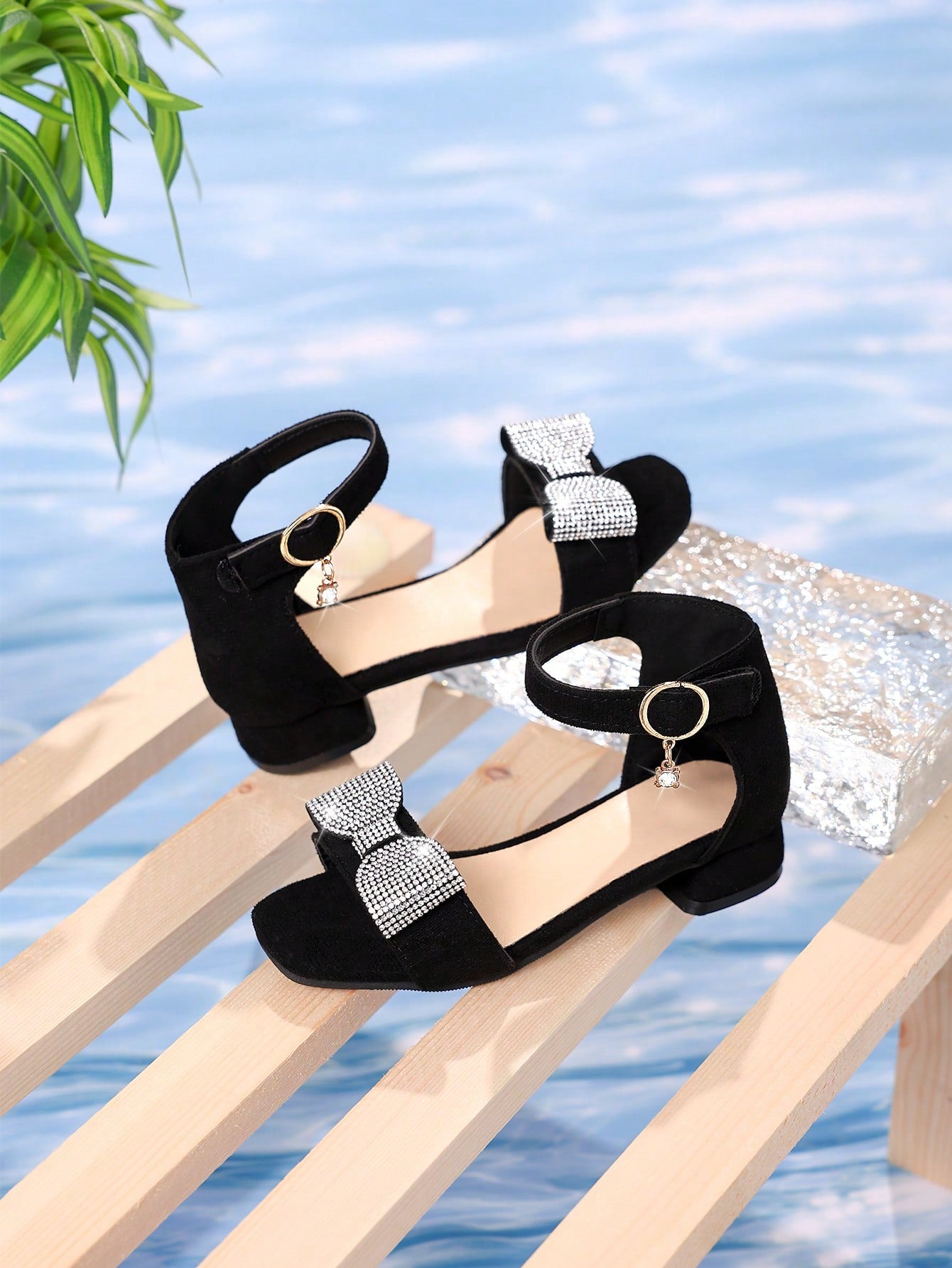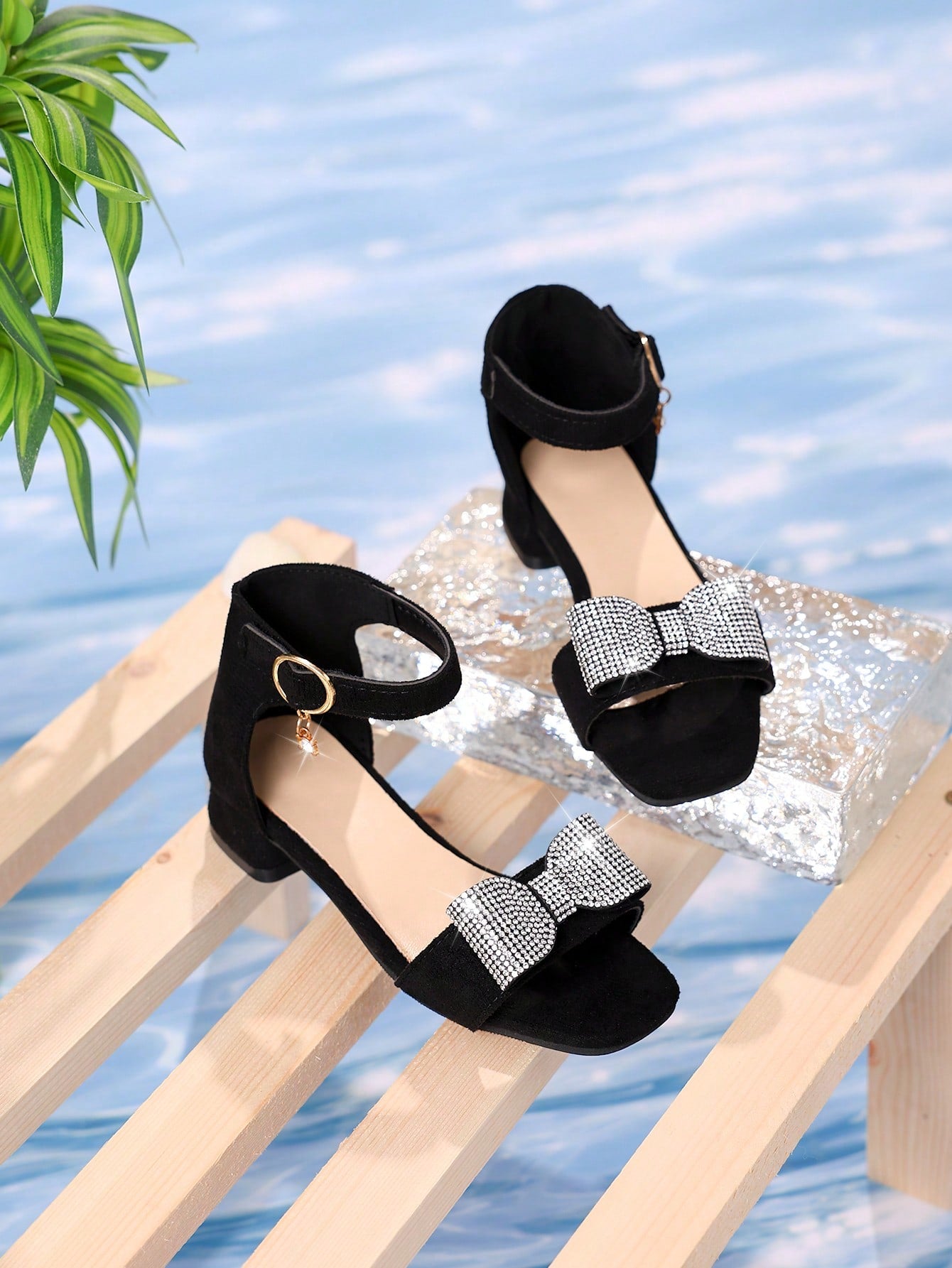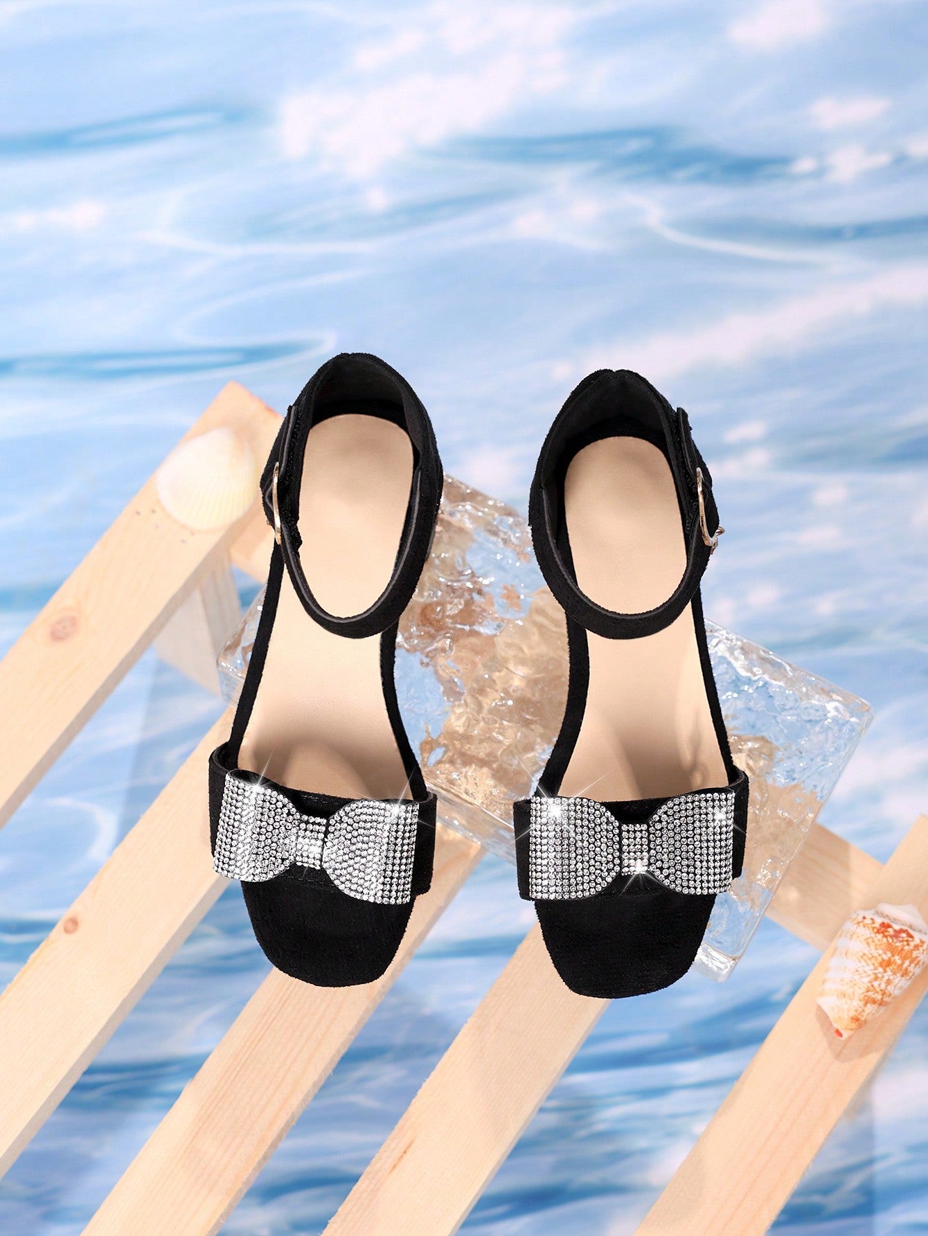 kids 1 Pair Girls' Summer Open Toe Sandals With Pearl & Rhinestones Bowknot Design